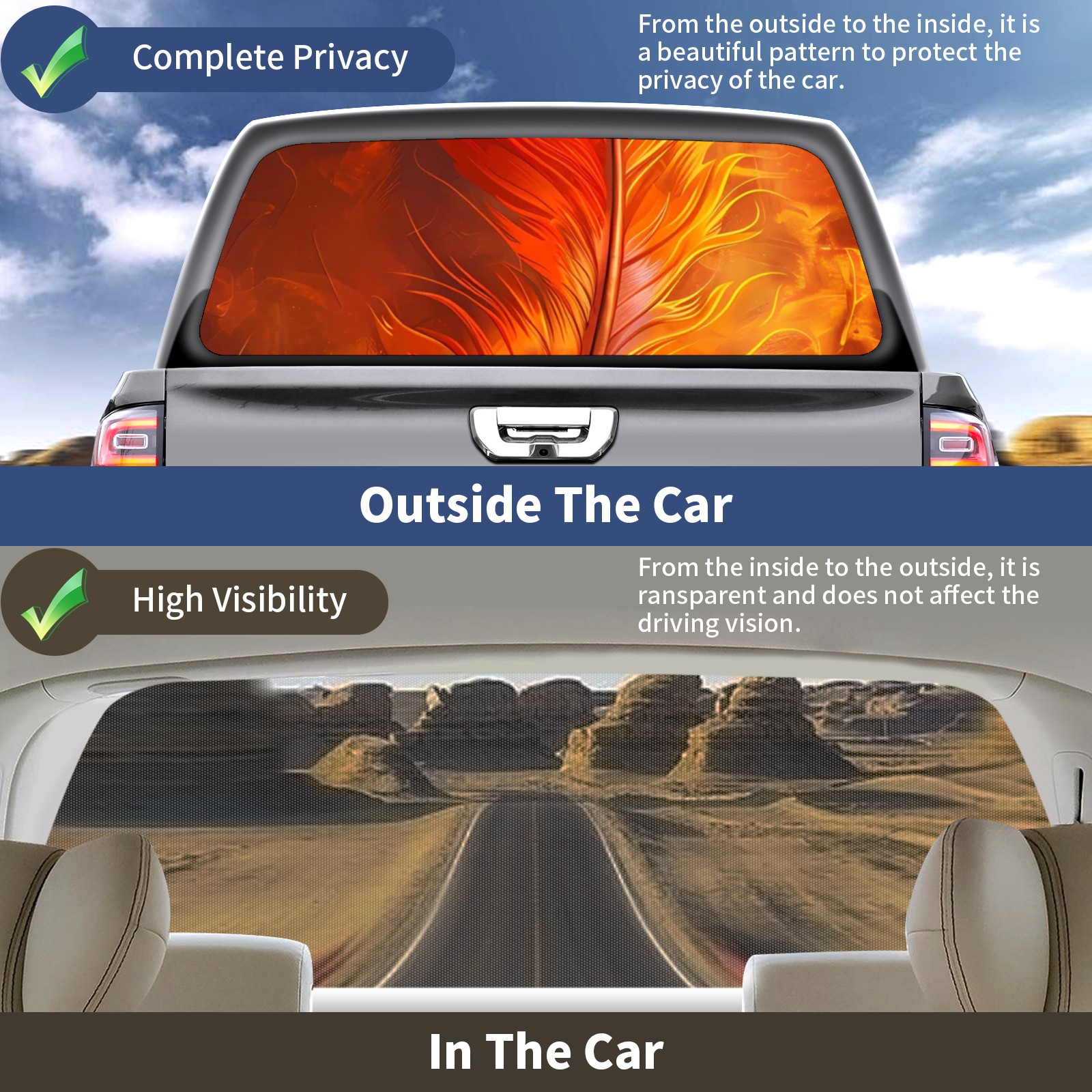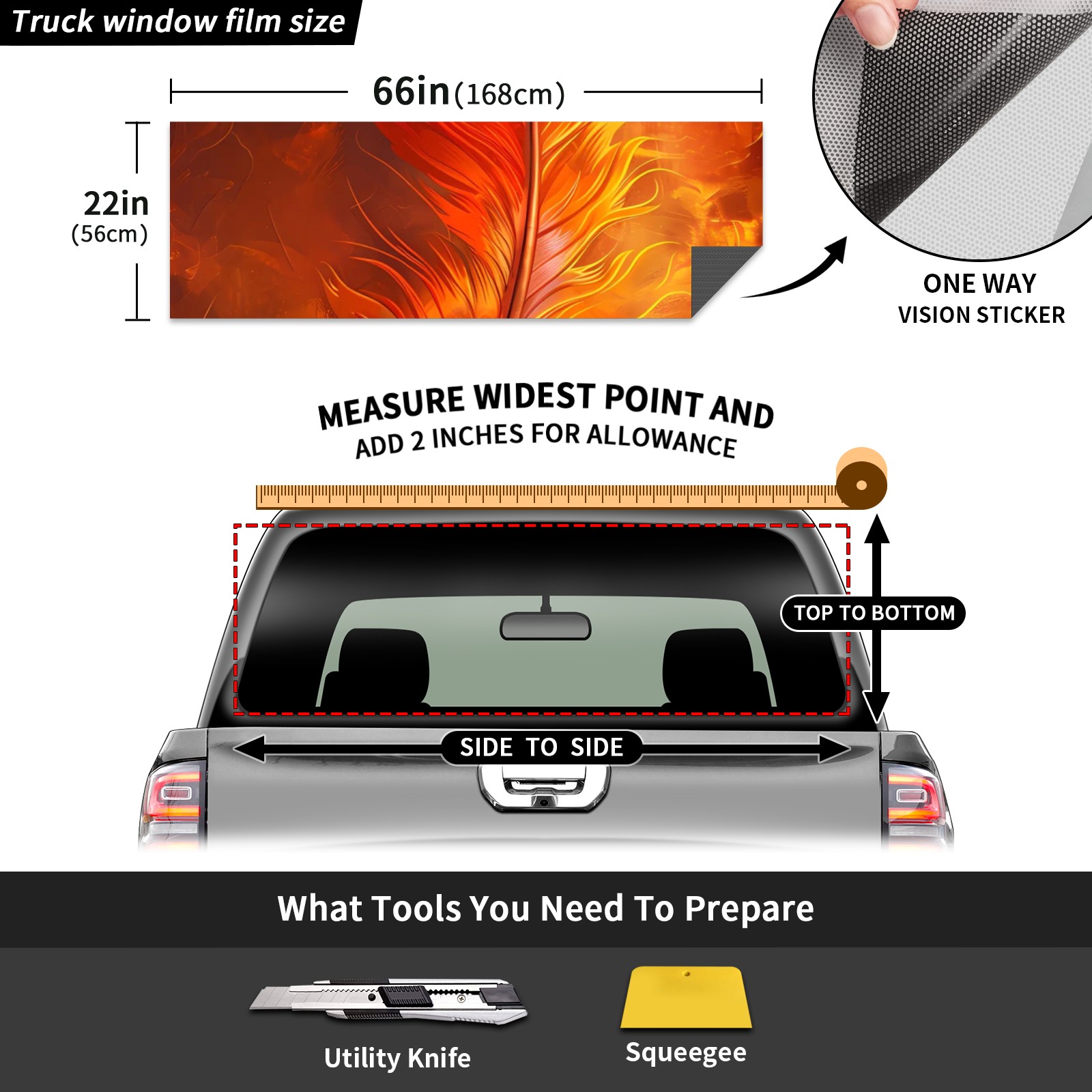 Truck Rear Window Graphics Decals Pickup Trucks Back Window Sticker Full Window Film Decal One Way Visual Waterproof Car Rear Tint Feather