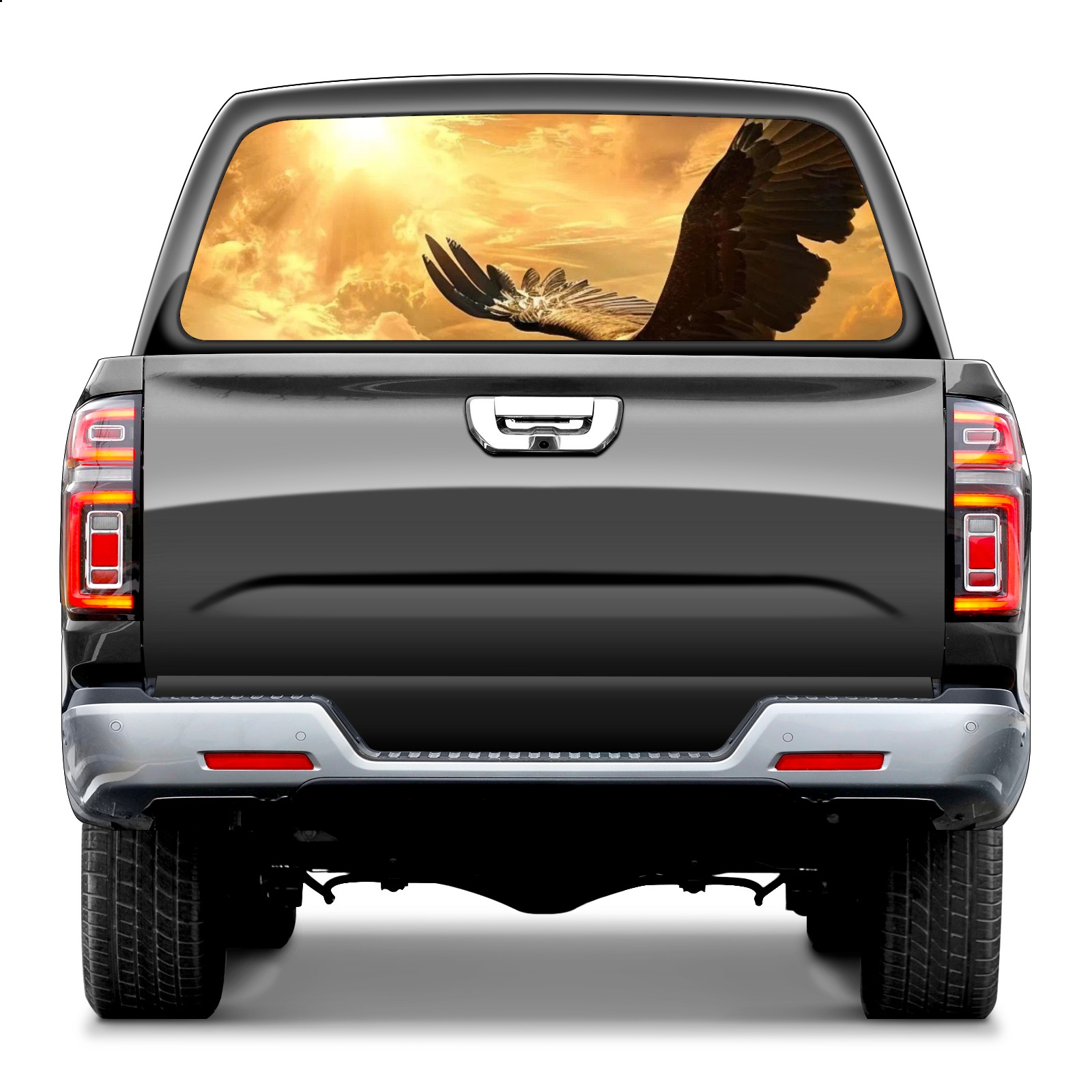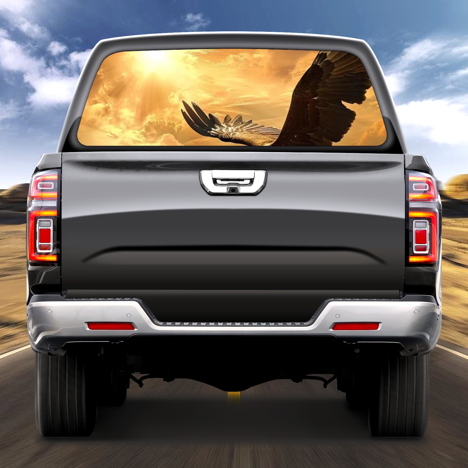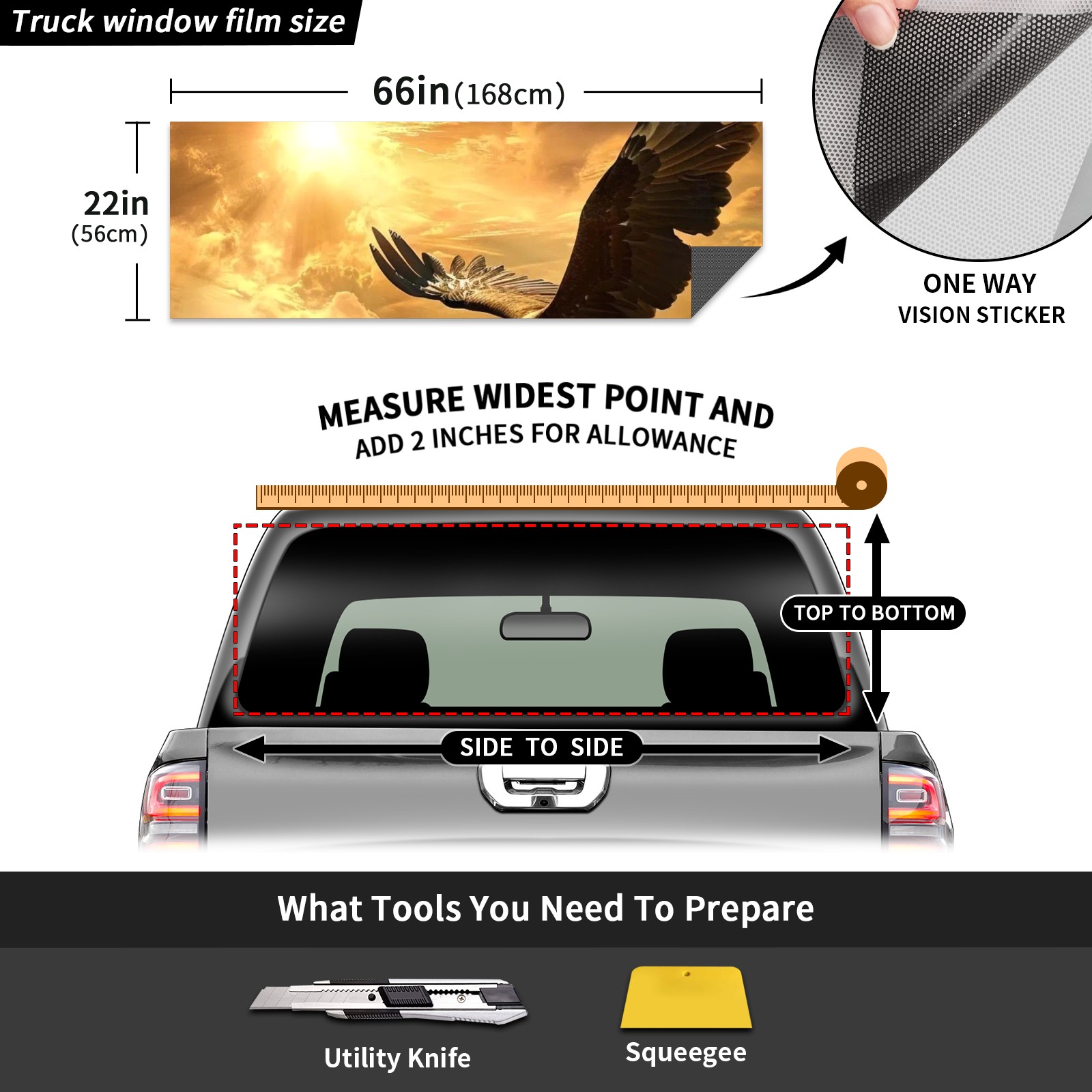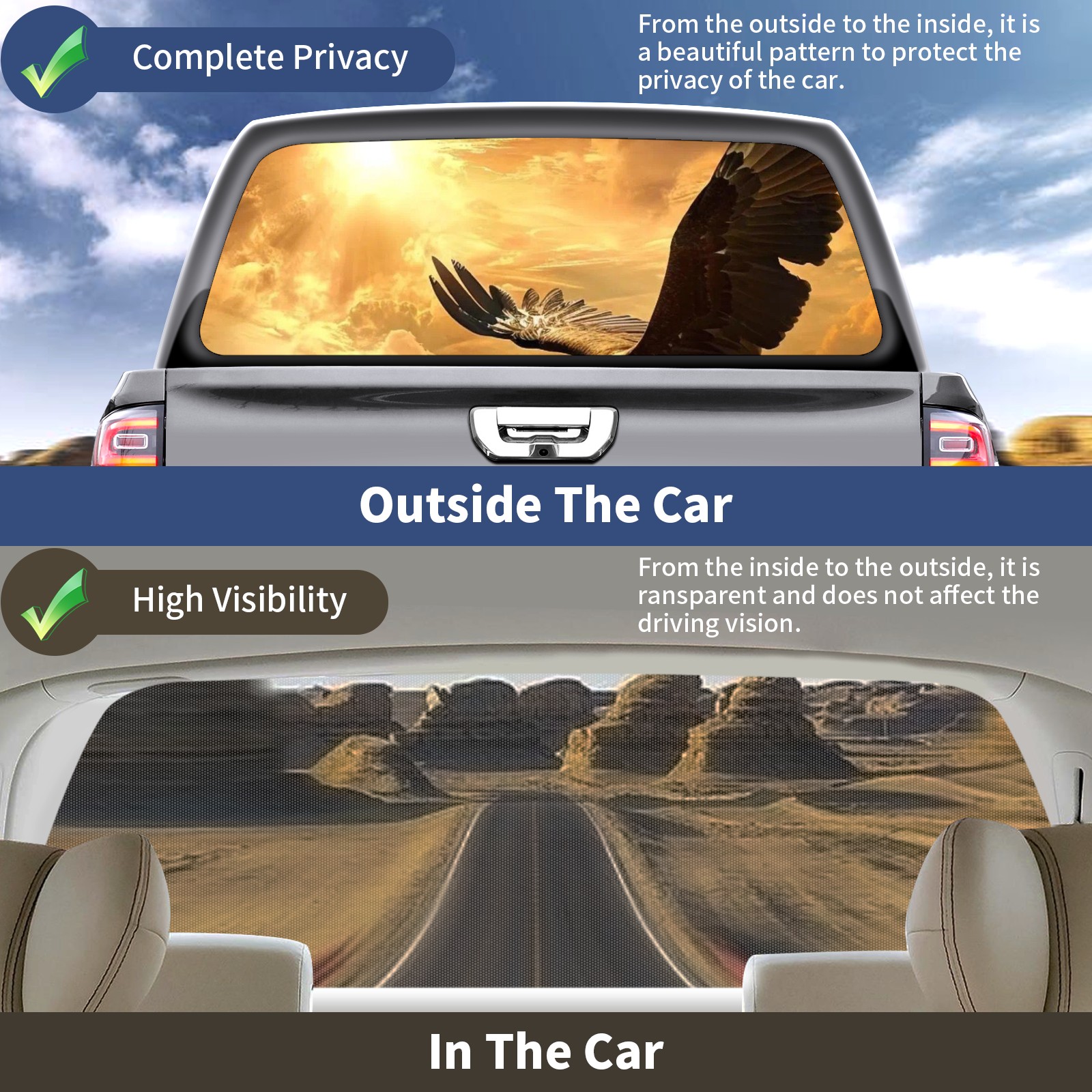 Truck Rear Window Graphics Decals Pickup Trucks Back Window Sticker Full Window Film Decal One Way Visual Waterproof Car Rear Tint Sky Bald Eagle