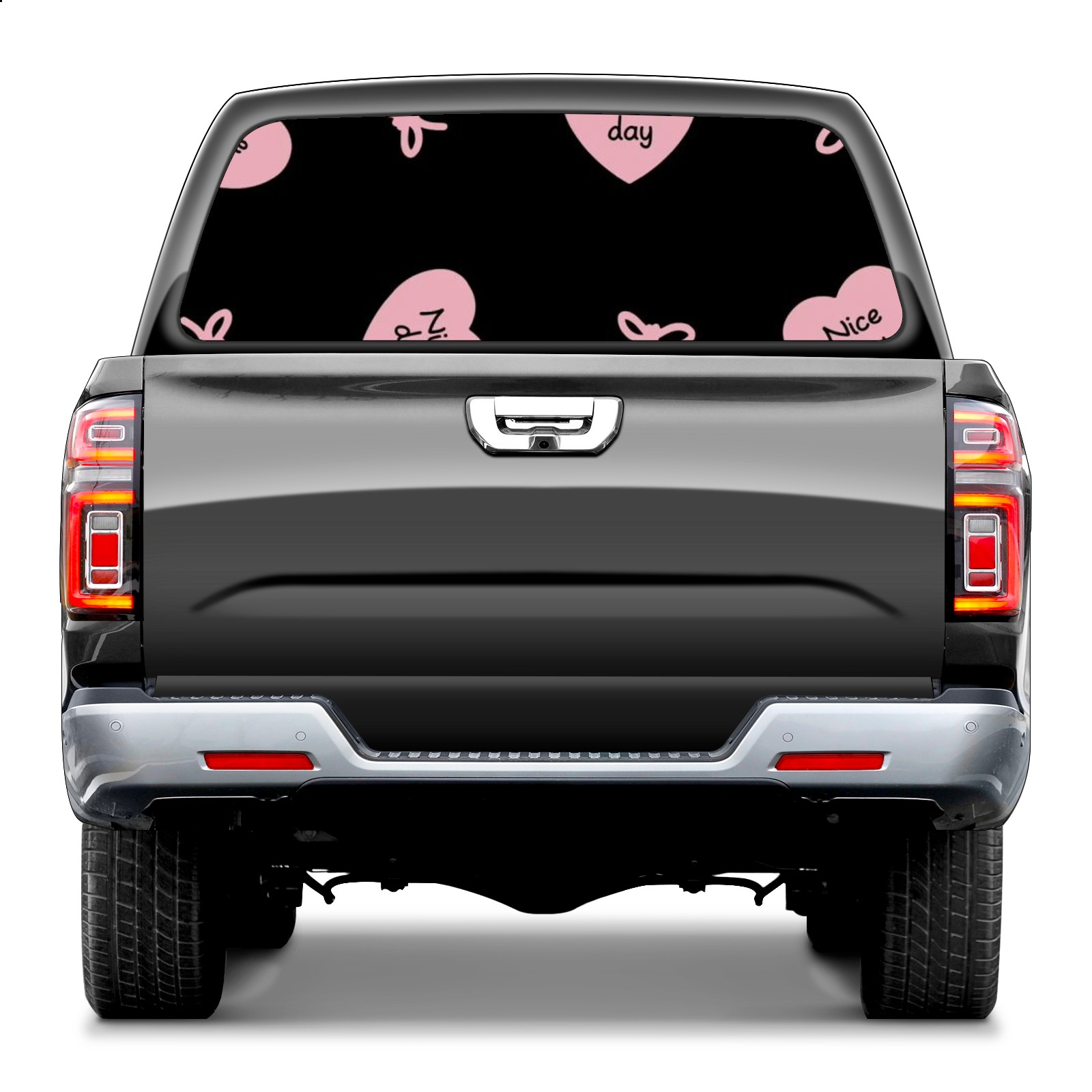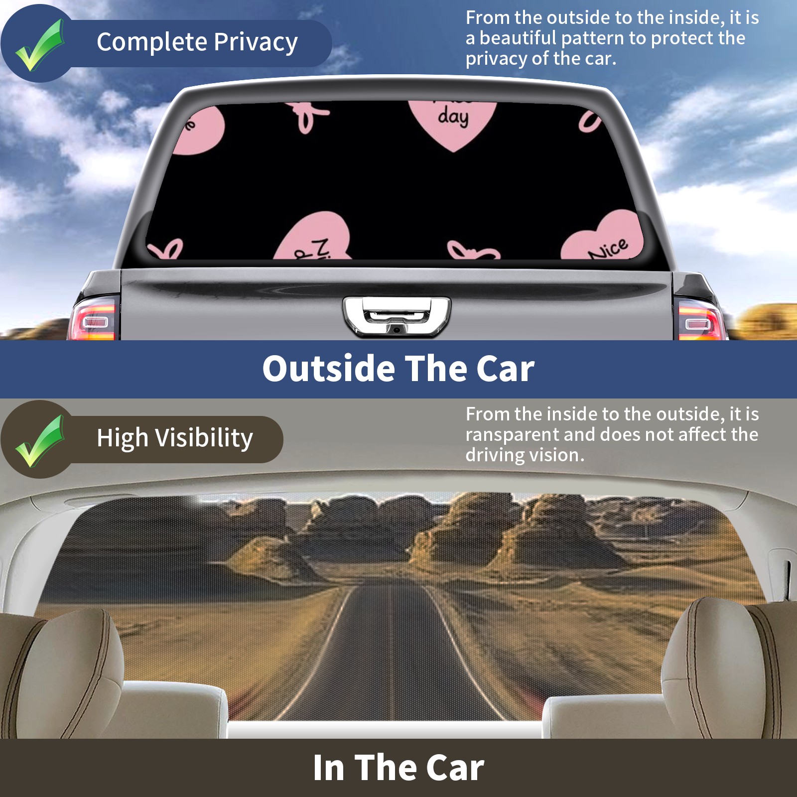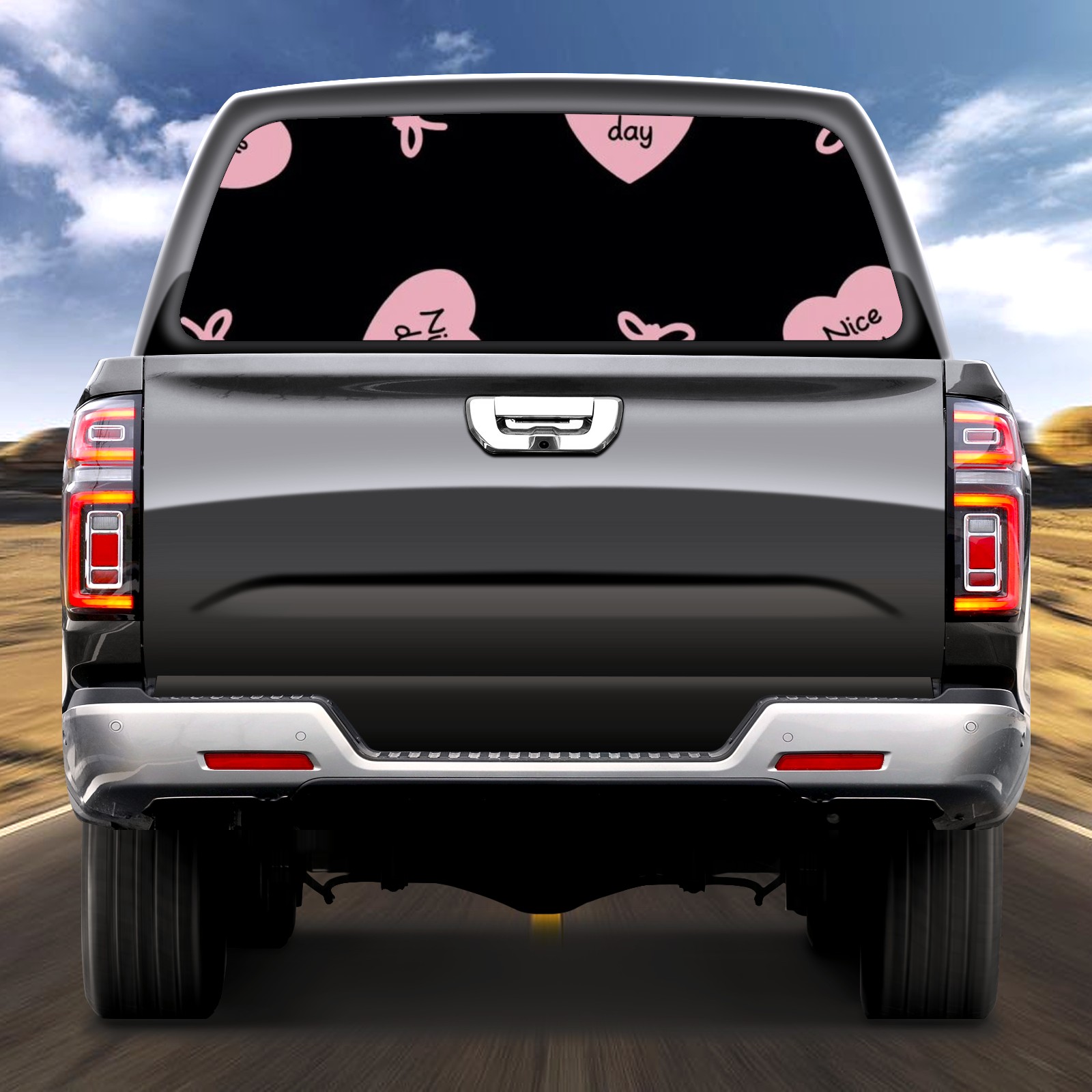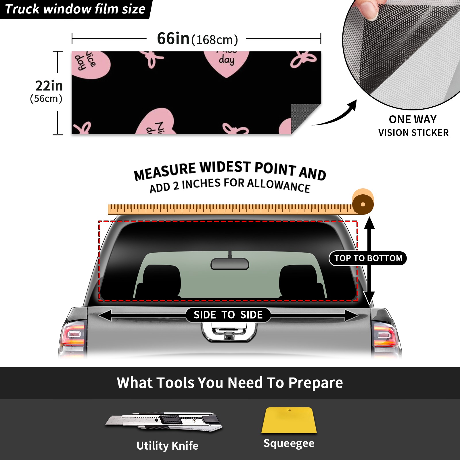 Truck Rear Window Graphics Decals Pickup Trucks Back Window Sticker Full Window Film Decal One Way Visual Waterproof Car Rear Tint Bow Tie Red Heart