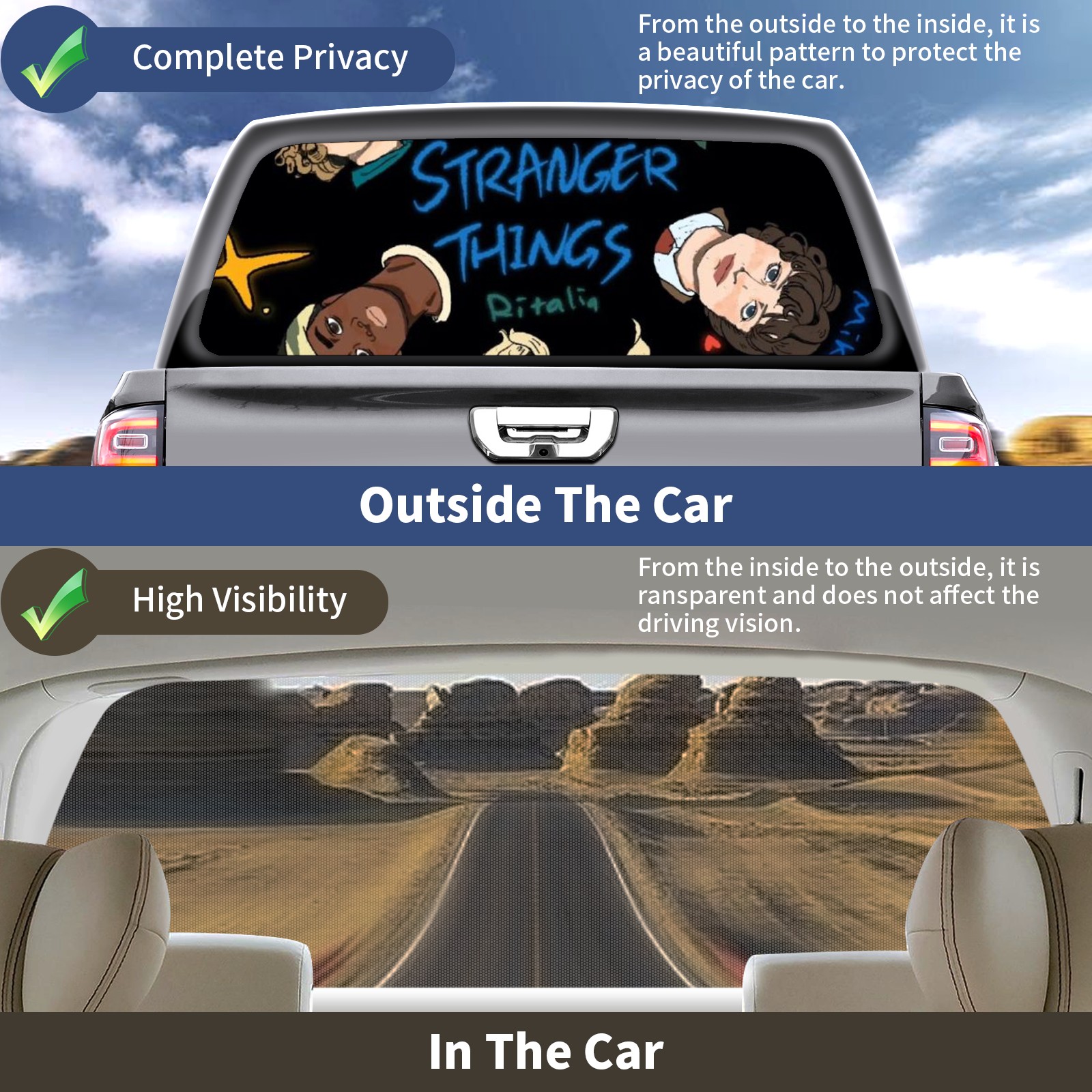Truck Rear Window Graphics Decals Pickup Trucks Back Window Sticker Full Window Film Decal One Way Visual Waterproof Car Rear Tint Anime Characters