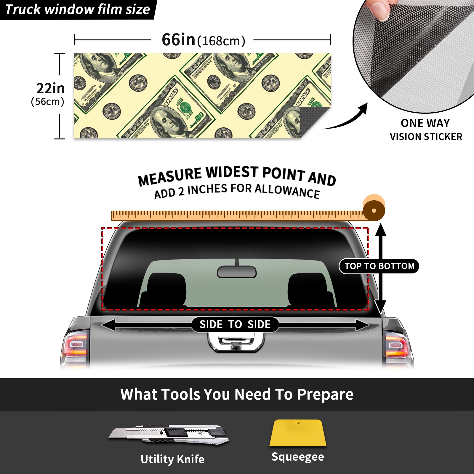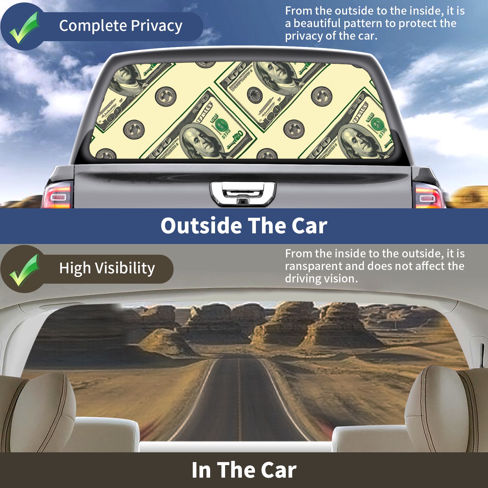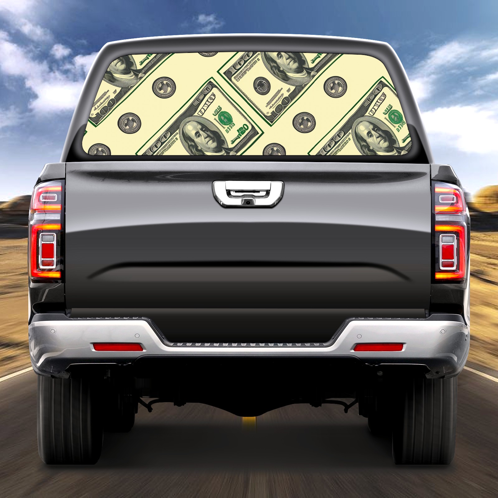 Truck Rear Window Graphics Decals Pickup Trucks Back Window Sticker Full Window Film Decal One Way Visual Waterproof Car Rear Tint Dollar