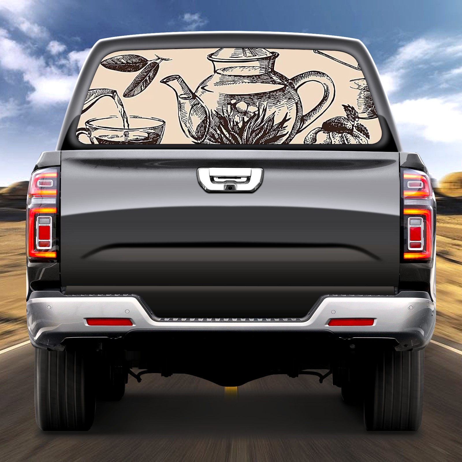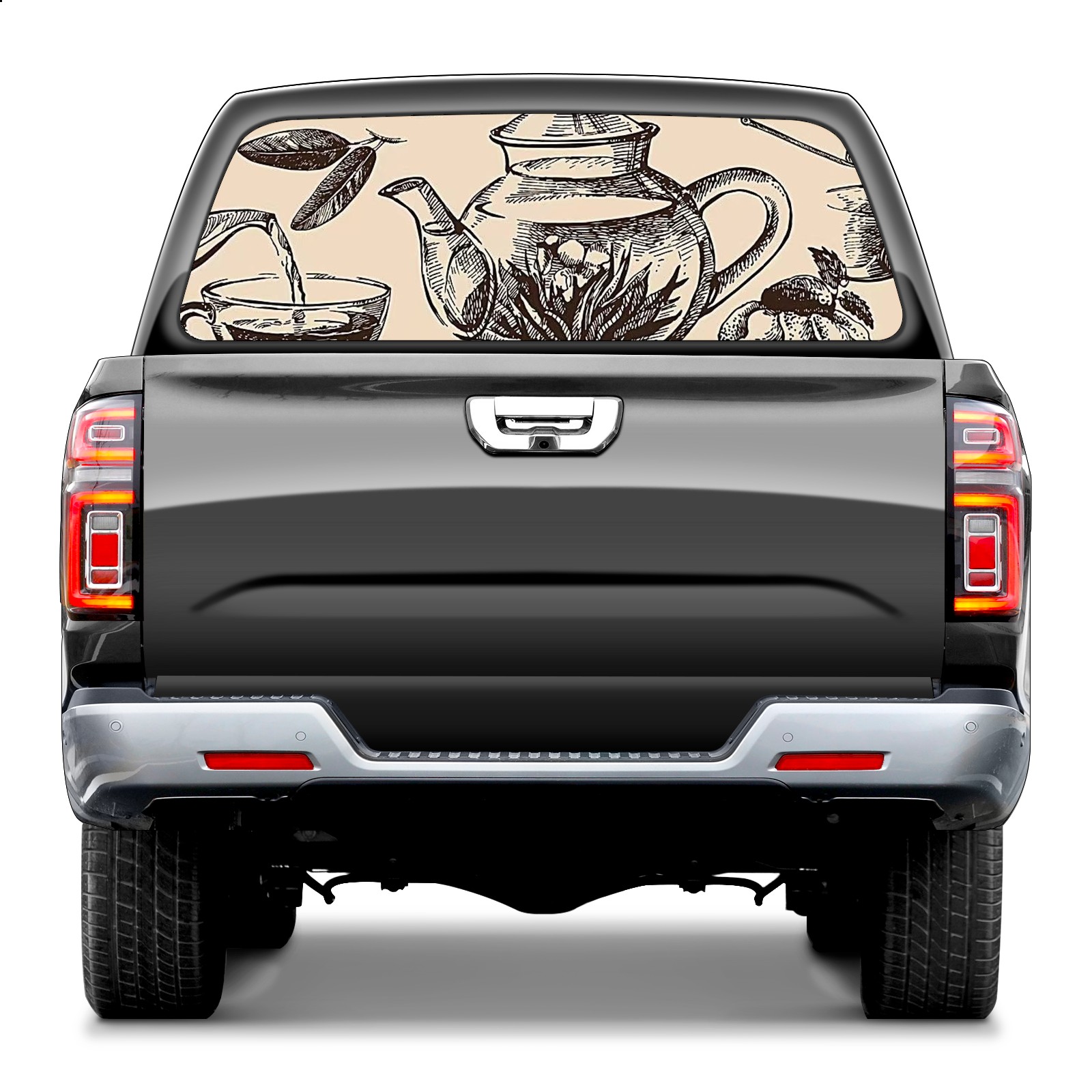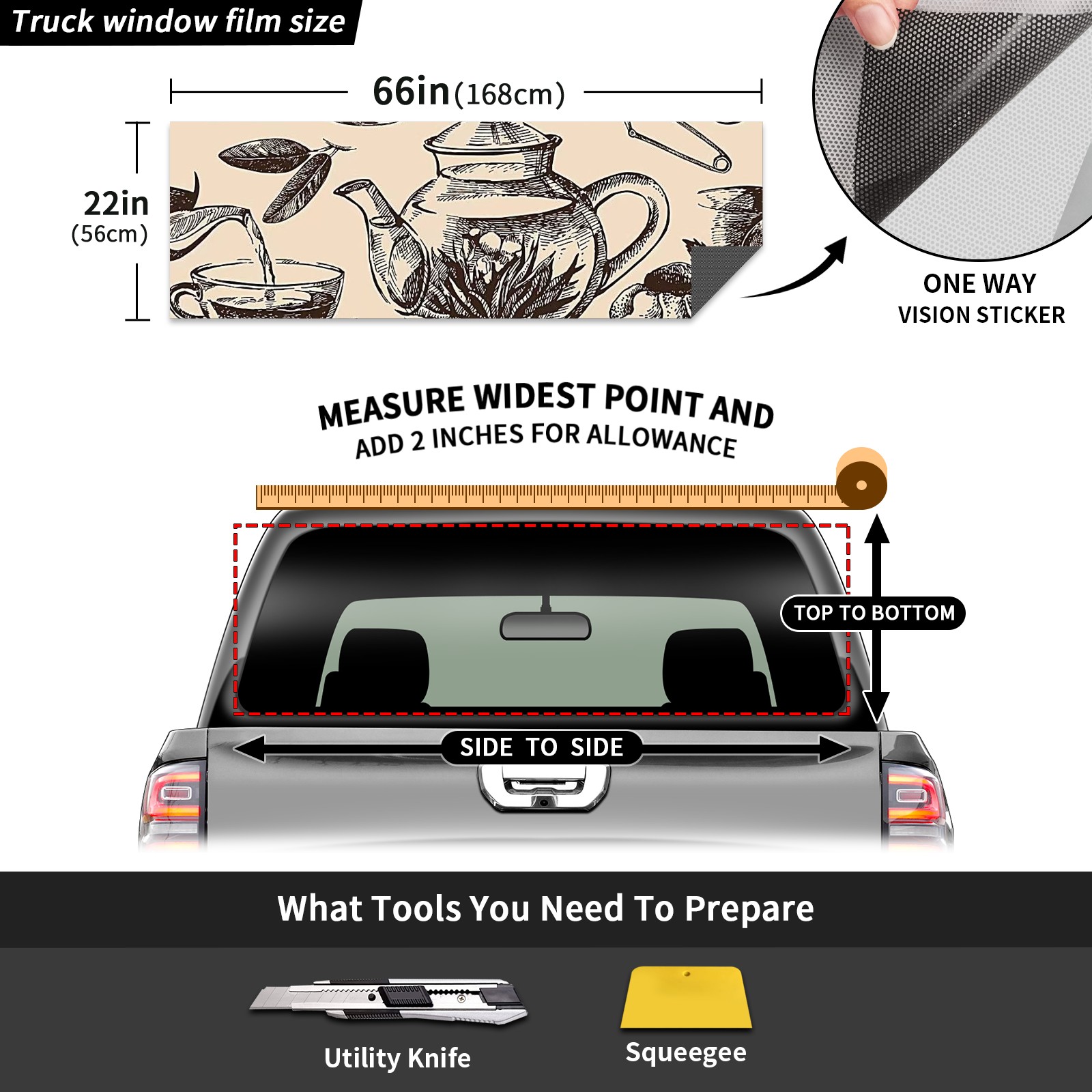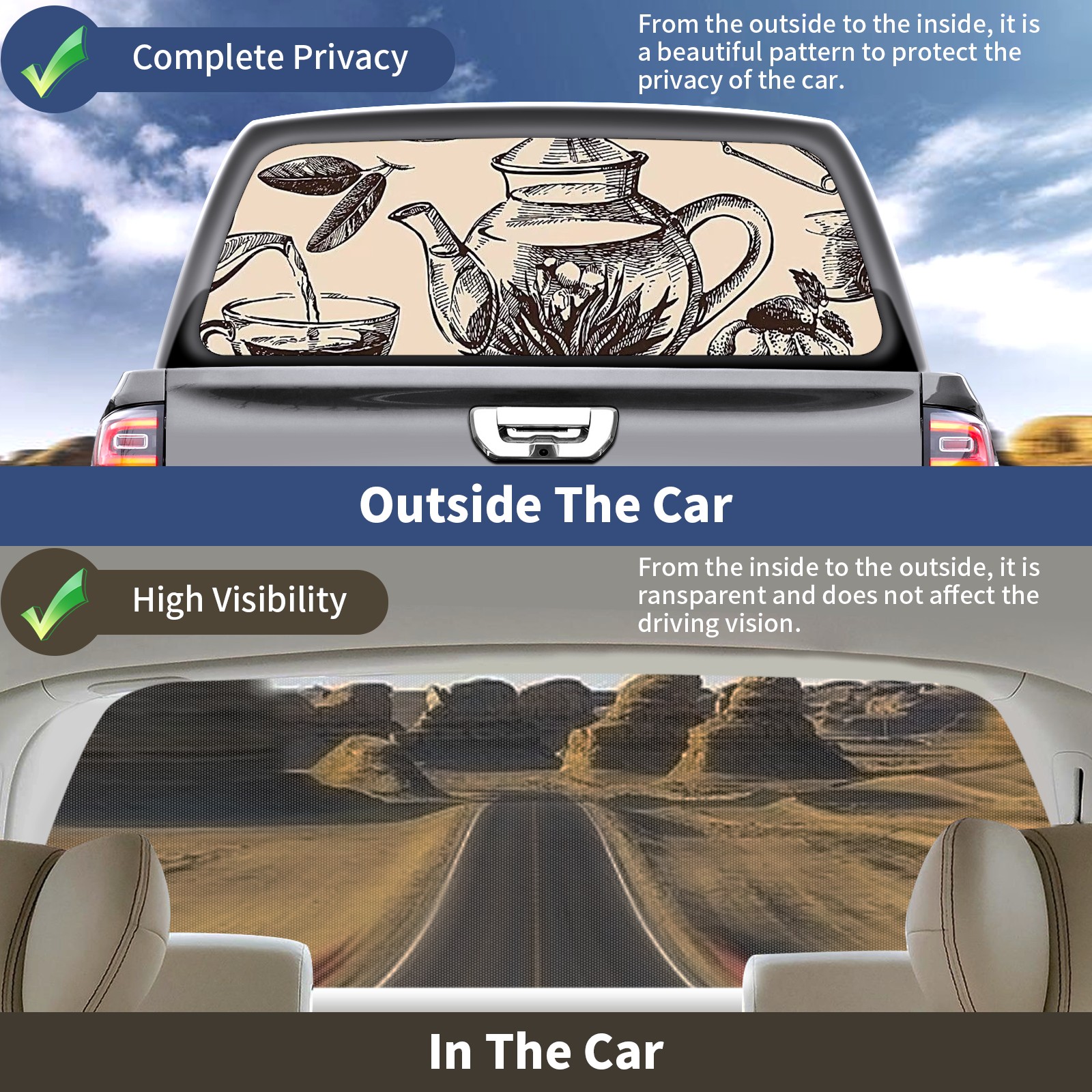 Truck Rear Window Graphics Decals Pickup Trucks Back Window Sticker Full Window Film Decal One Way Visual Waterproof Car Rear Tint Teapot