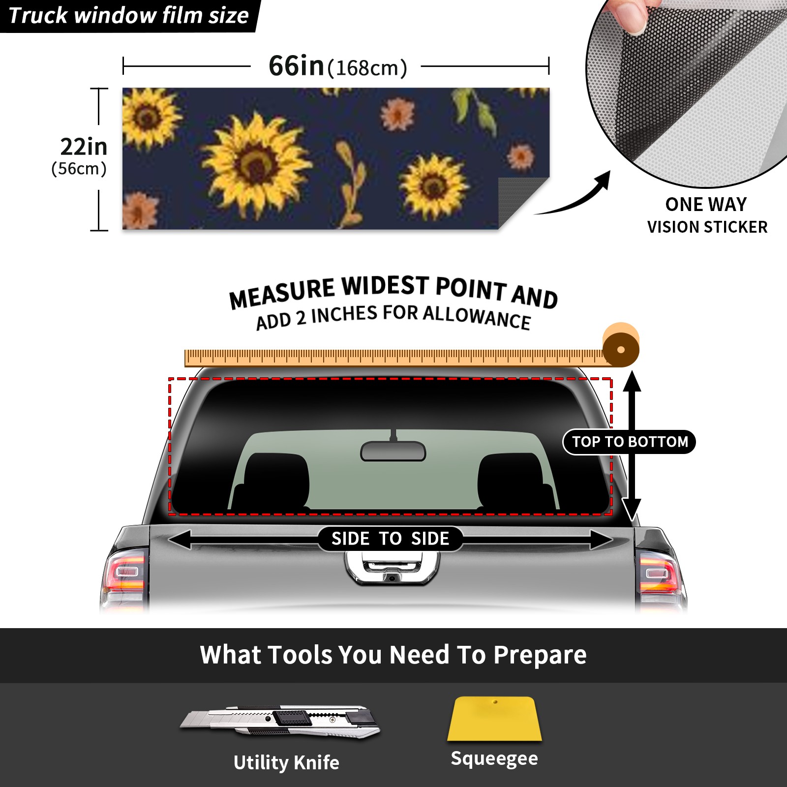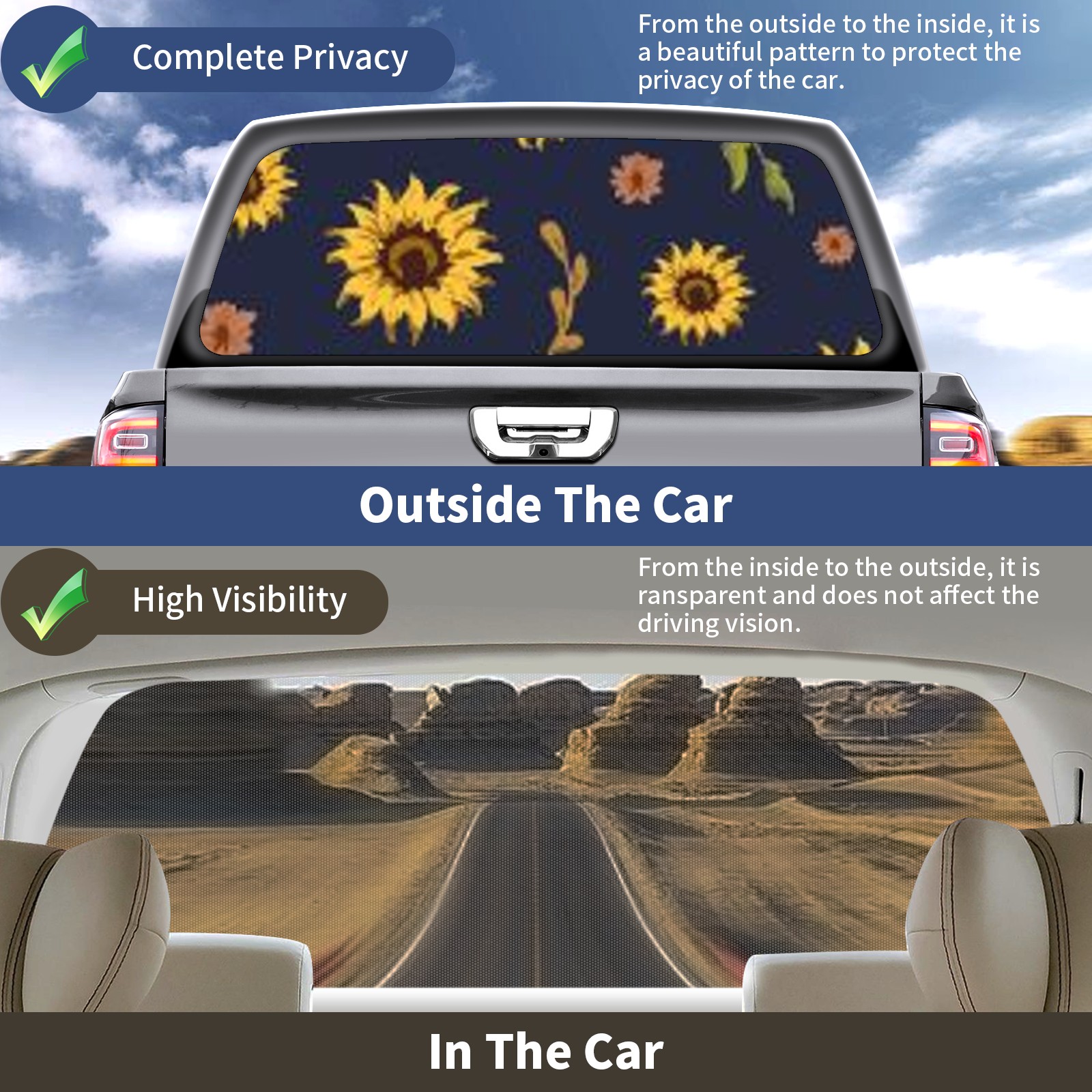 Truck Rear Window Graphics Decals Pickup Trucks Back Window Sticker Full Window Film Decal One Way Visual Waterproof Car Rear Tint Sunflower