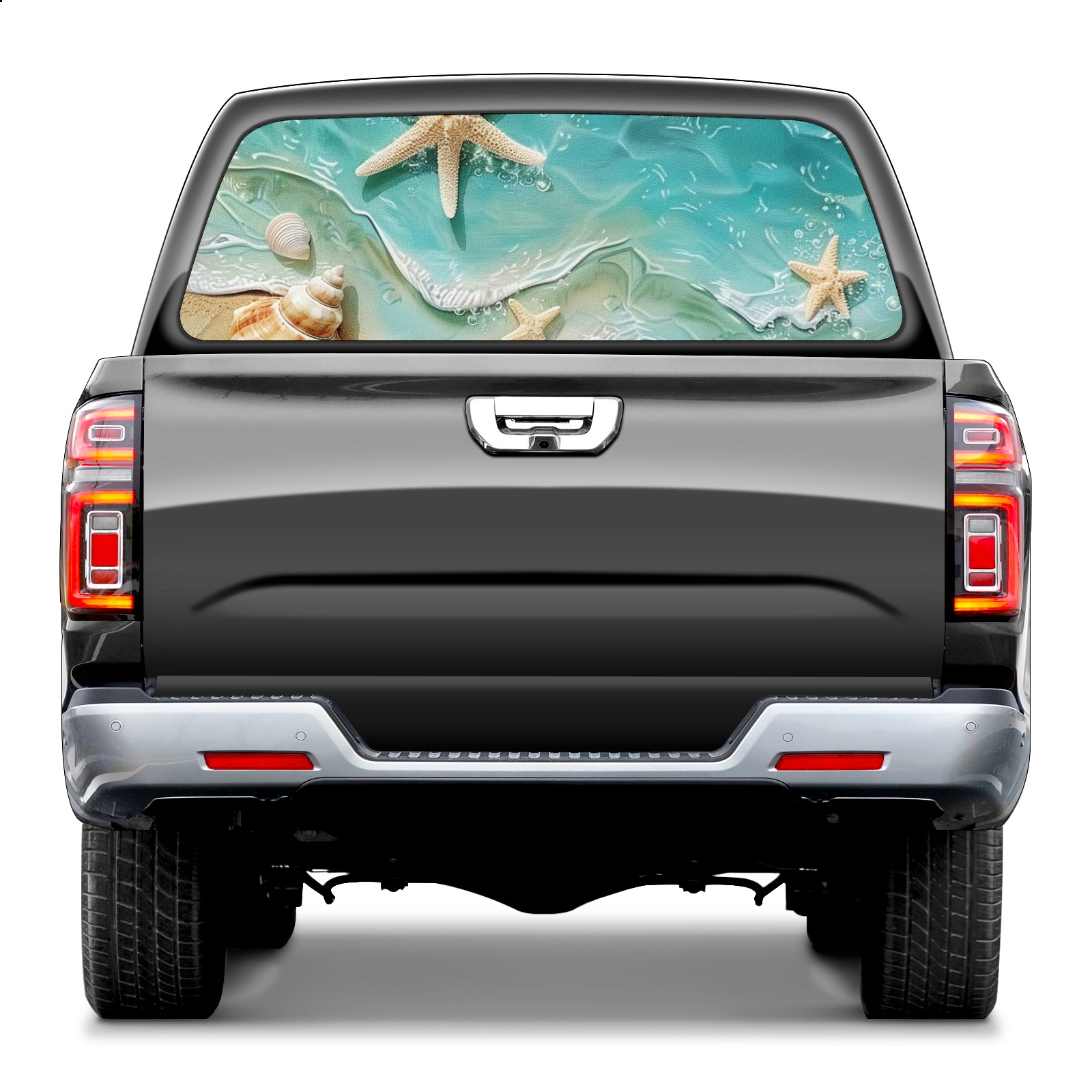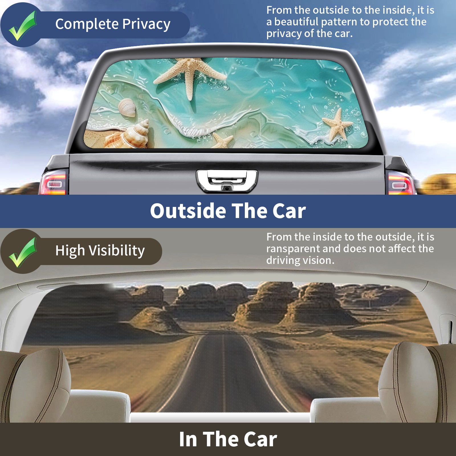 Truck Rear Window Graphics Decals Pickup Trucks Back Window Sticker Full Window Film Decal One Way Visual Waterproof Car Rear Tint Sea
