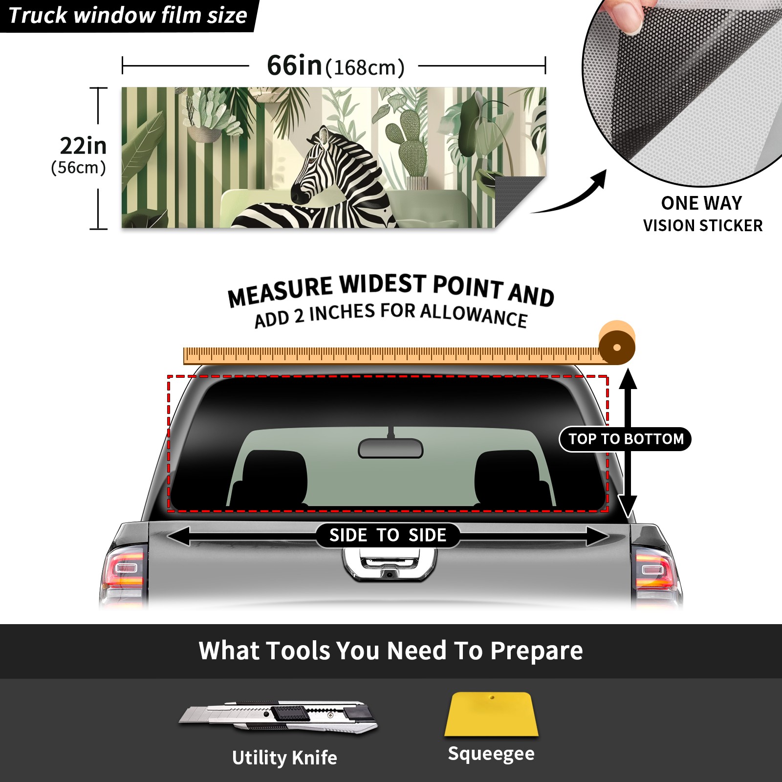 Truck Rear Window Graphics Decals Pickup Trucks Back Window Sticker Full Window Film Decal One Way Visual Waterproof Car Rear Tint Zebra