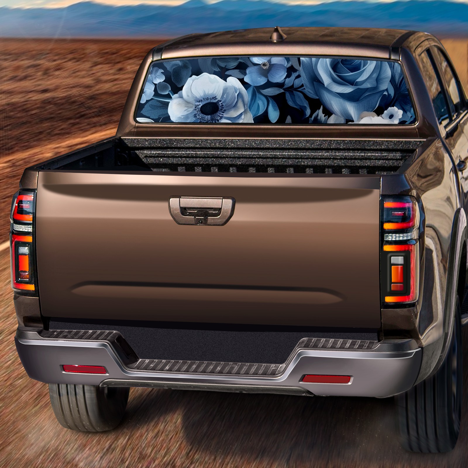 Truck Rear Window Graphics Decals Pickup Trucks Back Window Sticker Full Window Film Decal One Way Visual Waterproof Car Rear Tint Blue Flower