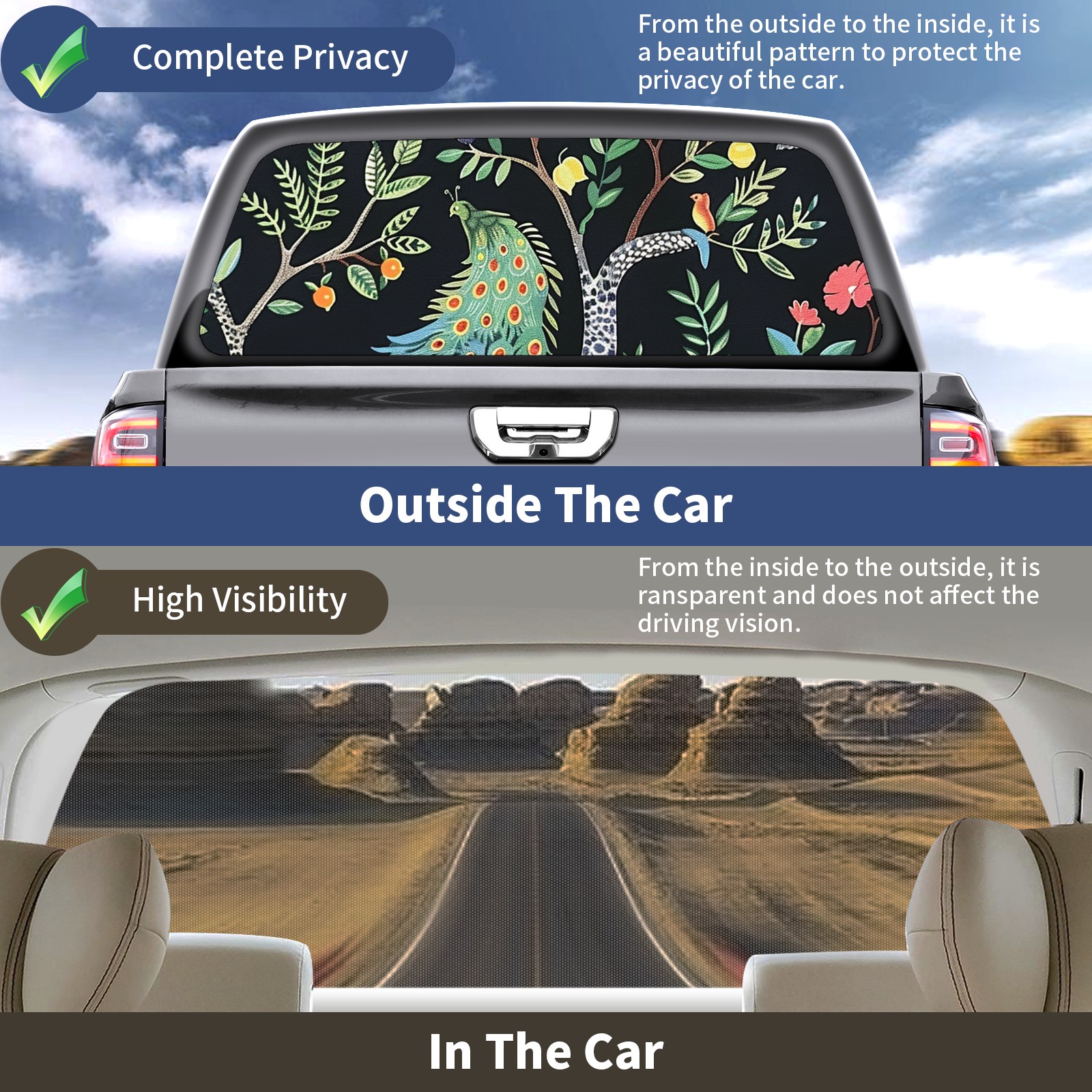 • </b>Window film one-way light transmission Protect your privacy while allowing you to enjoy the scenery outside your window!</b> <br> </b>●Decals Instructions Usage--Teach You To Use Quickly</b> <br> 1.Clean the window galss thoroughly <br> 2.Use a Squeegee or other card to scrape off the remaining water and bumps(don't use too much force) <br> 3.Remove the film's back cover .Use a knife to cut out a suitable contour and wipe off the remaining water(you can also use a hair dryer to blow dry) <br> 4.Find a suitable location and stick a sticker <br> </b>●Unique Design</b> <br> ZXIVGOQFR Back window stickers ‘s smart looking and unique cute design makes your vehicle special under sunshine. Makes your car easy to identify, perfect for finding your car in crowded parking lots and garages.funny visor reflects personality and attitude. <br> </b>●Perfect Gift for all Drivers<br></b> We create all the gifts and accessories you only need to choose what you like. Get full tailgate wraps, rear window decals, and everything you need to make your pickup truck look awesome. <br> </b> Decorate Your Pickup Truck With Touches Today!</b>