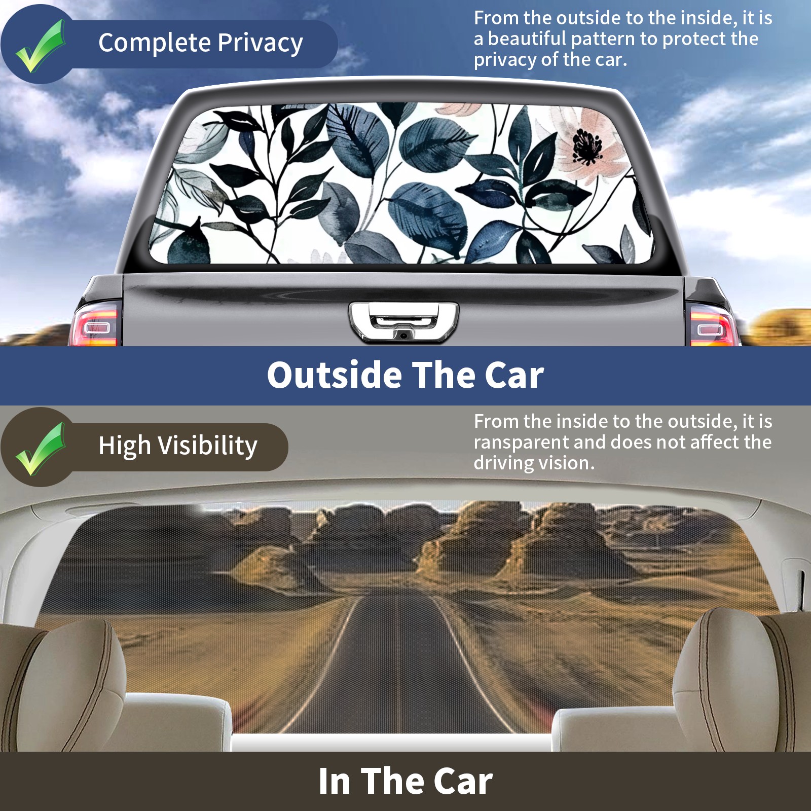 </b>Window film one-way light transmission Protect your privacy while allowing you to enjoy the scenery outside your window!</b> <br> </b>●Decals Instructions Usage--Teach You To Use Quickly</b> <br> 1.Clean the window galss thoroughly <br> 2.Use a Squeegee or other card to scrape off the remaining water and bumps(don't use too much force) <br> 3.Remove the film's back cover .Use a knife to cut out a suitable contour and wipe off the remaining water(you can also use a hair dryer to blow dry) <br> 4.Find a suitable location and stick a sticker <br> </b>●Unique Design</b> <br> ZXIVGOQFR Back window stickers ‘s smart looking and unique cute design makes your vehicle special under sunshine. Makes your car easy to identify, perfect for finding your car in crowded parking lots and garages.funny visor reflects personality and attitude. <br> </b>●Perfect Gift for all Drivers<br></b> We create all the gifts and accessories you only need to choose what you like. Get full tailgate wraps, rear window decals, and everything you need to make your pickup truck look awesome. <br> </b> Decorate Your Pickup Truck With Touches Today!</b>