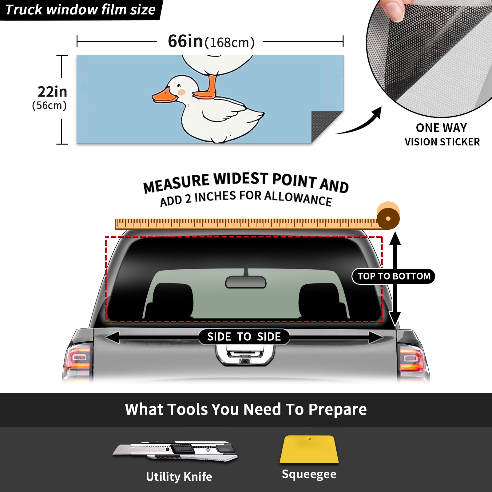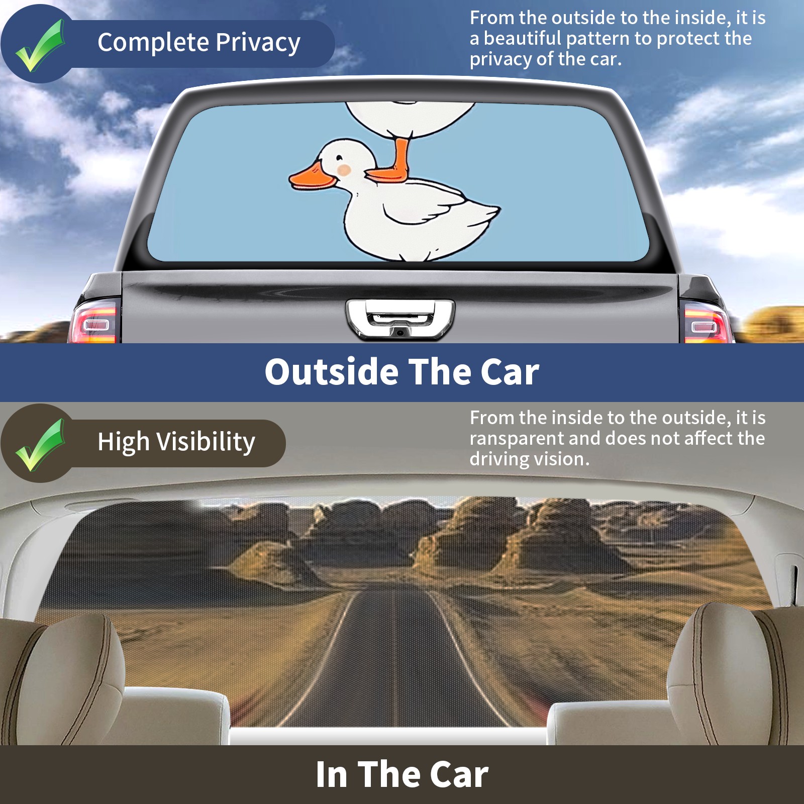 Truck Rear Window Graphics Decals Pickup Trucks Back Window Sticker Full Window Film Decal One Way Visual Waterproof Car Rear Tint Duck