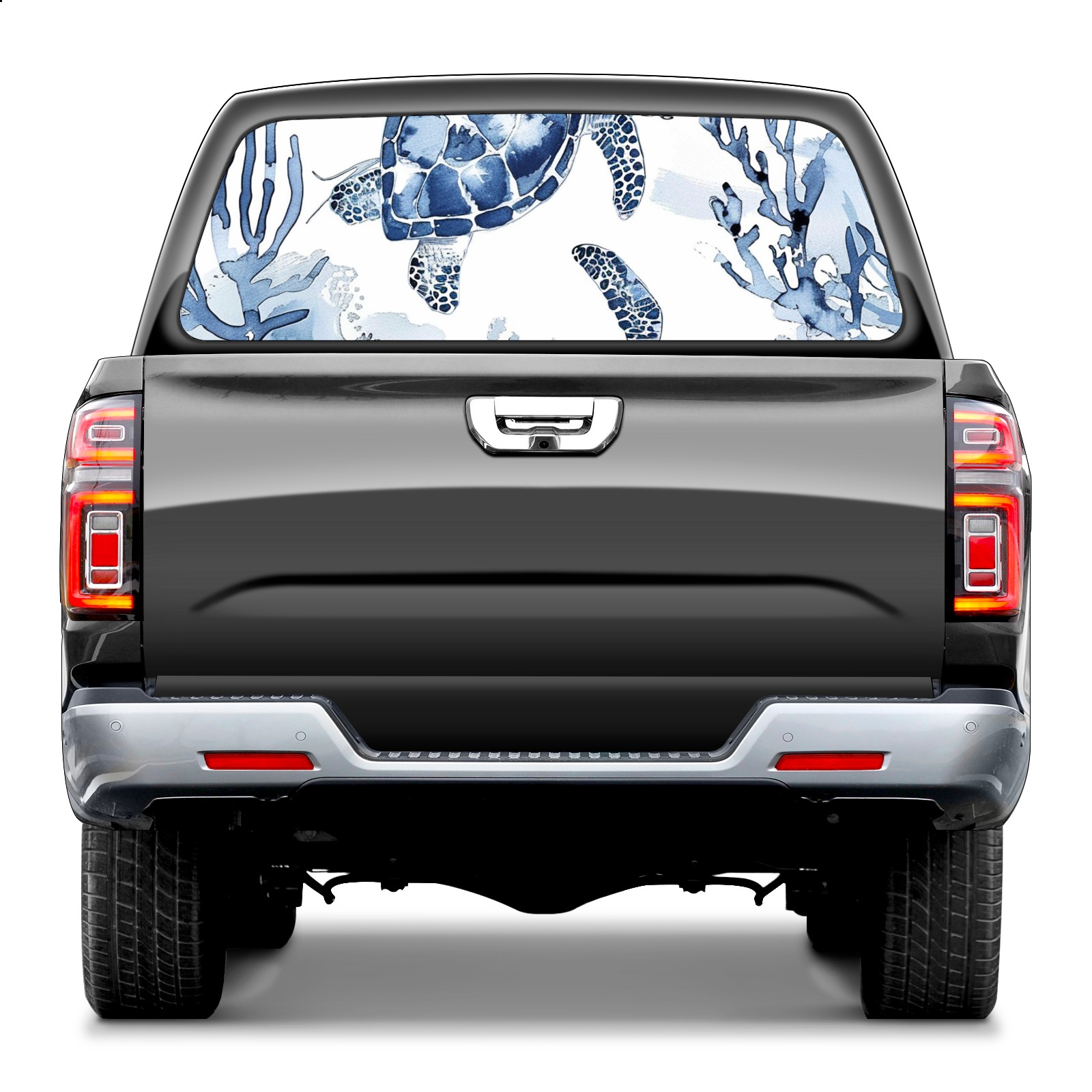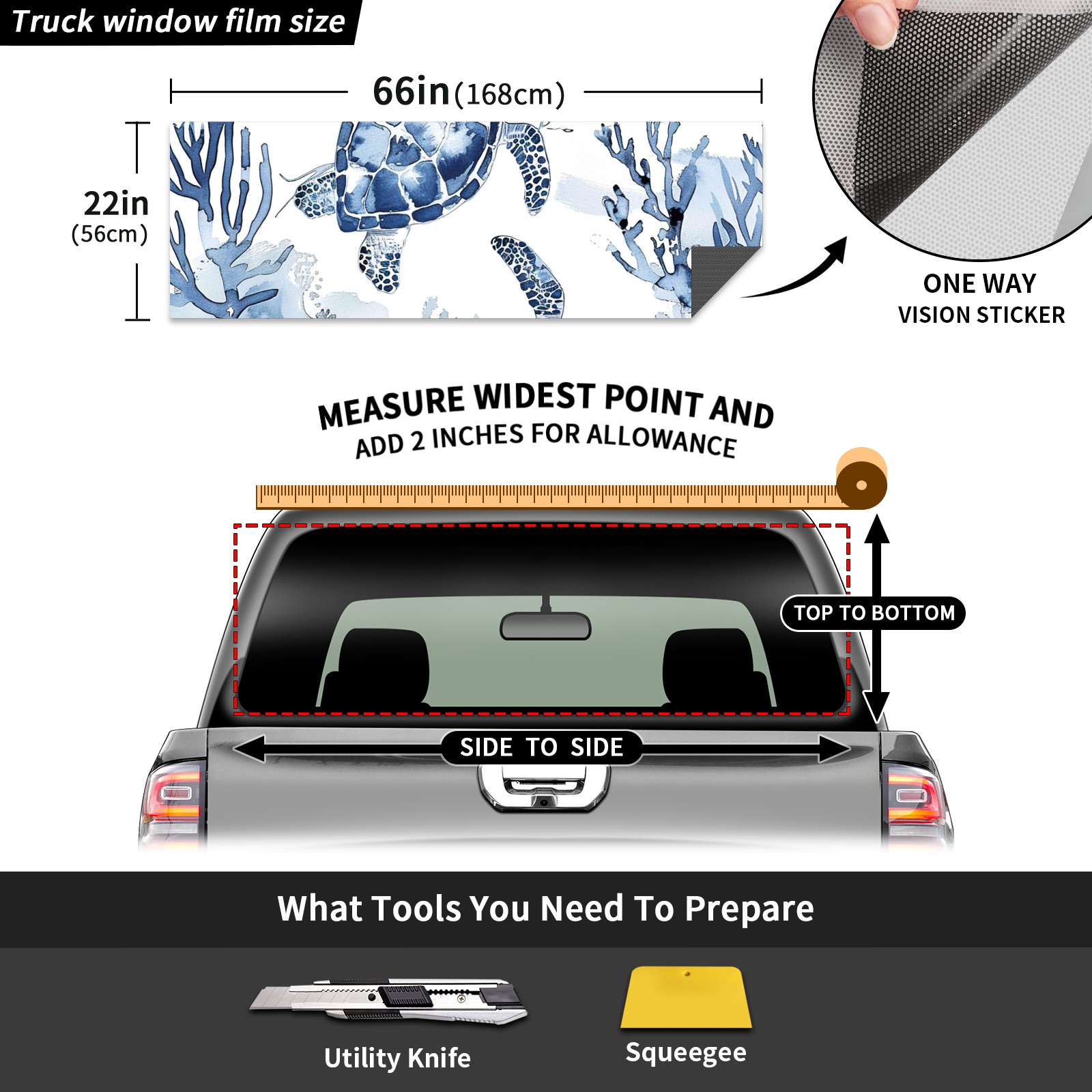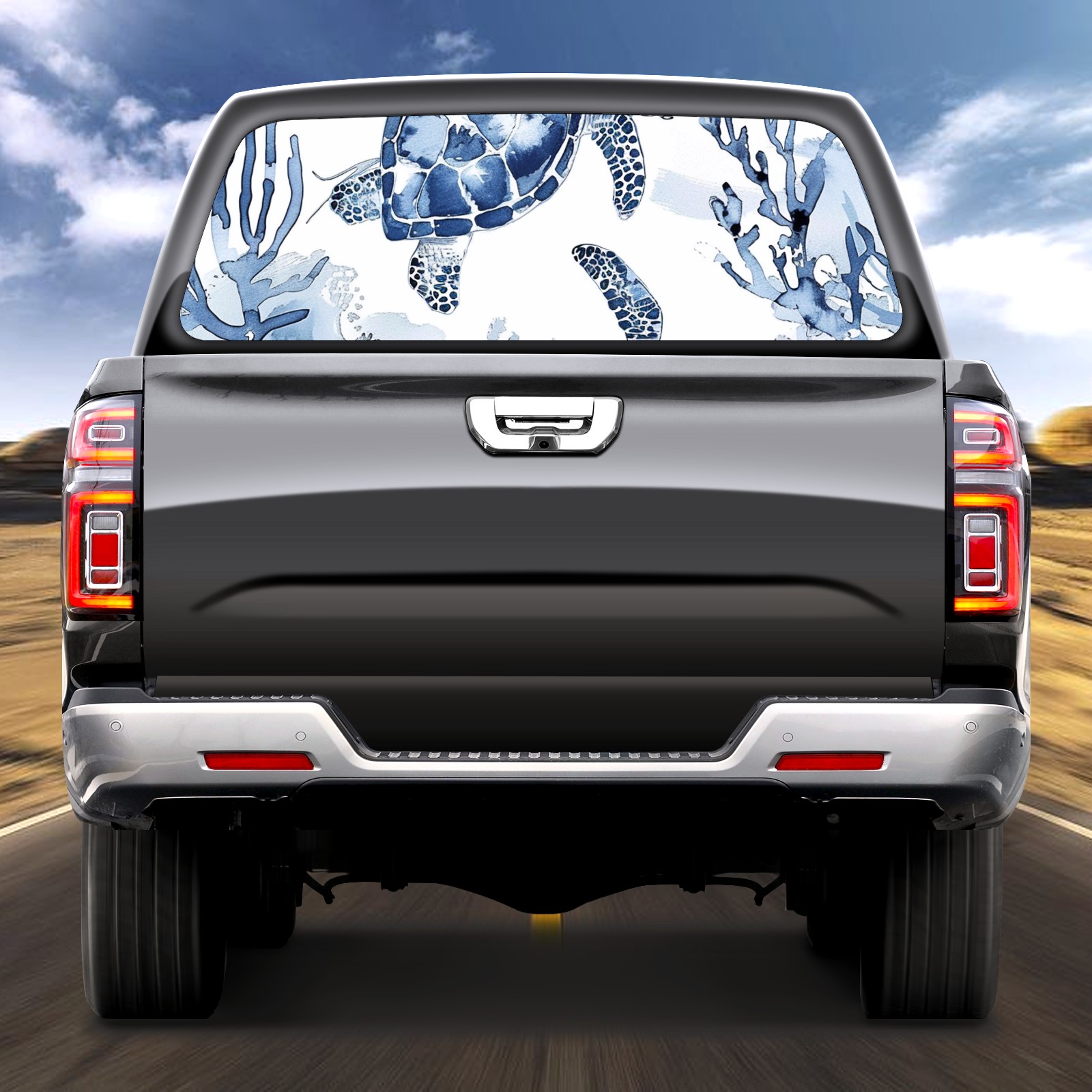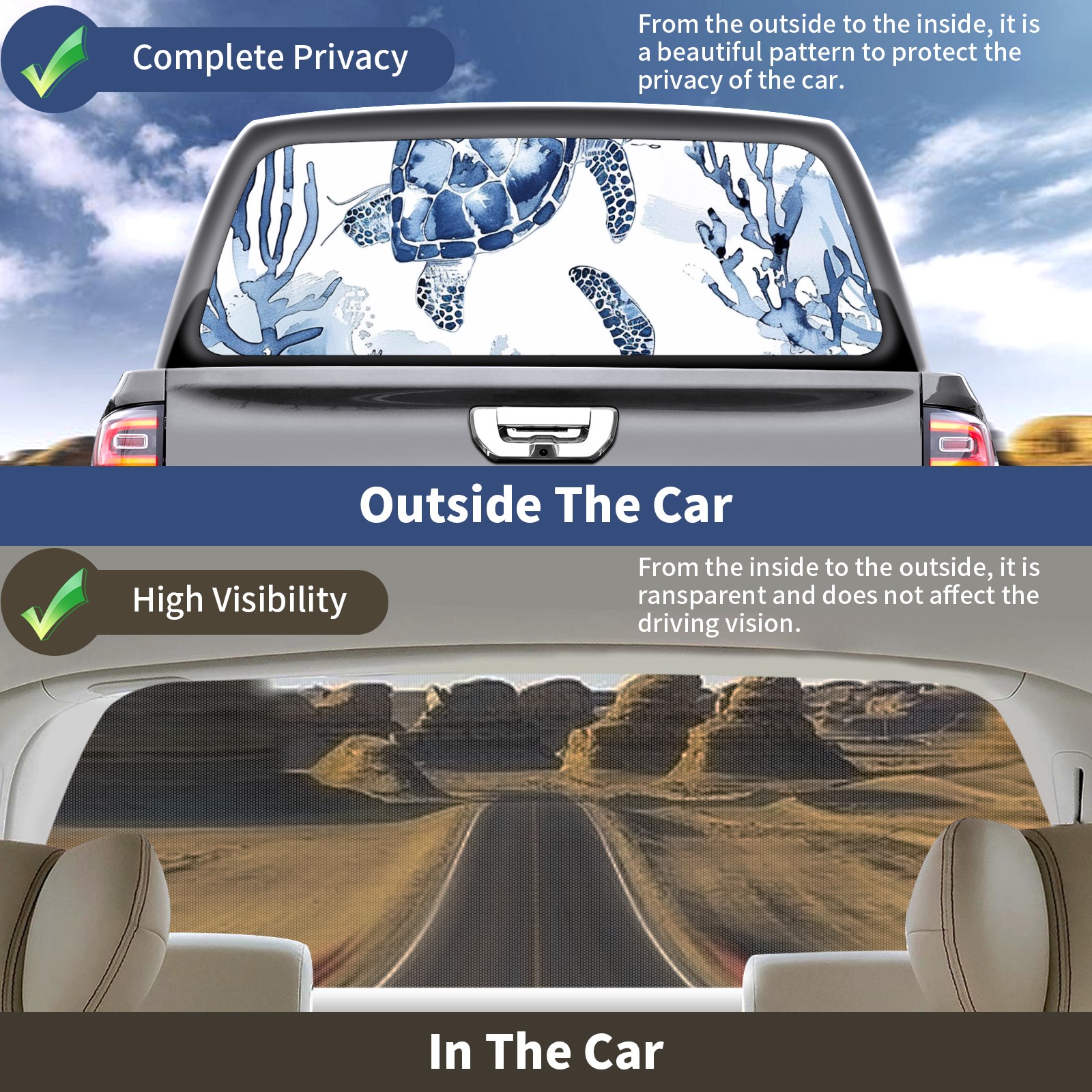 Truck Rear Window Graphics Decals Pickup Trucks Back Window Sticker Full Window Film Decal One Way Visual Waterproof Car Rear Tint Turtle
