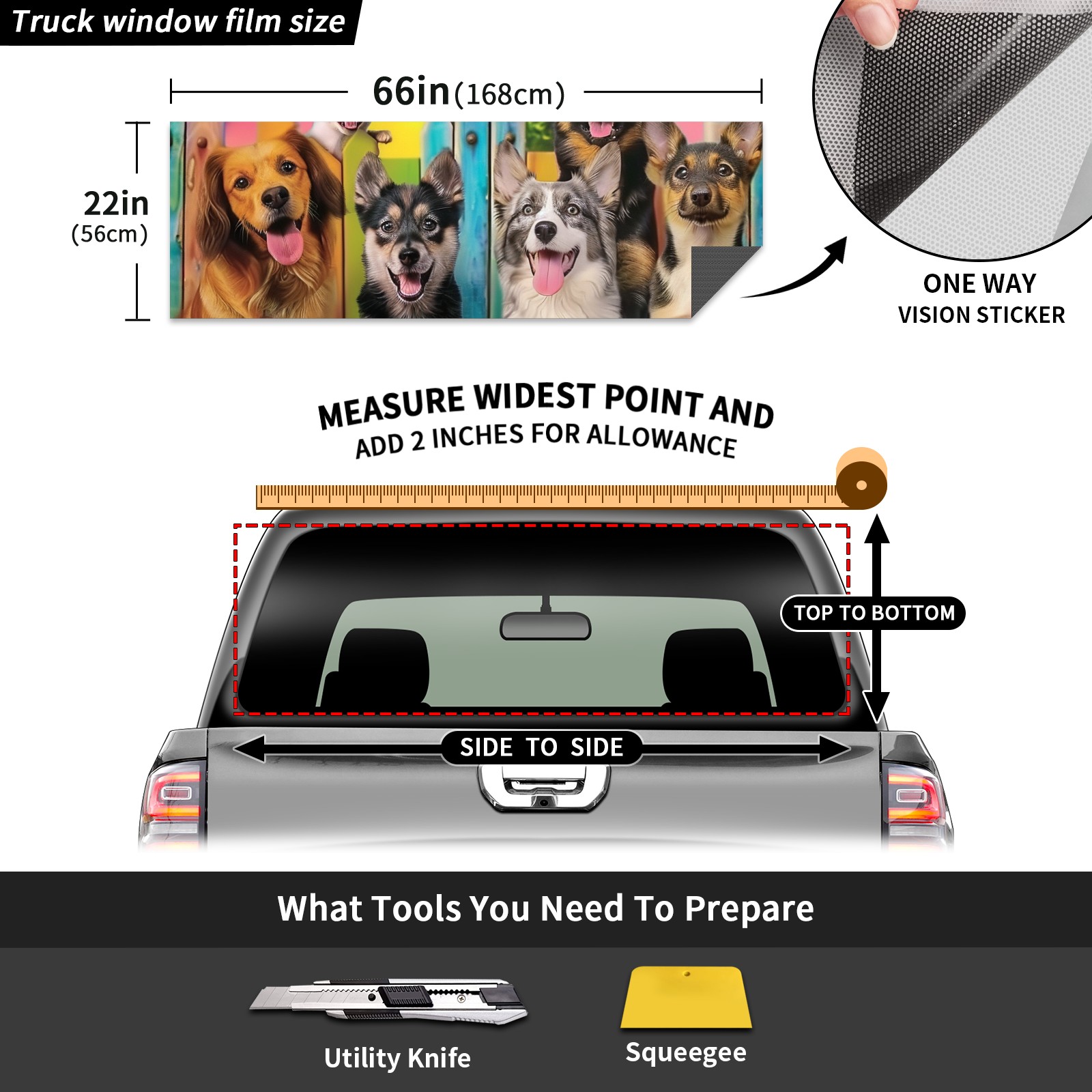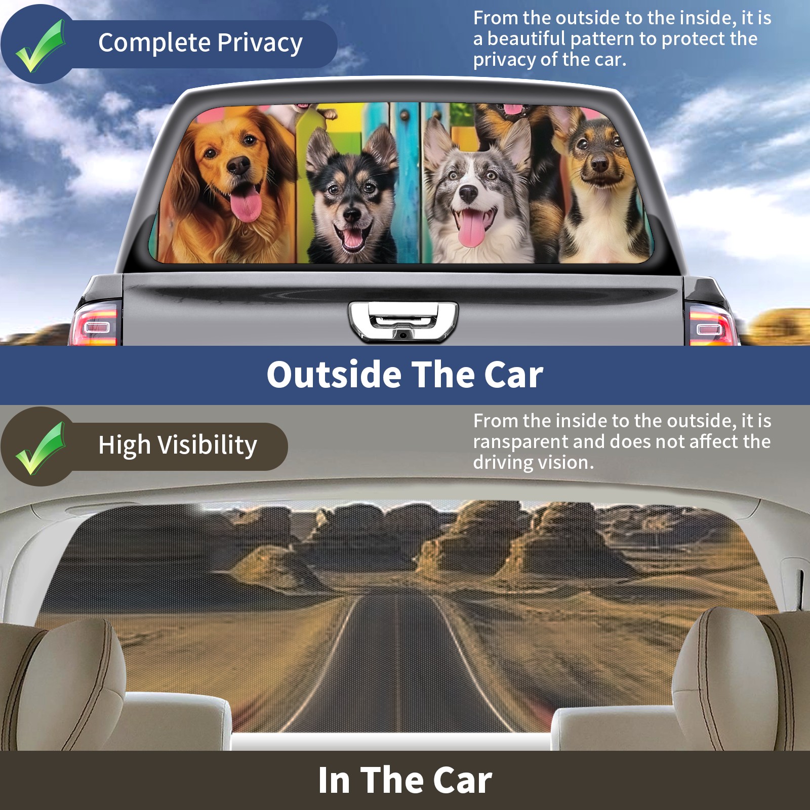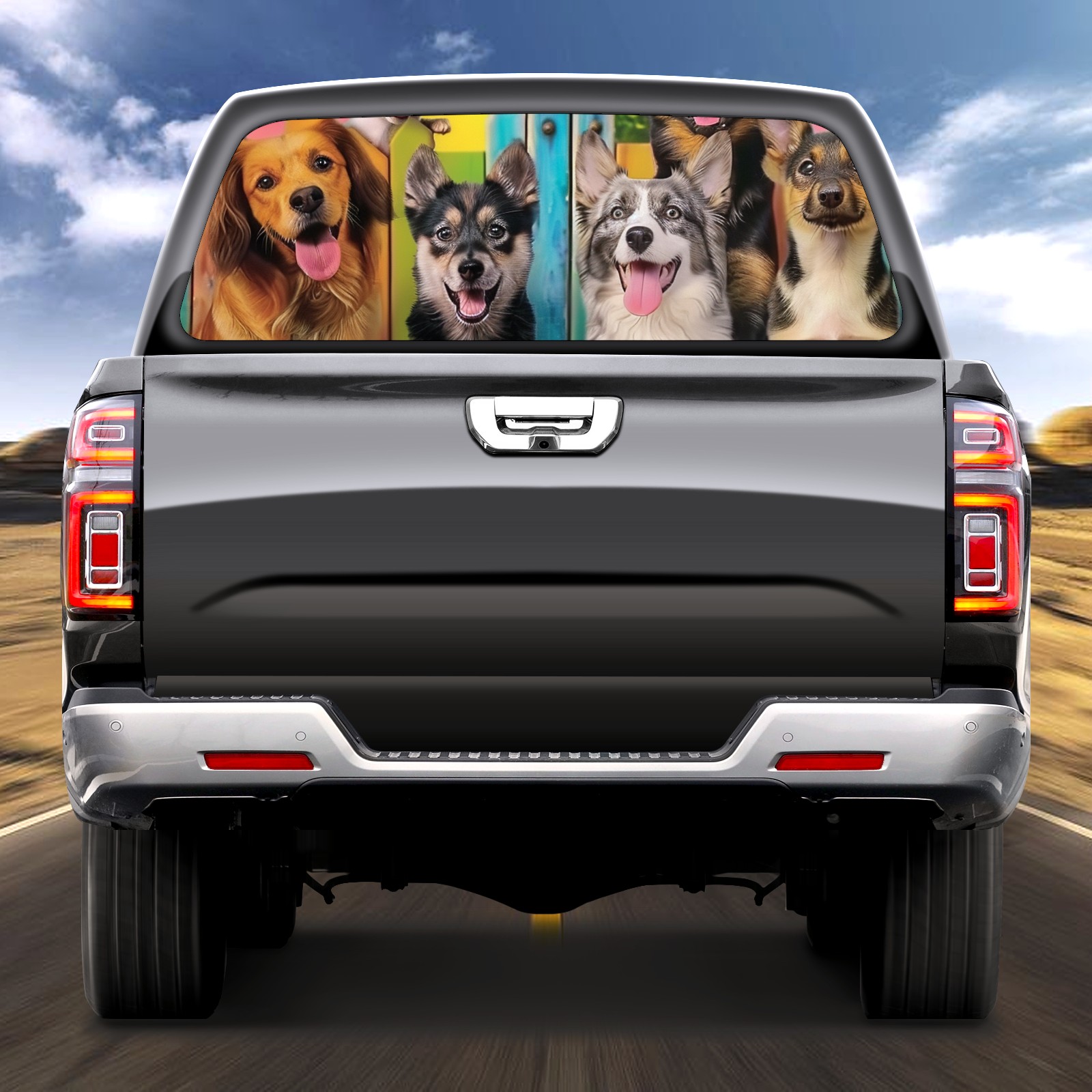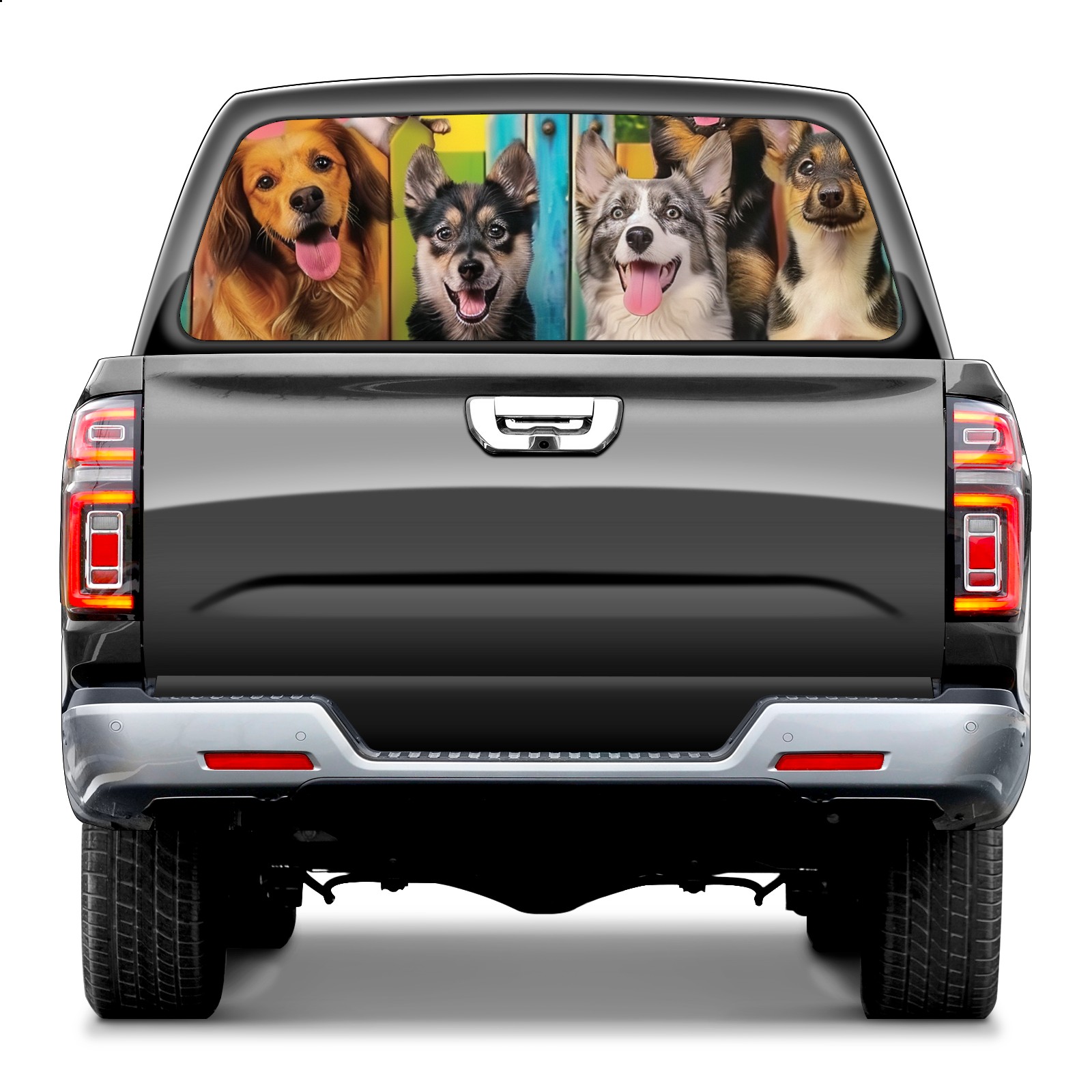 Truck Rear Window Graphics Decals Pickup Trucks Back Window Sticker Full Window Film Decal One Way Visual Waterproof Car Rear Tint Dog5