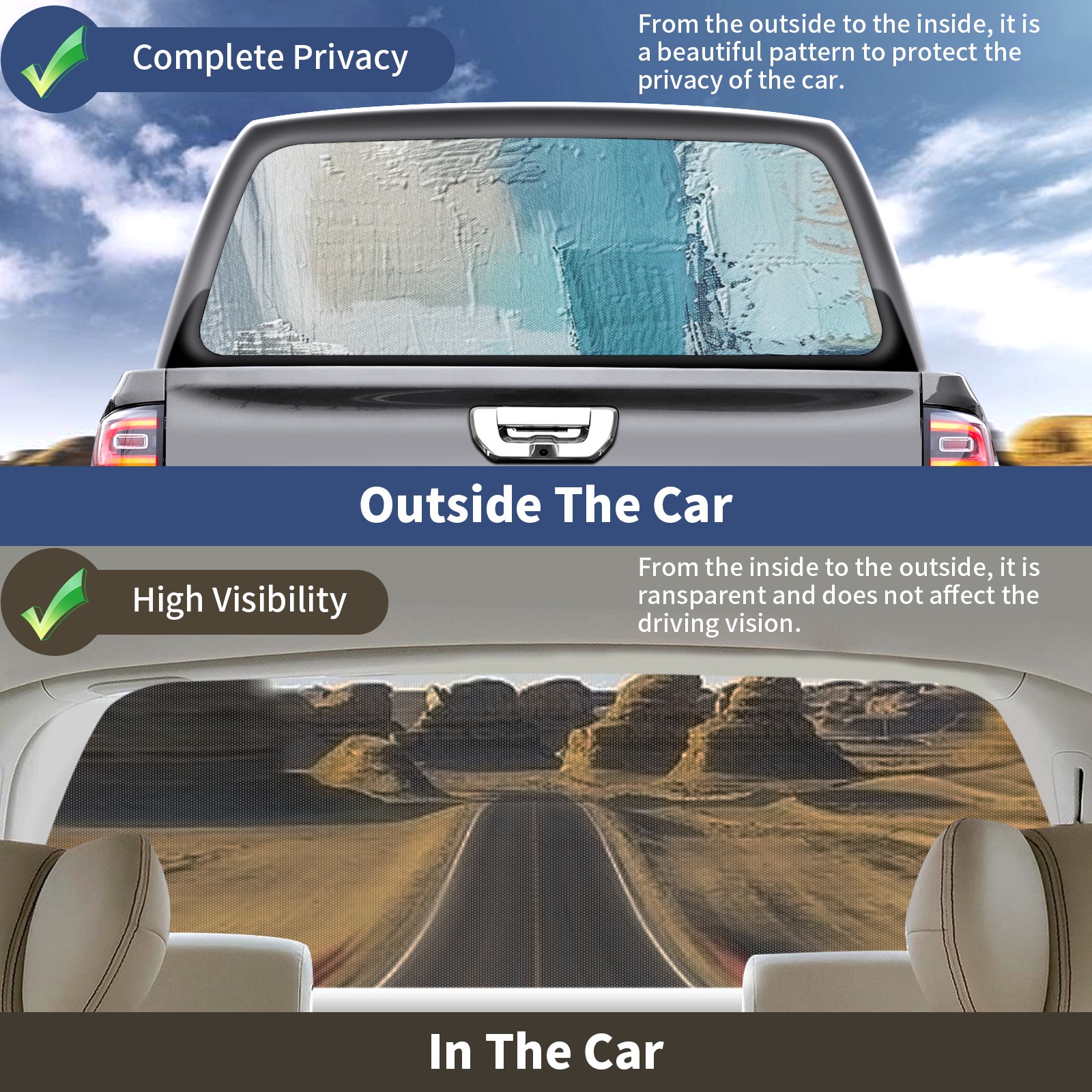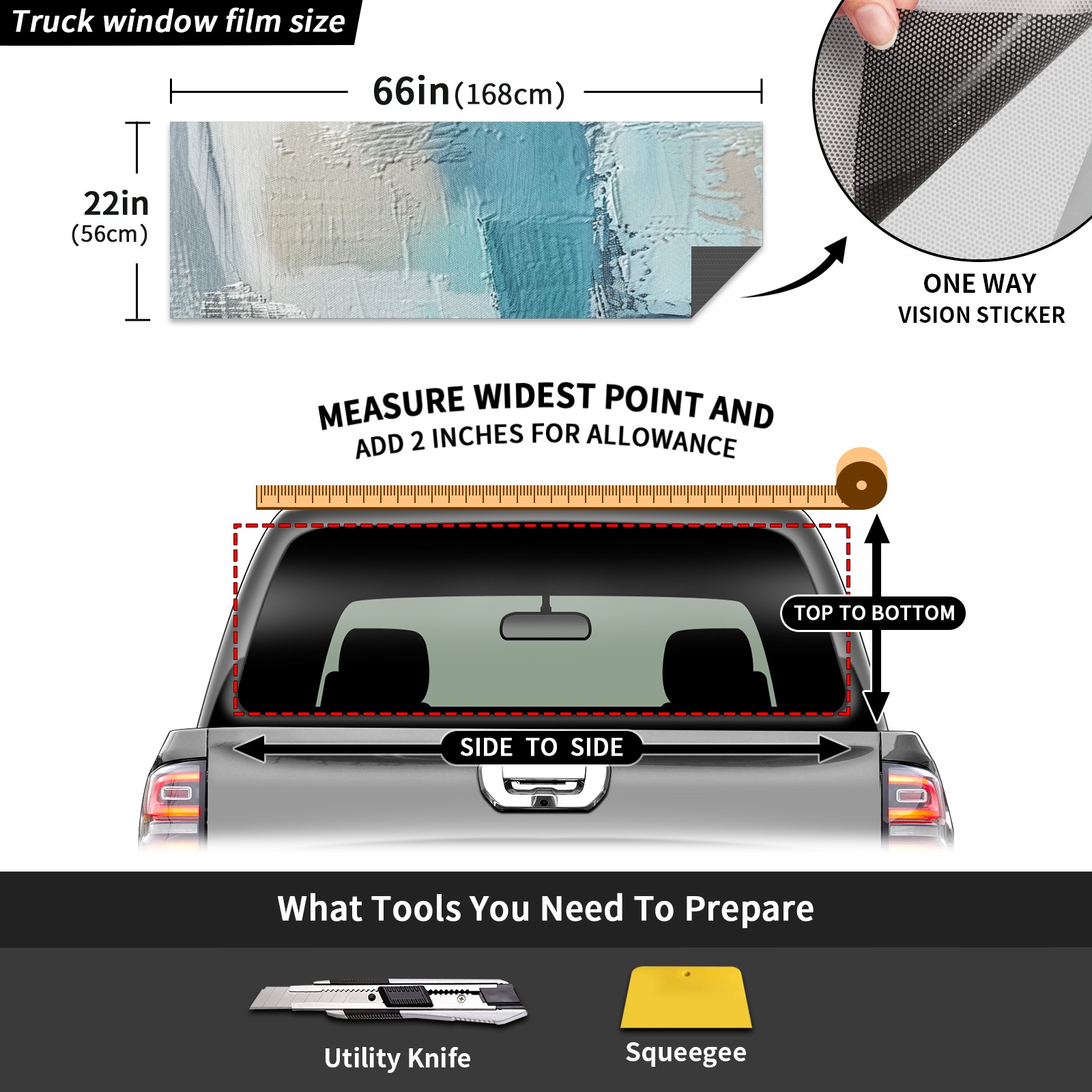 Truck Rear Window Graphics Decals Pickup Trucks Back Window Sticker Full Window Film Decal One Way Visual Waterproof Car Rear Tint Blue0