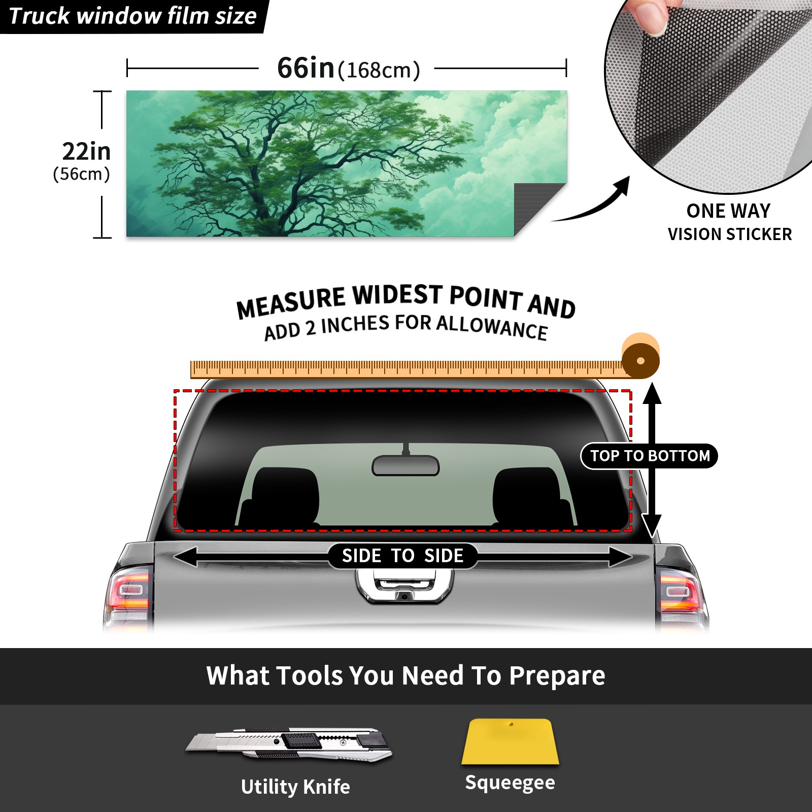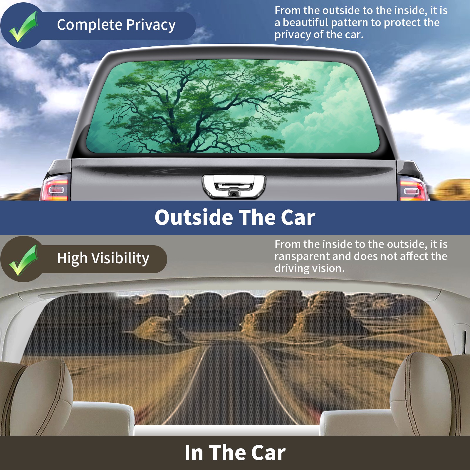 Truck Rear Window Graphics Decals Pickup Trucks Back Window Sticker Full Window Film Decal One Way Visual Waterproof Car Rear Tint Tree