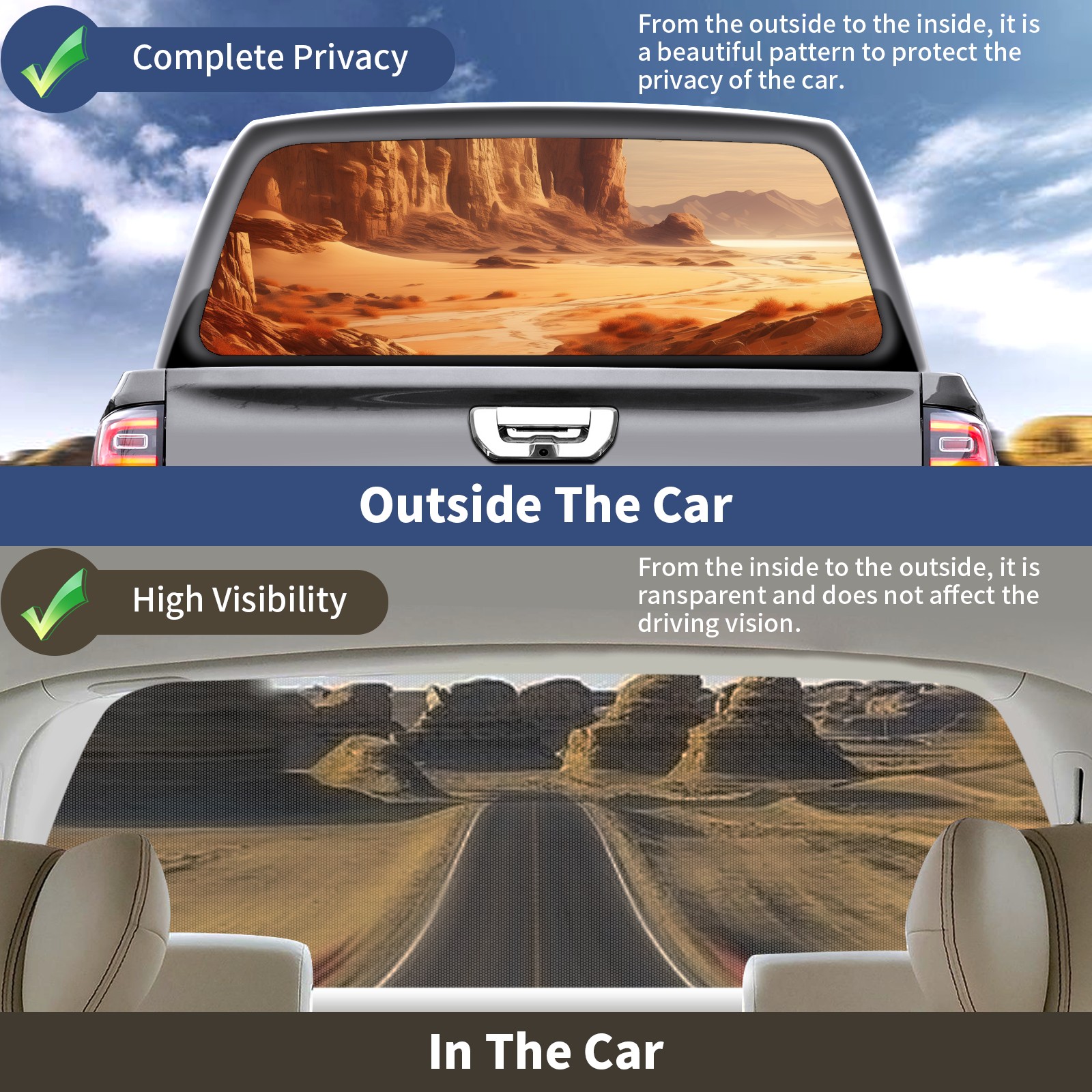 Truck Rear Window Graphics Decals Pickup Trucks Back Window Sticker Full Window Film Decal One Way Visual Waterproof Car Rear Tint Desert