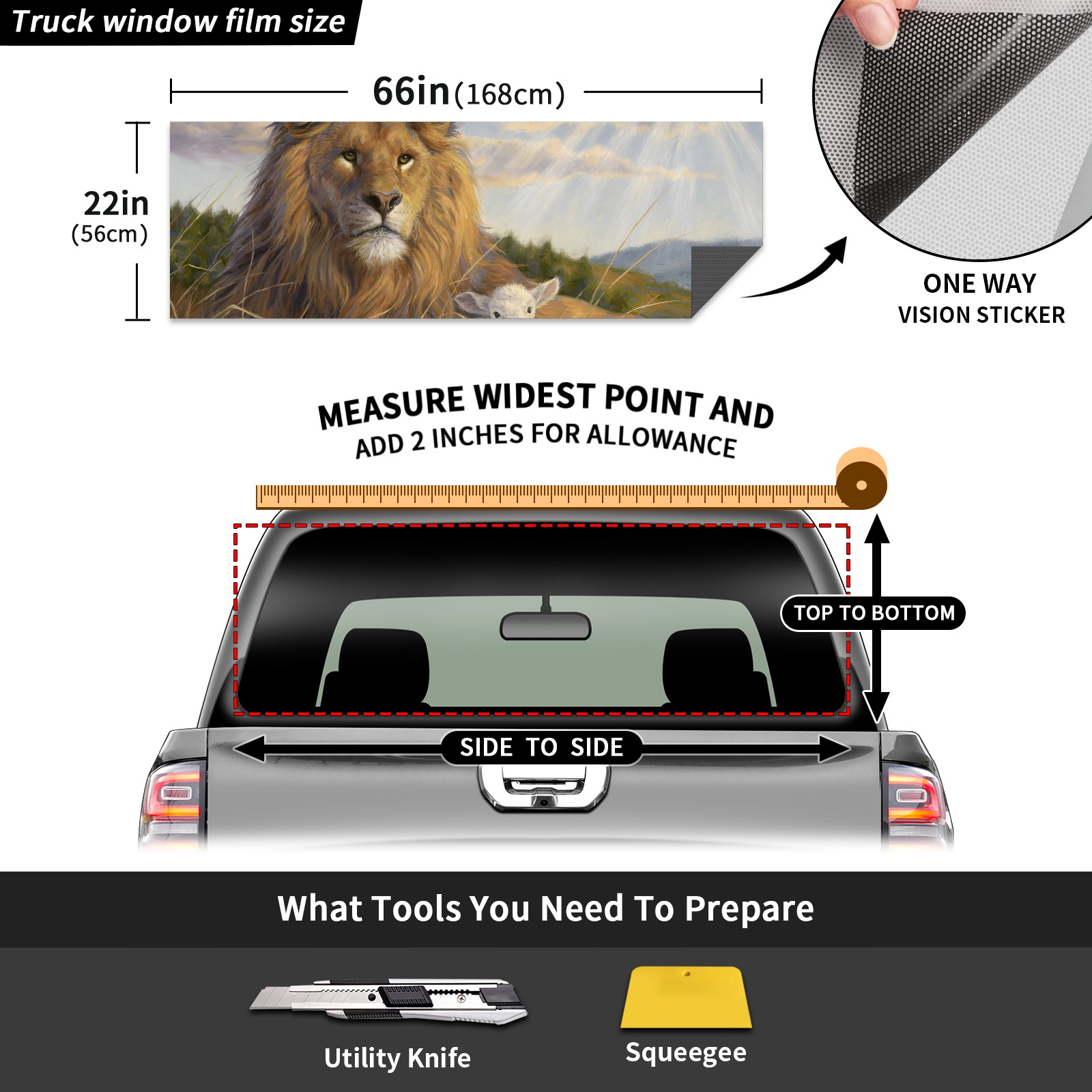 Truck Rear Window Graphics Decals Pickup Trucks Back Window Sticker Full Window Film Decal One Way Visual Waterproof Car Rear Tint Exported