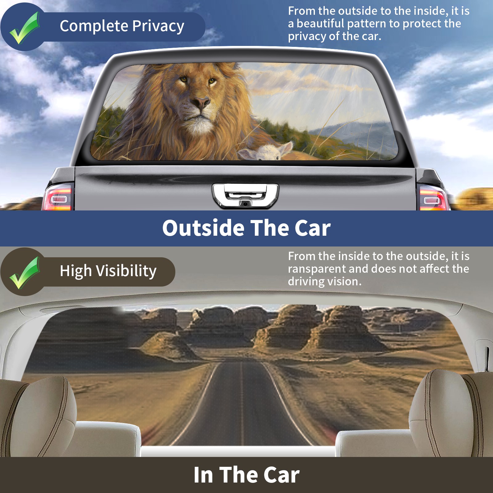 </b>Window film one-way light transmission Protect your privacy while allowing you to enjoy the scenery outside your window!</b> <br> </b>●Decals Instructions Usage--Teach You To Use Quickly</b> <br> 1.Clean the window galss thoroughly <br> 2.Use a Squeegee or other card to scrape off the remaining water and bumps(don't use too much force) <br> 3.Remove the film's back cover .Use a knife to cut out a suitable contour and wipe off the remaining water(you can also use a hair dryer to blow dry) <br> 4.Find a suitable location and stick a sticker <br> </b>●Unique Design</b> <br> ZXIVGOQFR Back window stickers ‘s smart looking and unique cute design makes your vehicle special under sunshine. Makes your car easy to identify, perfect for finding your car in crowded parking lots and garages.funny visor reflects personality and attitude. <br> </b>●Perfect Gift for all Drivers<br></b> We create all the gifts and accessories you only need to choose what you like. Get full tailgate wraps, rear window decals, and everything you need to make your pickup truck look awesome. <br> </b> Decorate Your Pickup Truck With Touches Today!</b>