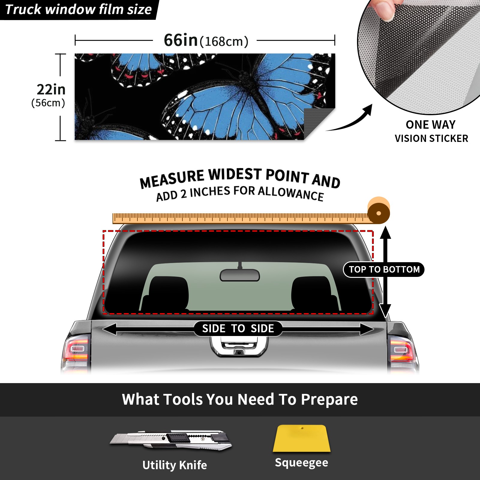 Truck Rear Window Graphics Decals Pickup Trucks Back Window Sticker Full Window Film Decal One Way Visual Waterproof Car Rear Tint Butterfly