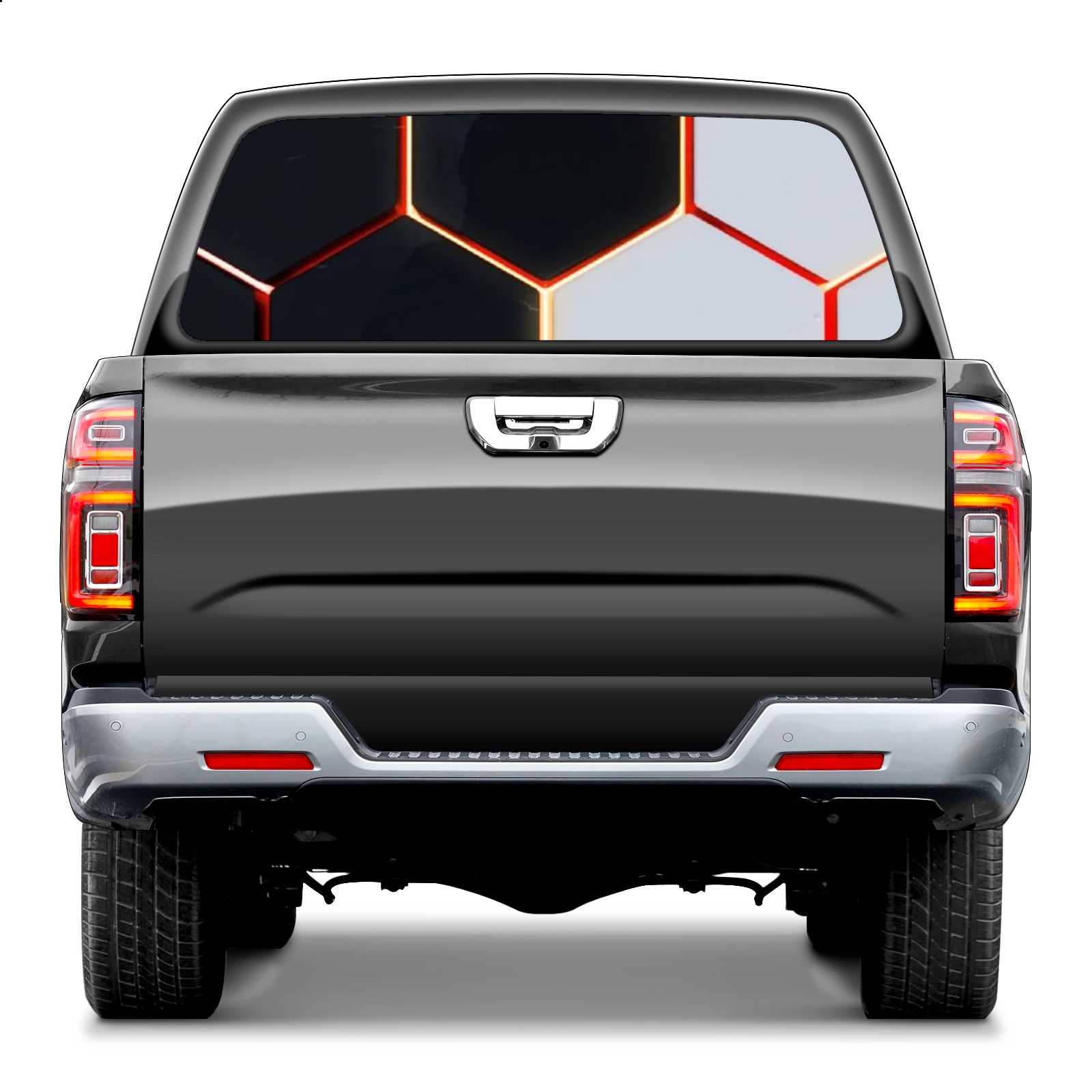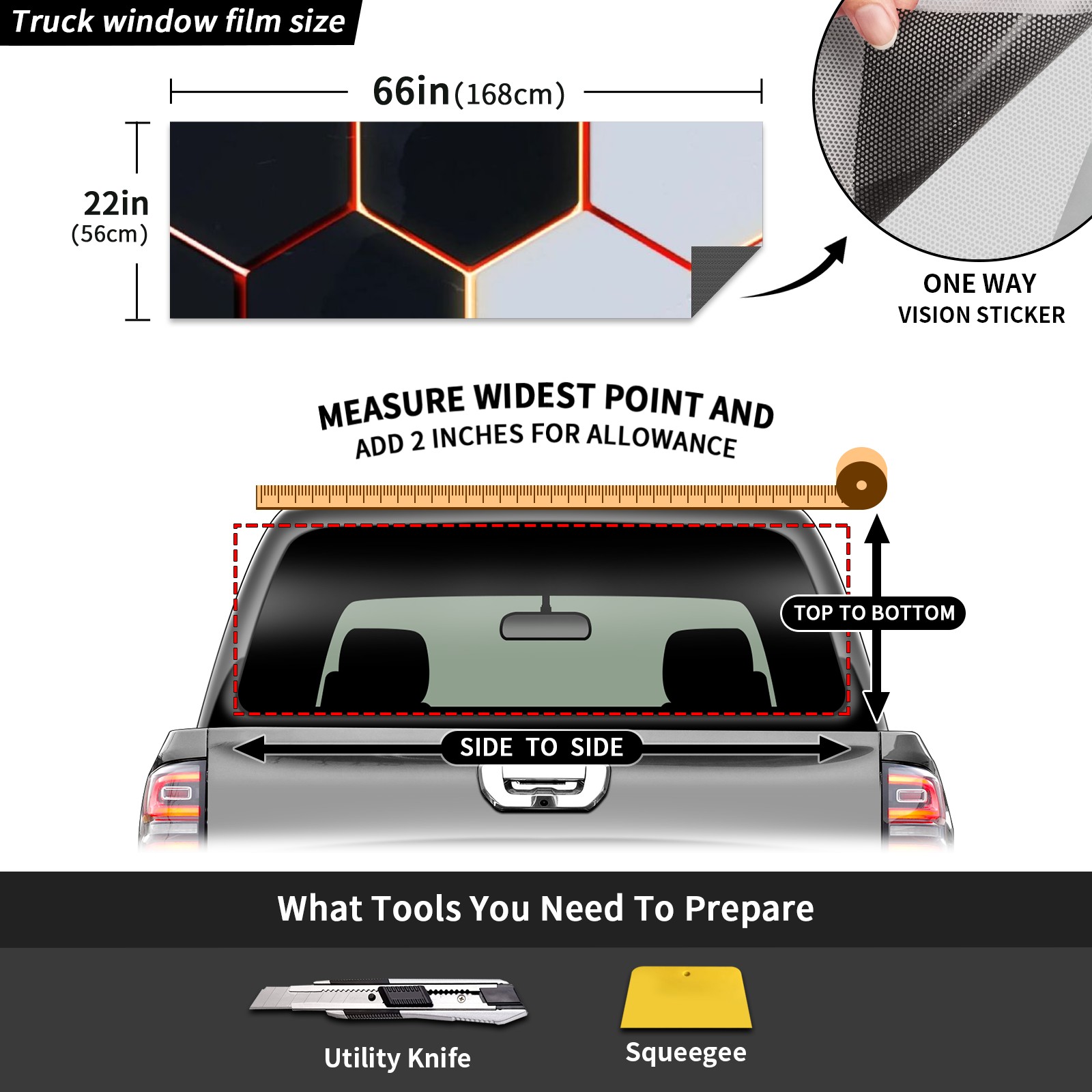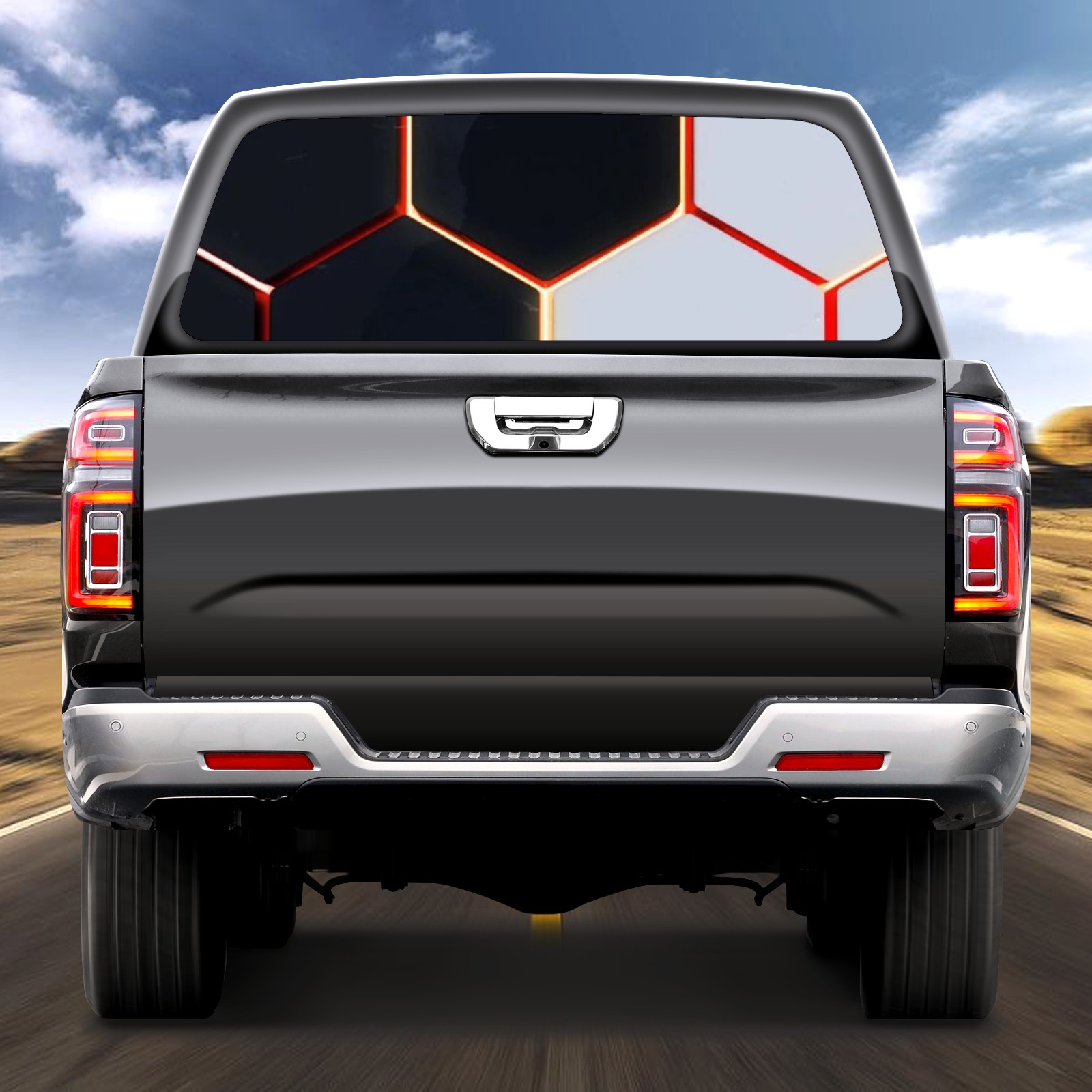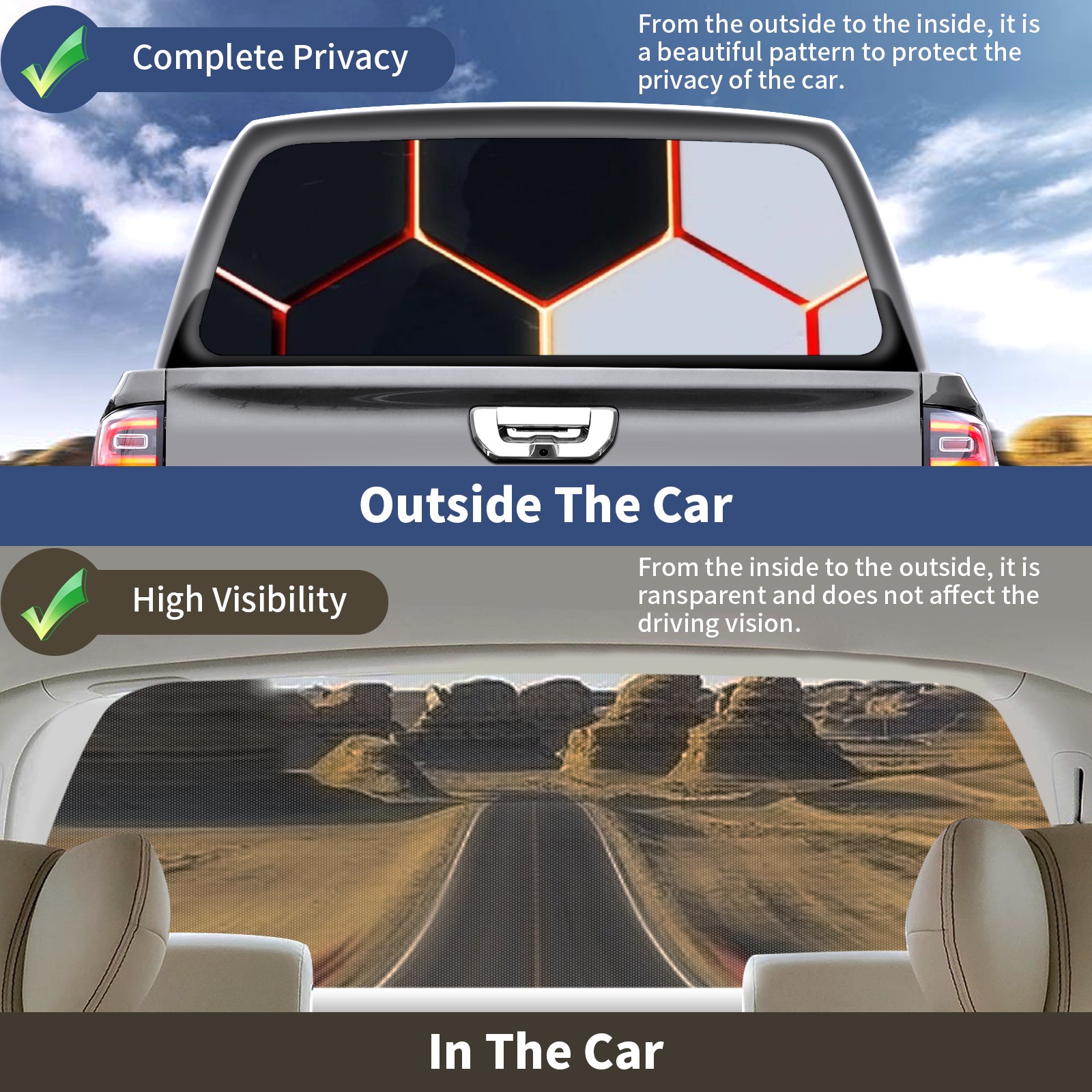 Truck Rear Window Graphics Decals Pickup Trucks Back Window Sticker Full Window Film Decal One Way Visual Waterproof Car Rear Tint Hexagon