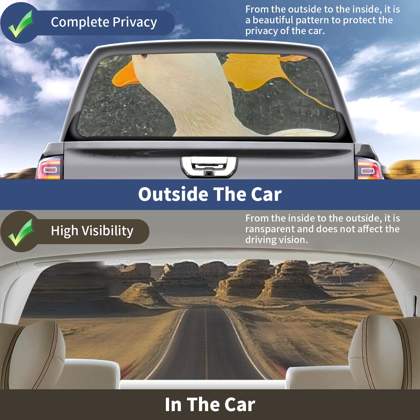 Truck Rear Window Graphics Decals Pickup Trucks Back Window Sticker Full Window Film Decal One Way Visual Waterproof Car Rear Tint White Duck