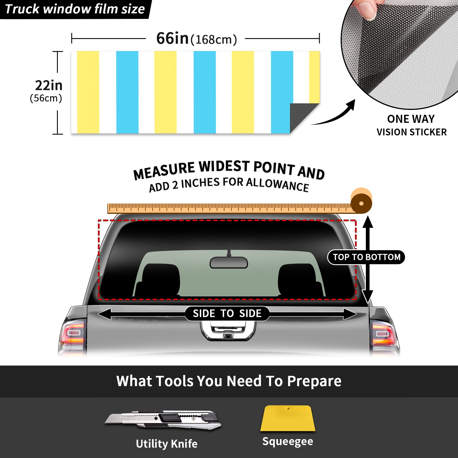 Truck Rear Window Graphics Decals Pickup Trucks Back Window Sticker Full Window Film Decal One Way Visual Waterproof Car Rear Tint Stripe
