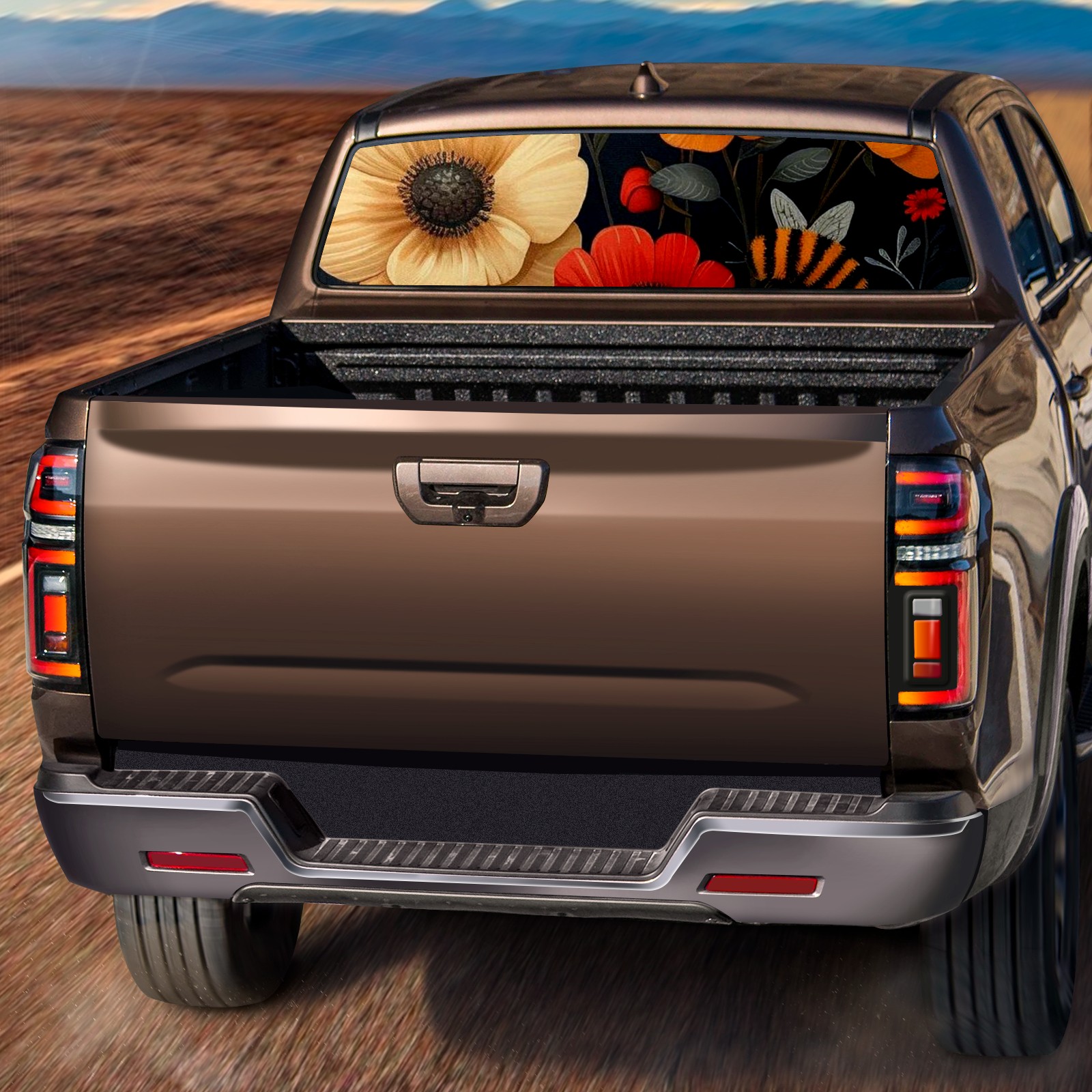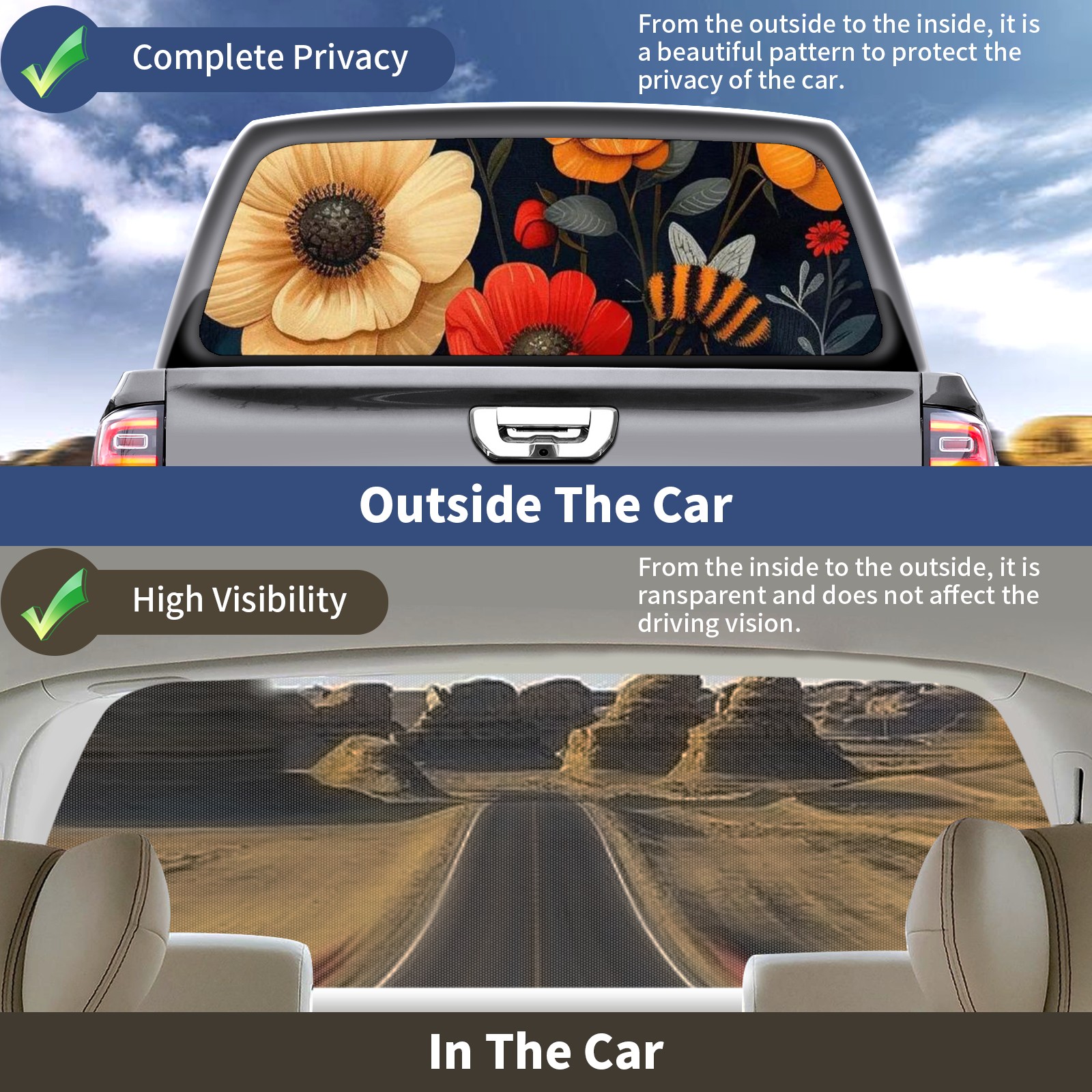 Truck Rear Window Graphics Decals Pickup Trucks Back Window Sticker Full Window Film Decal One Way Visual Waterproof Car Rear Tint Bee Flower