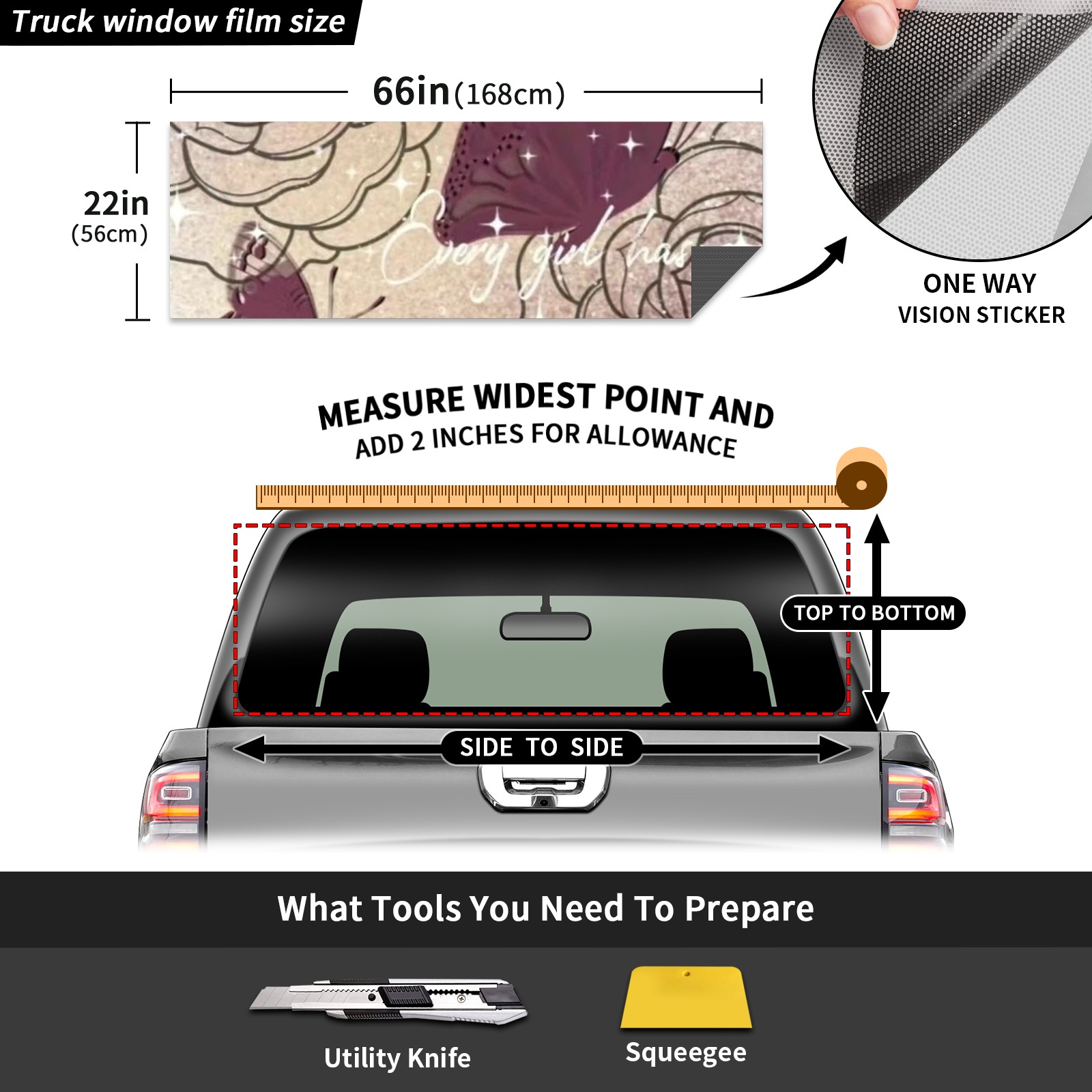 Truck Rear Window Graphics Decals Pickup Trucks Back Window Sticker Full Window Film Decal One Way Visual Waterproof Car Rear Tint Butterfly Love