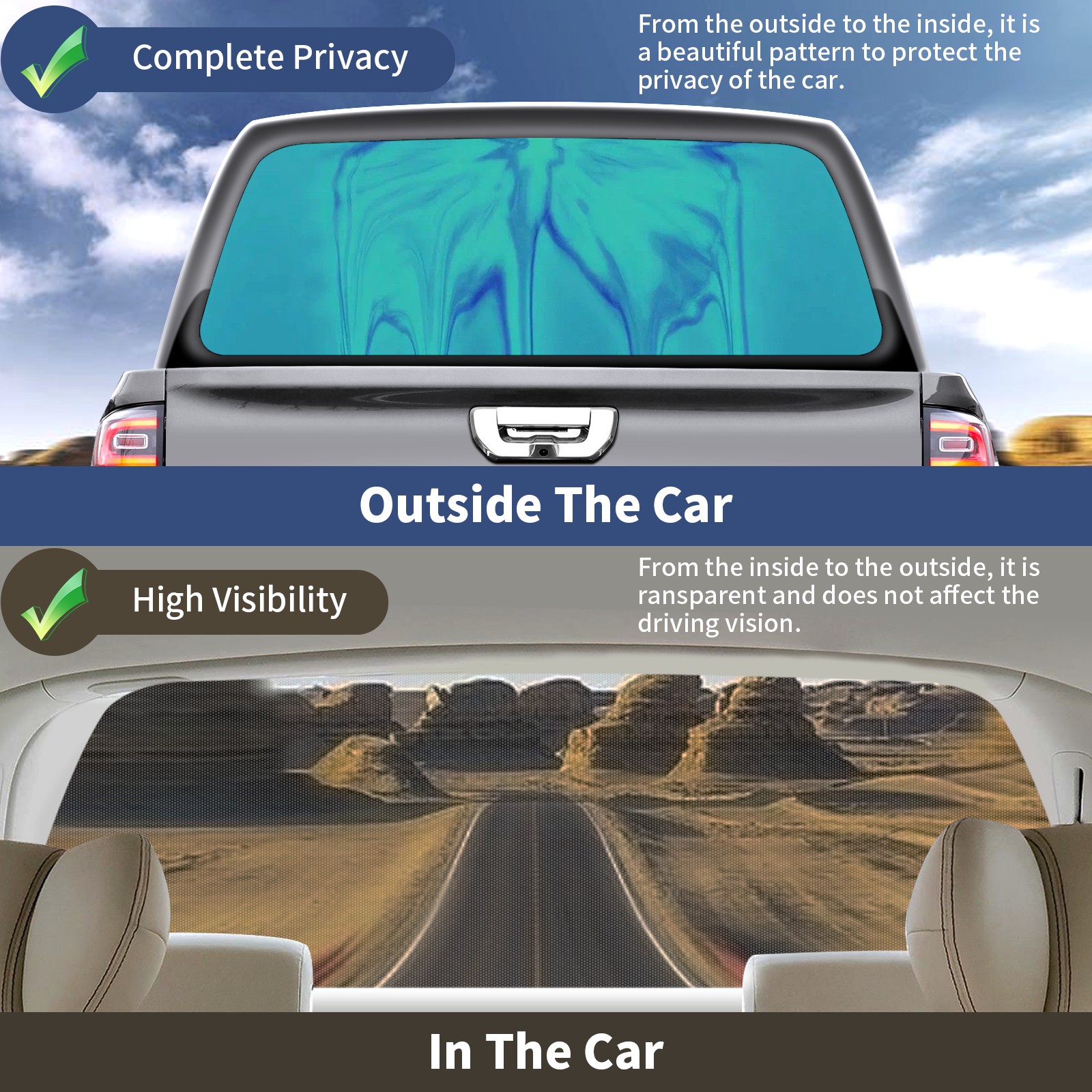 • </b>Window film one-way light transmission Protect your privacy while allowing you to enjoy the scenery outside your window!</b> <br> </b>●Decals Instructions Usage--Teach You To Use Quickly</b> <br> 1.Clean the window galss thoroughly <br> 2.Use a Squeegee or other card to scrape off the remaining water and bumps(don't use too much force) <br> 3.Remove the film's back cover .Use a knife to cut out a suitable contour and wipe off the remaining water(you can also use a hair dryer to blow dry) <br> 4.Find a suitable location and stick a sticker <br> </b>●Unique Design</b> <br> ZXIVGOQFR Back window stickers ‘s smart looking and unique cute design makes your vehicle special under sunshine. Makes your car easy to identify, perfect for finding your car in crowded parking lots and garages.funny visor reflects personality and attitude. <br> </b>●Perfect Gift for all Drivers<br></b> We create all the gifts and accessories you only need to choose what you like. Get full tailgate wraps, rear window decals, and everything you need to make your pickup truck look awesome. <br> </b> Decorate Your Pickup Truck With Touches Today!</b>