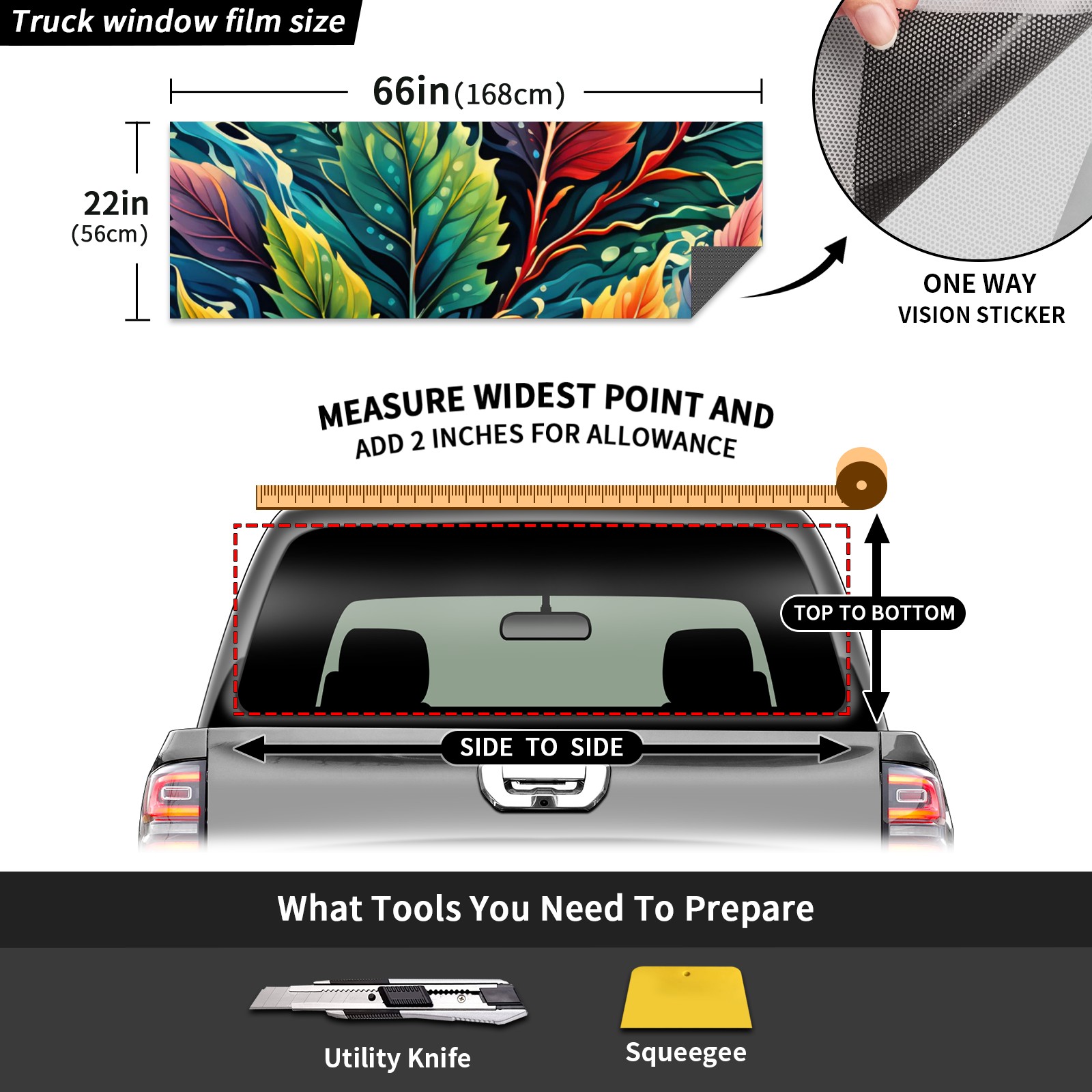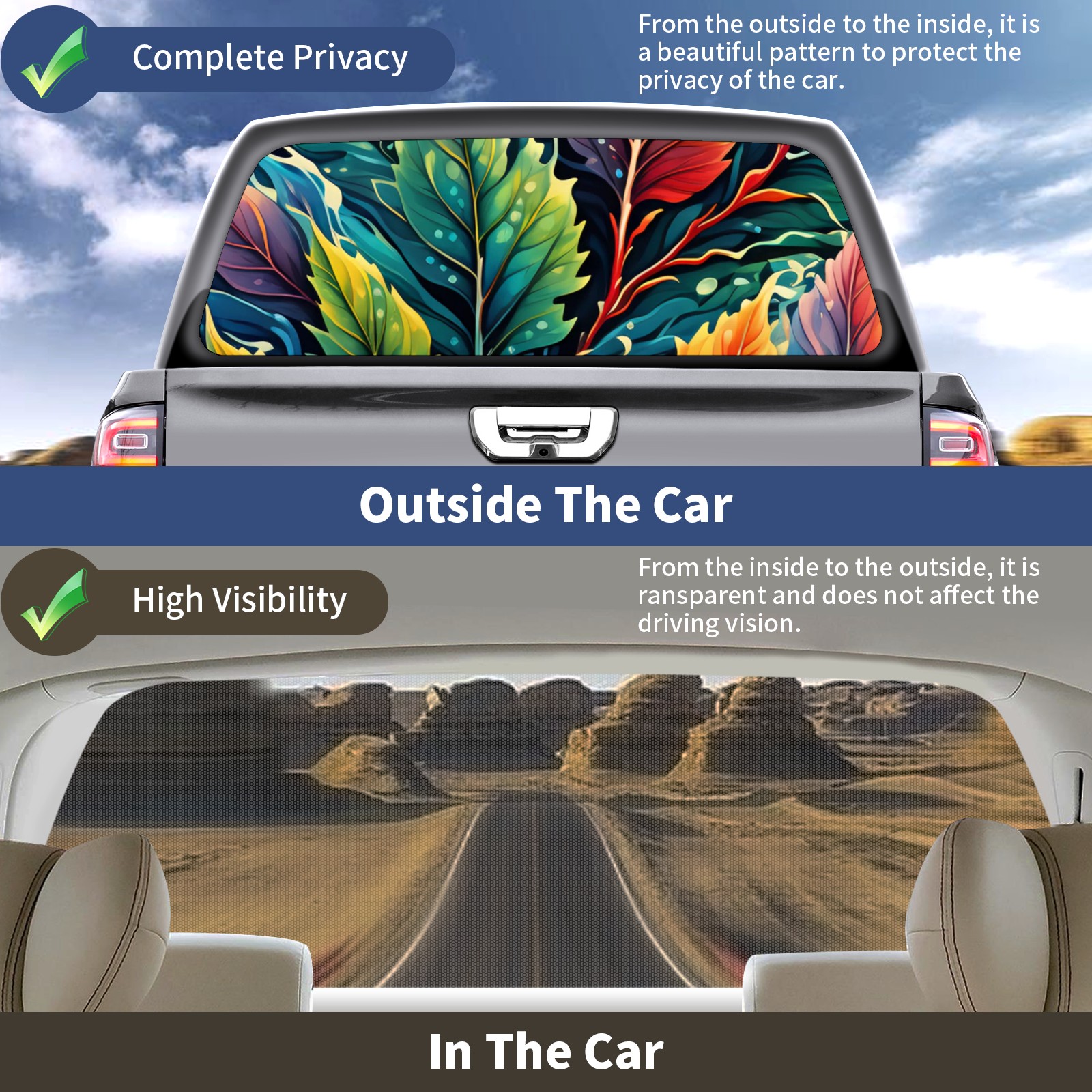 Truck Rear Window Graphics Decals Pickup Trucks Back Window Sticker Full Window Film Decal One Way Visual Waterproof Car Rear Tint Colored Leaves