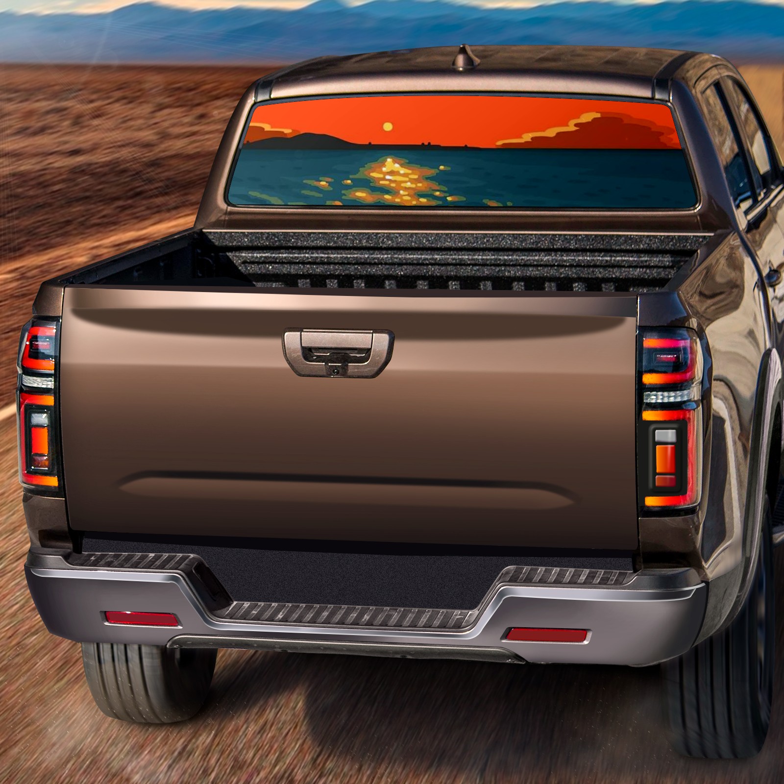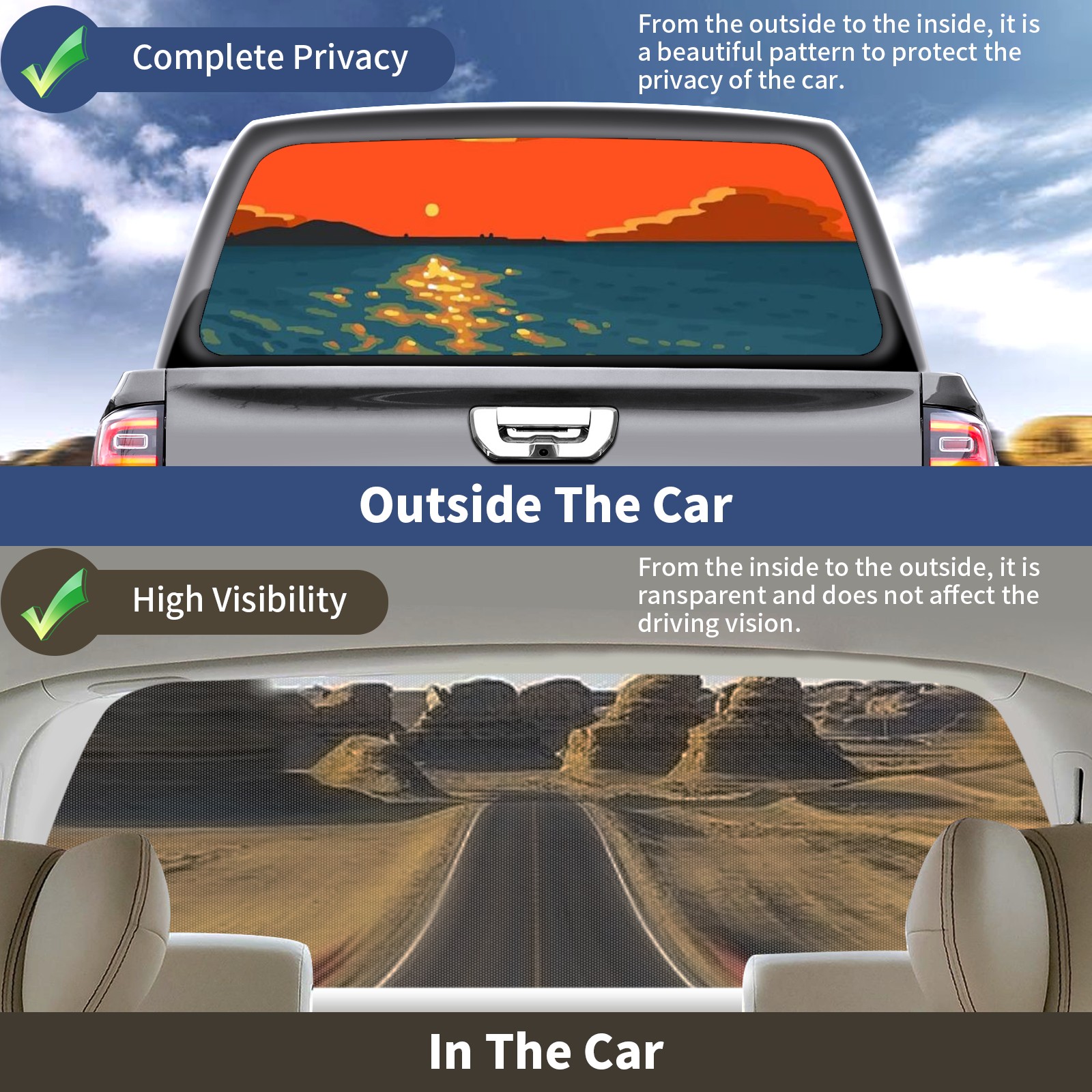 Truck Rear Window Graphics Decals Pickup Trucks Back Window Sticker Full Window Film Decal One Way Visual Waterproof Car Rear Tint Beach Sunset