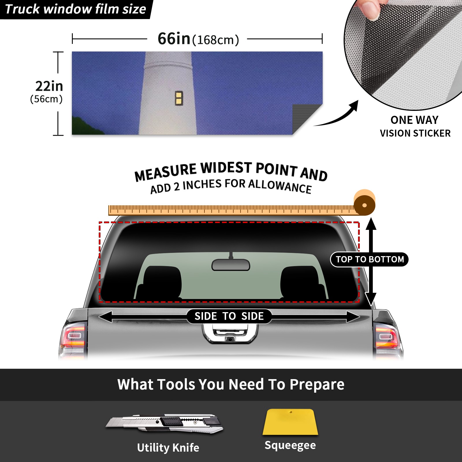 Truck Rear Window Graphics Decals Pickup Trucks Back Window Sticker Full Window Film Decal One Way Visual Waterproof Car Rear Tint Lighthouse Girl