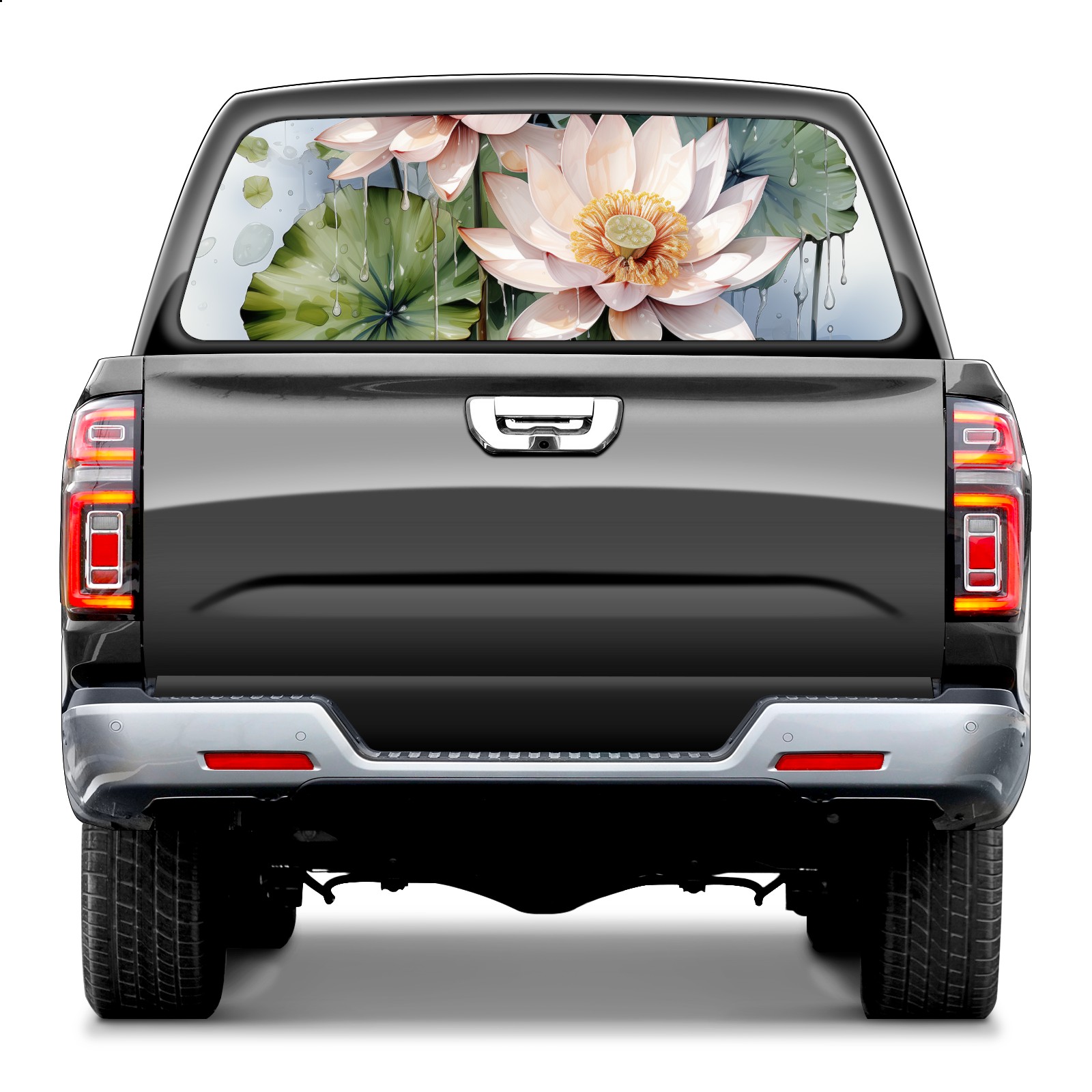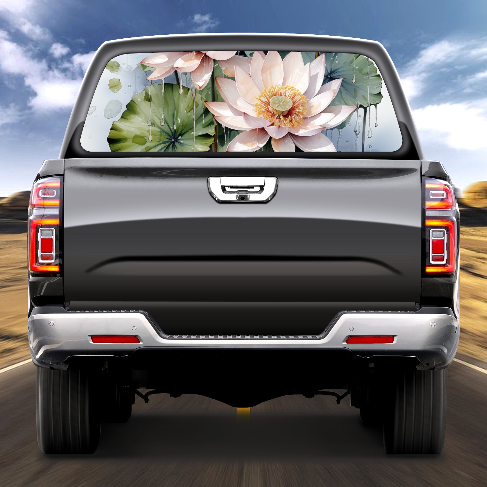 Truck Rear Window Graphics Decals Pickup Trucks Back Window Sticker Full Window Film Decal One Way Visual Waterproof Car Rear Tint Lotus Flower