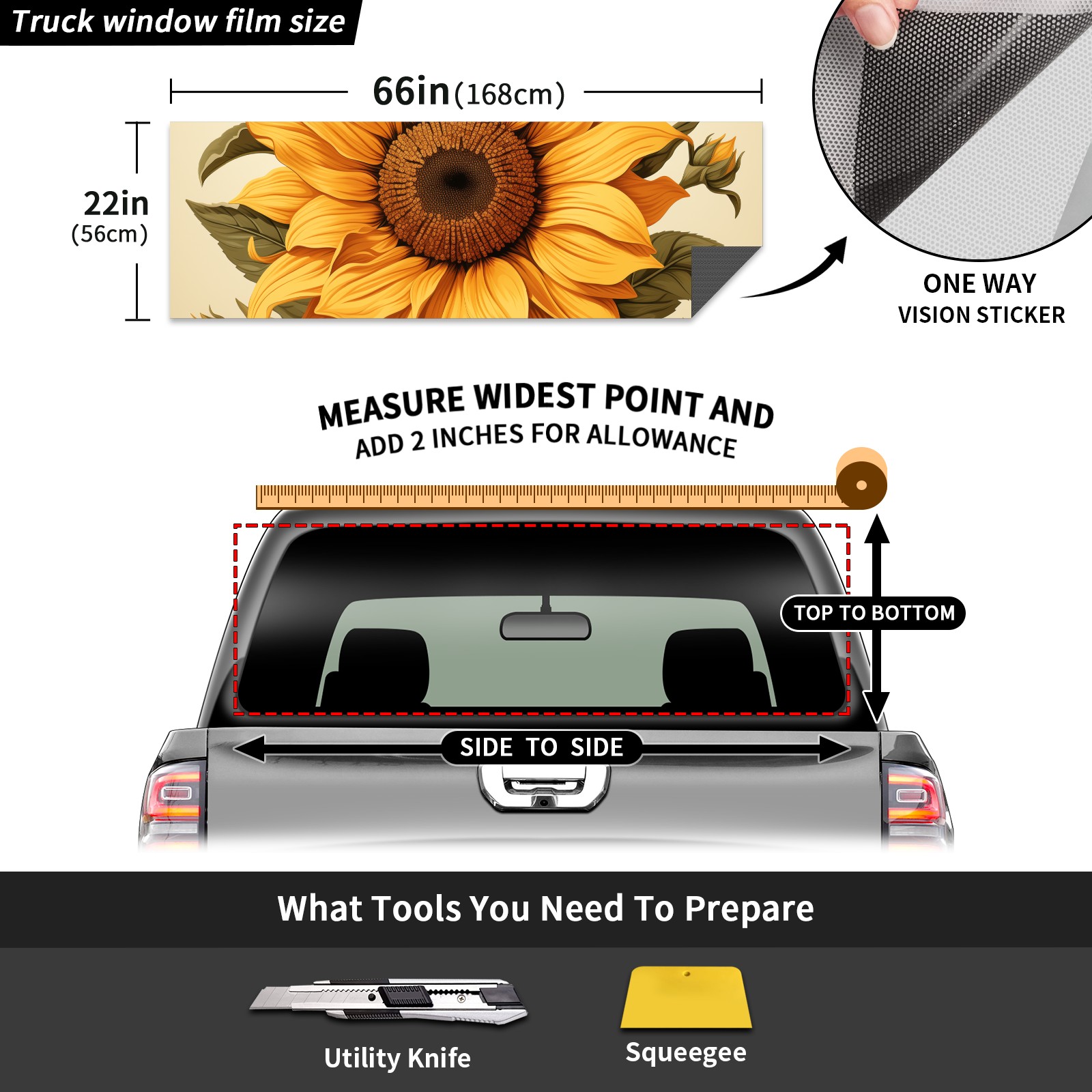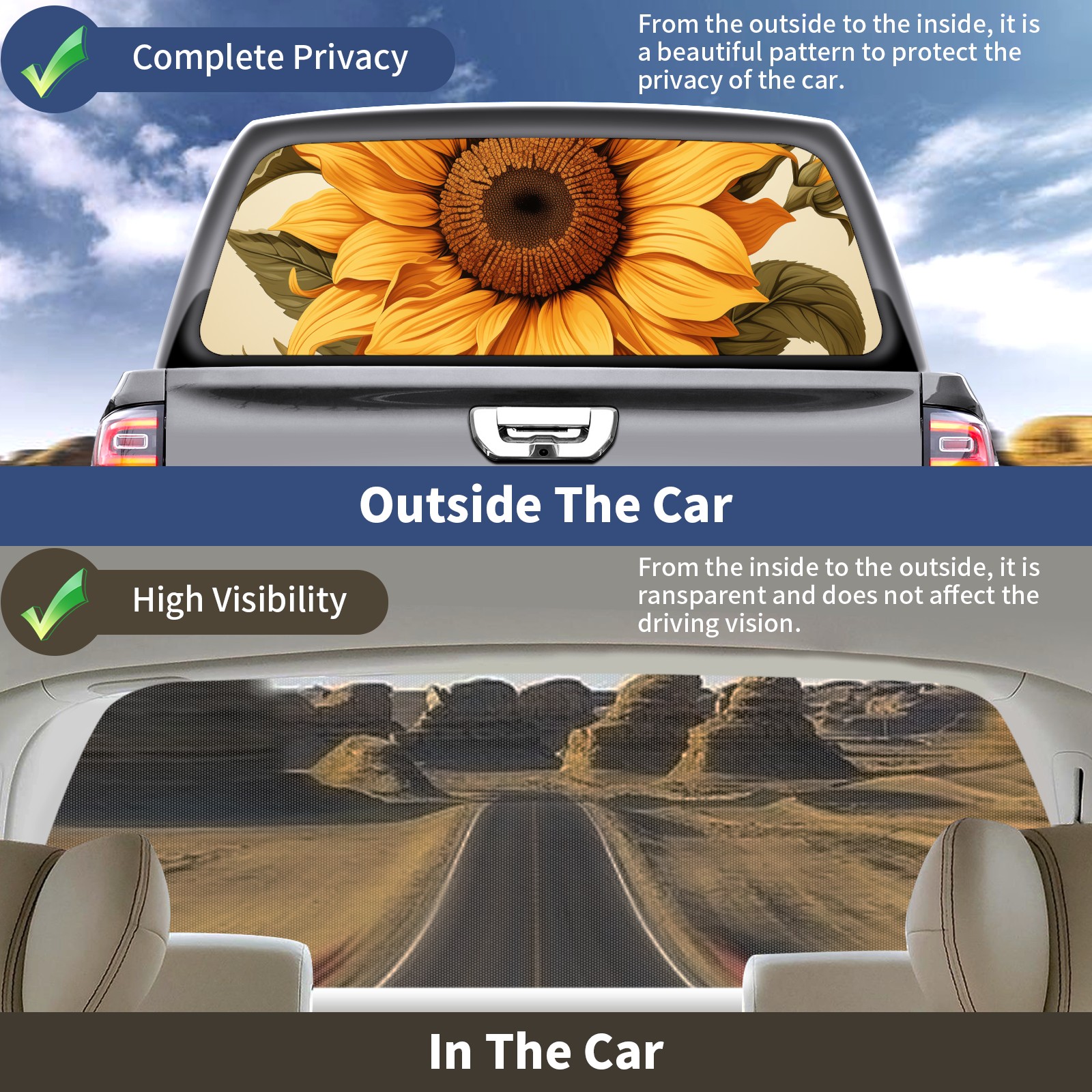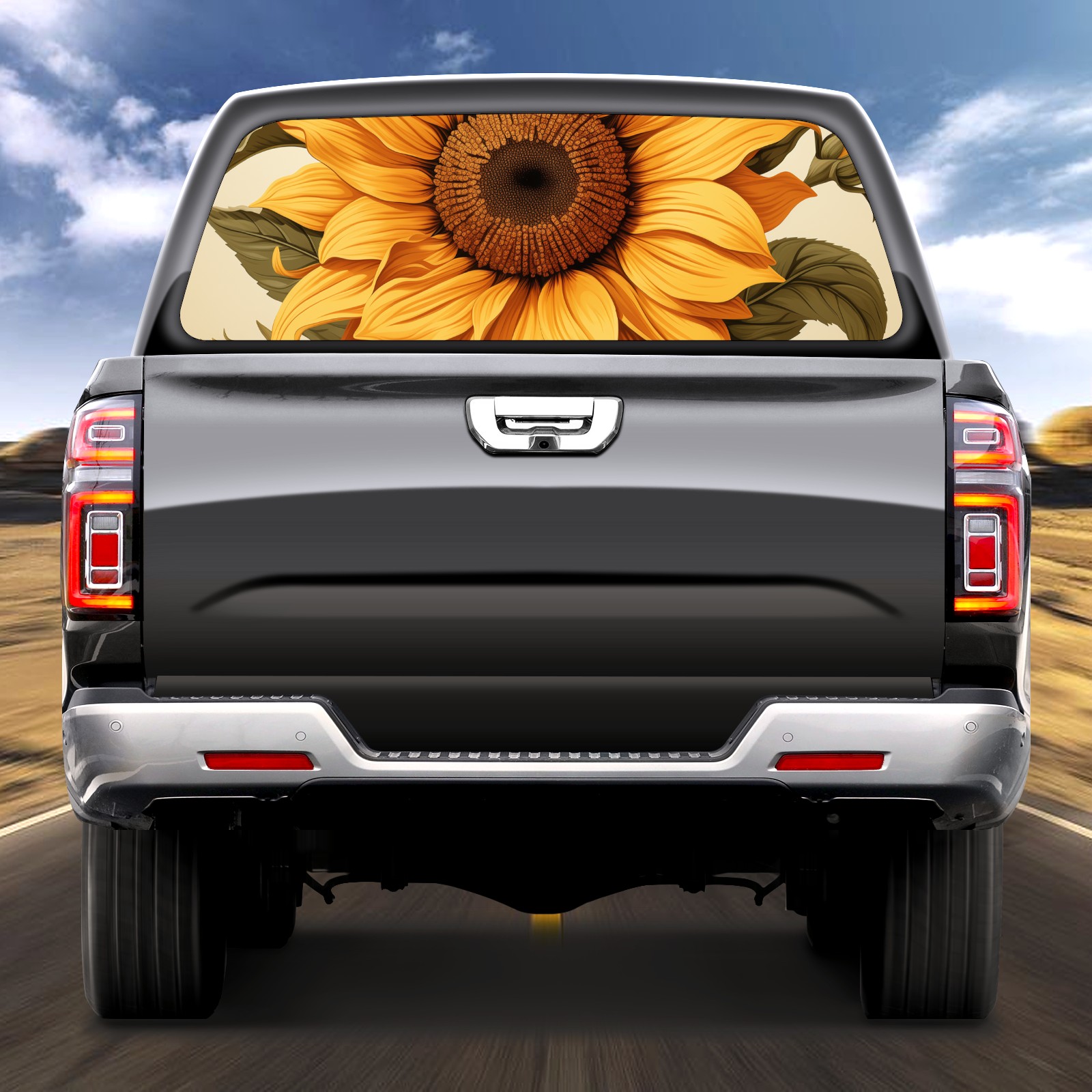 Truck Rear Window Graphics Decals Pickup Trucks Back Window Sticker Full Window Film Decal One Way Visual Waterproof Car Rear Tint Sunflower