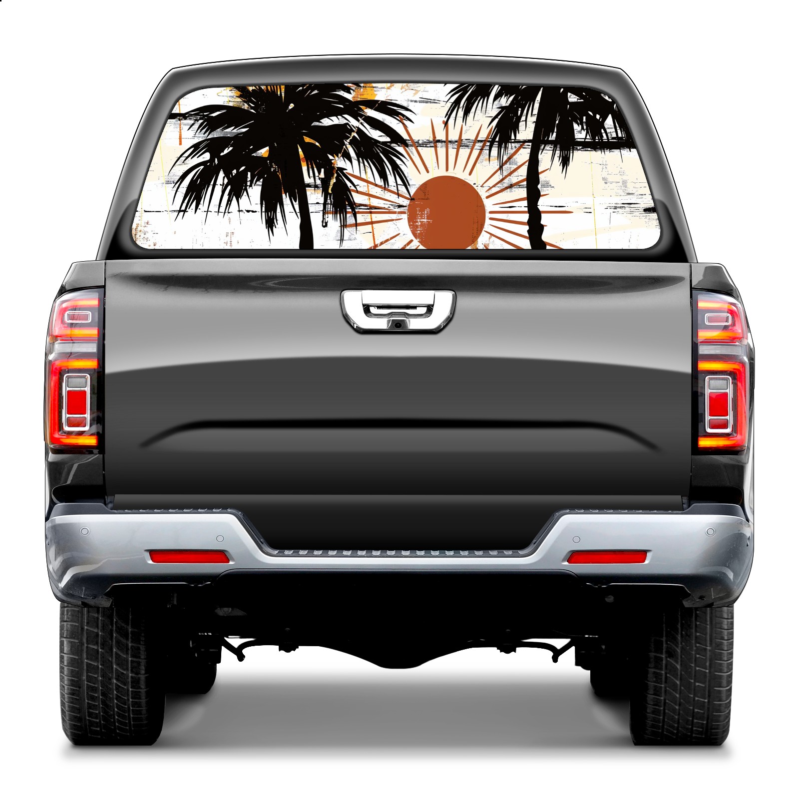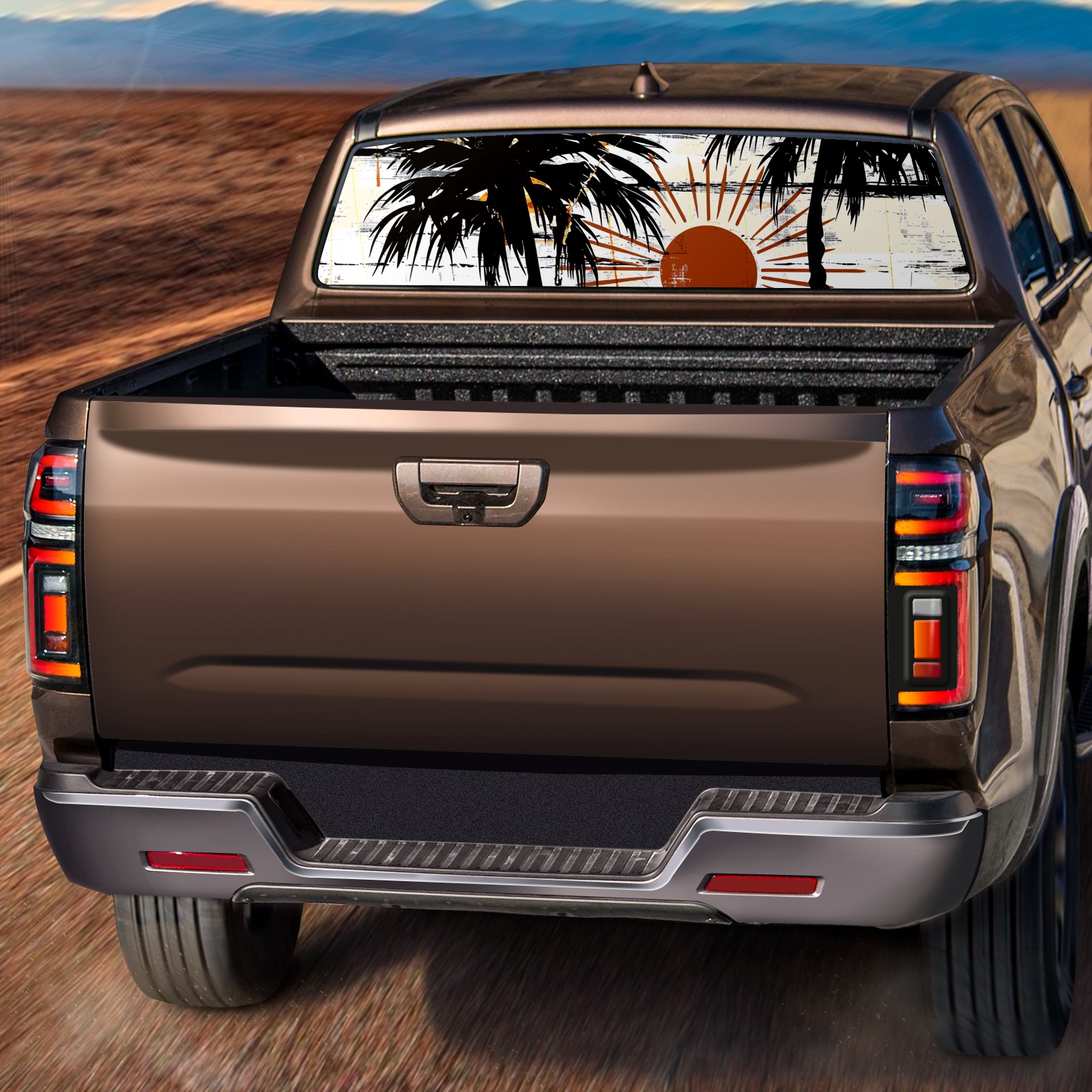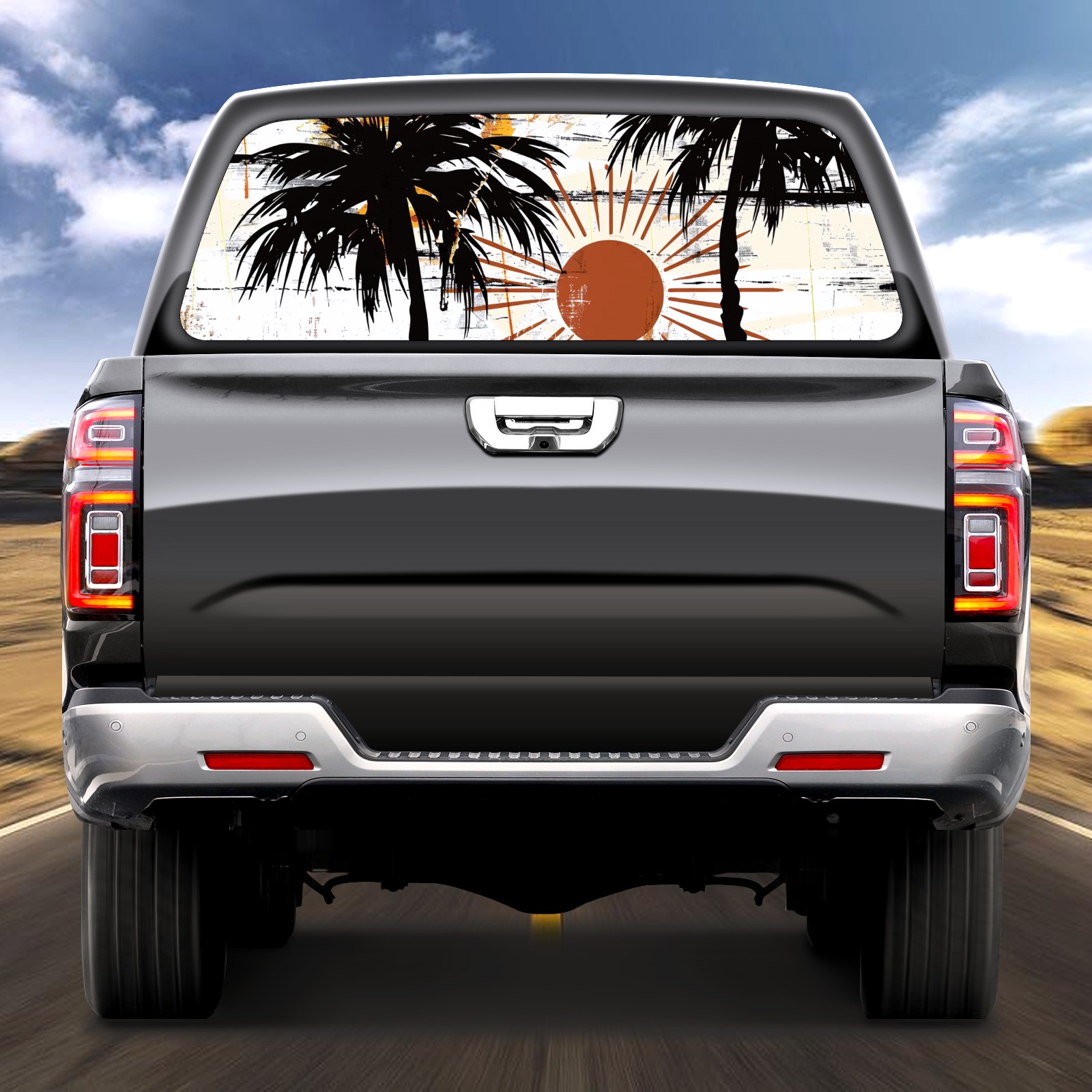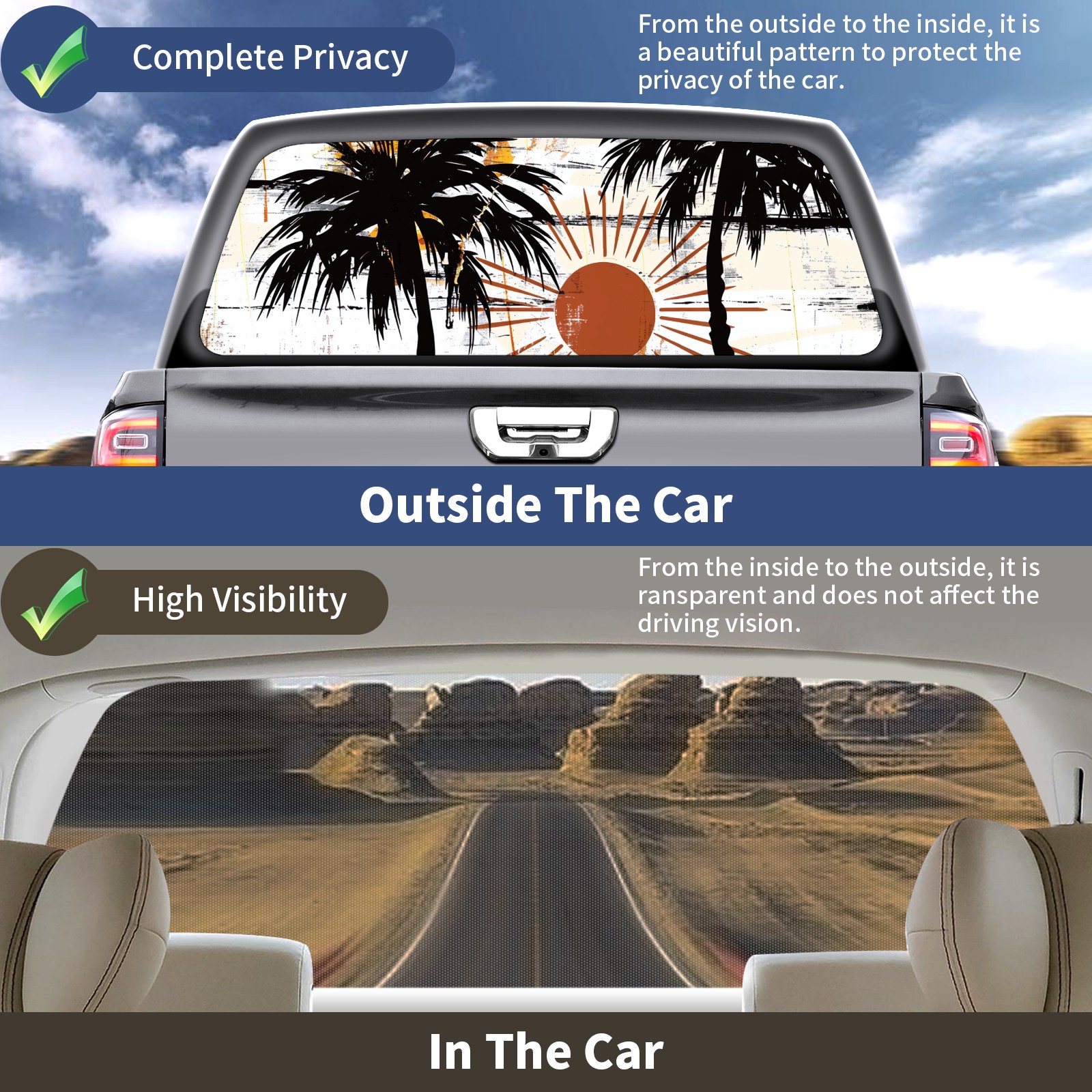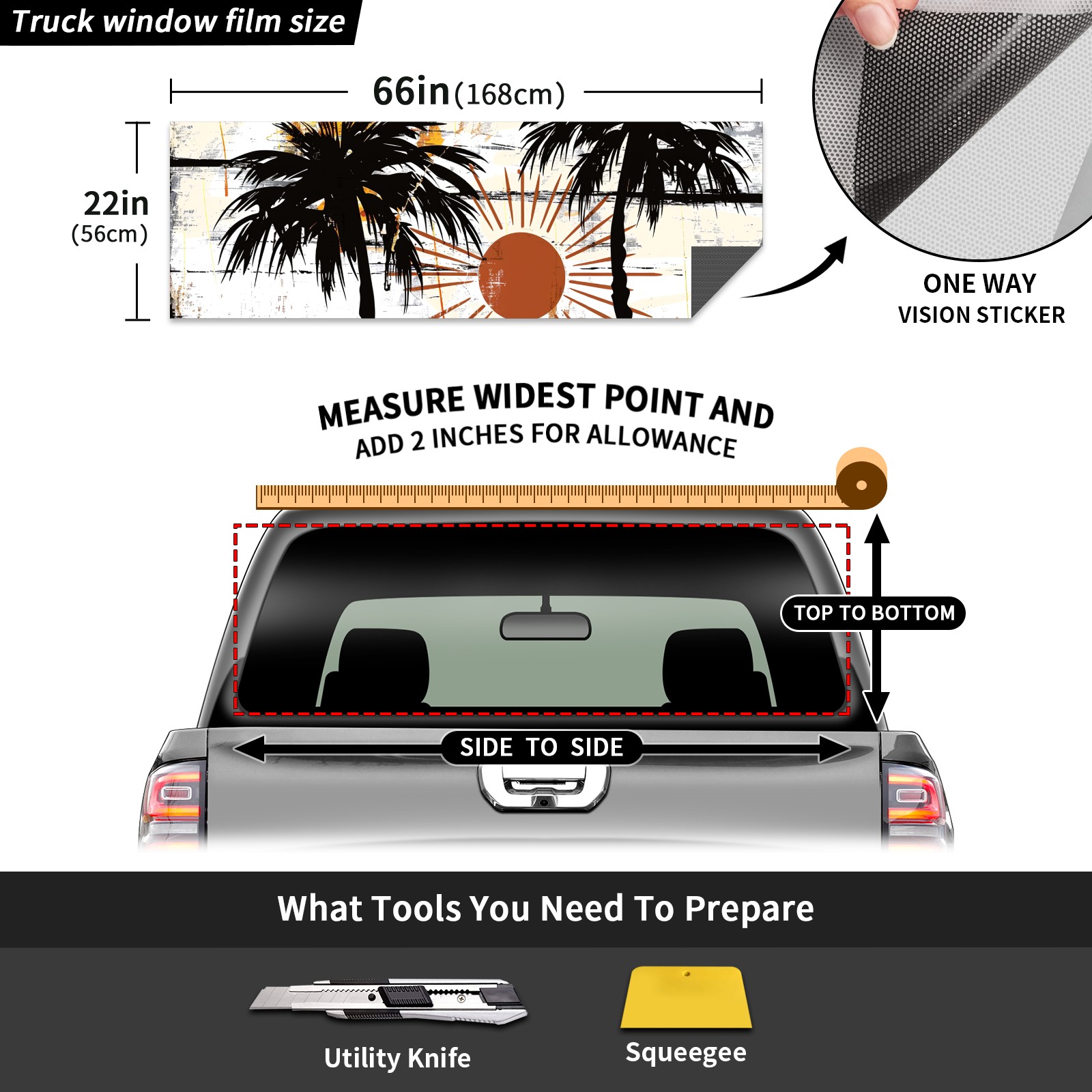 Truck Rear Window Graphics Decals Pickup Trucks Back Window Sticker Full Window Film Decal One Way Visual Waterproof Car Rear Tint Coconut Trees