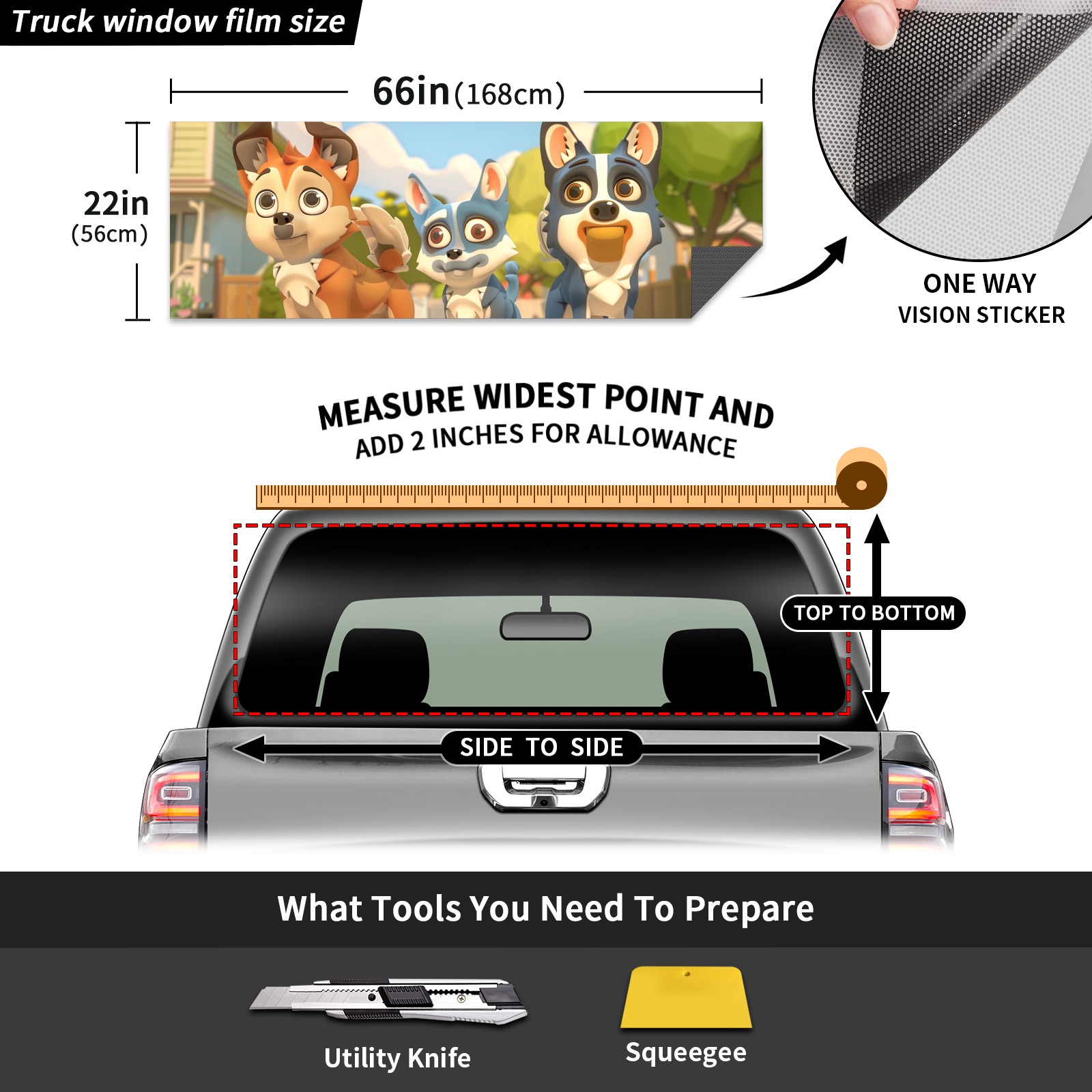 Truck Rear Window Graphics Decals Pickup Trucks Back Window Sticker Full Window Film Decal One Way Visual Waterproof Car Rear Tint Husky