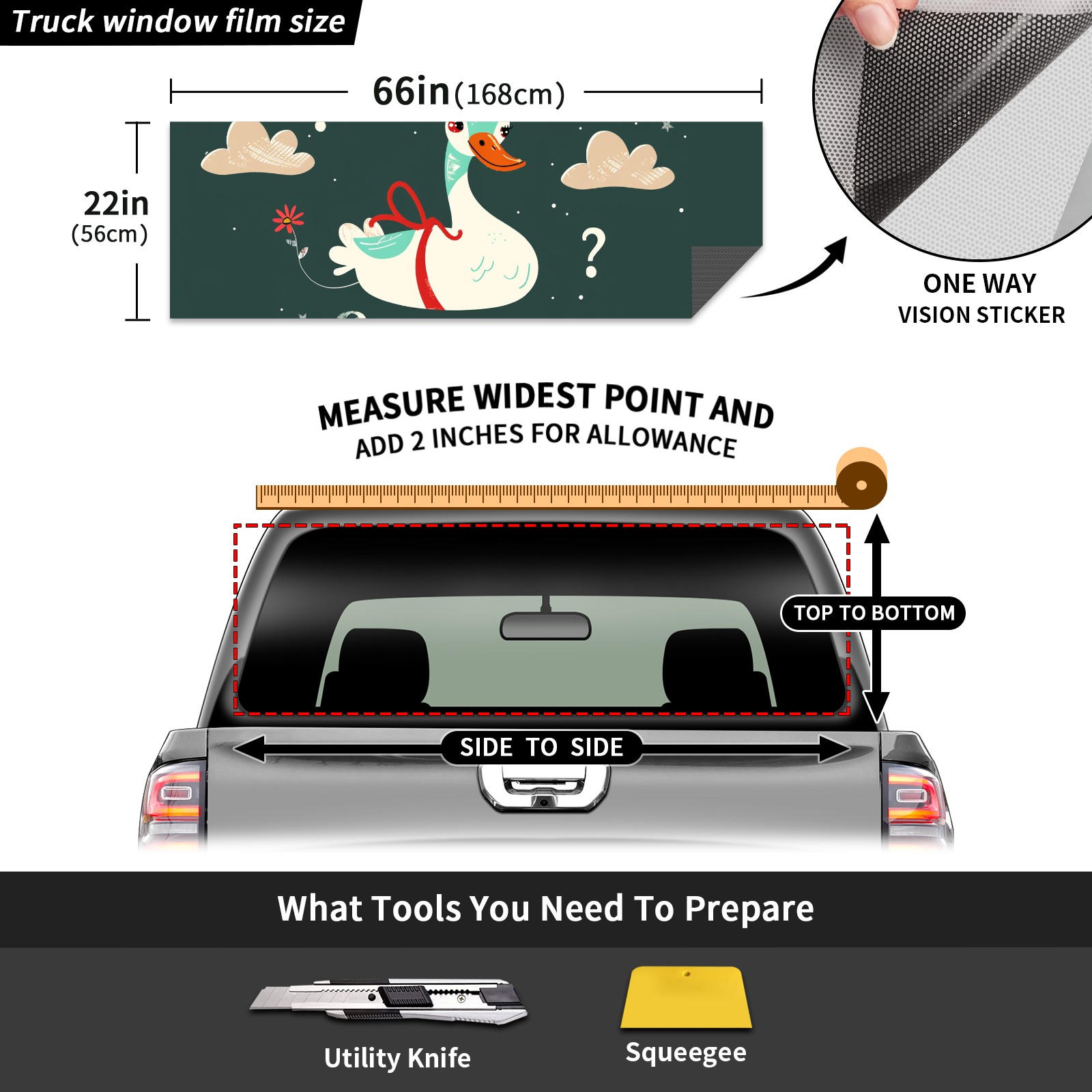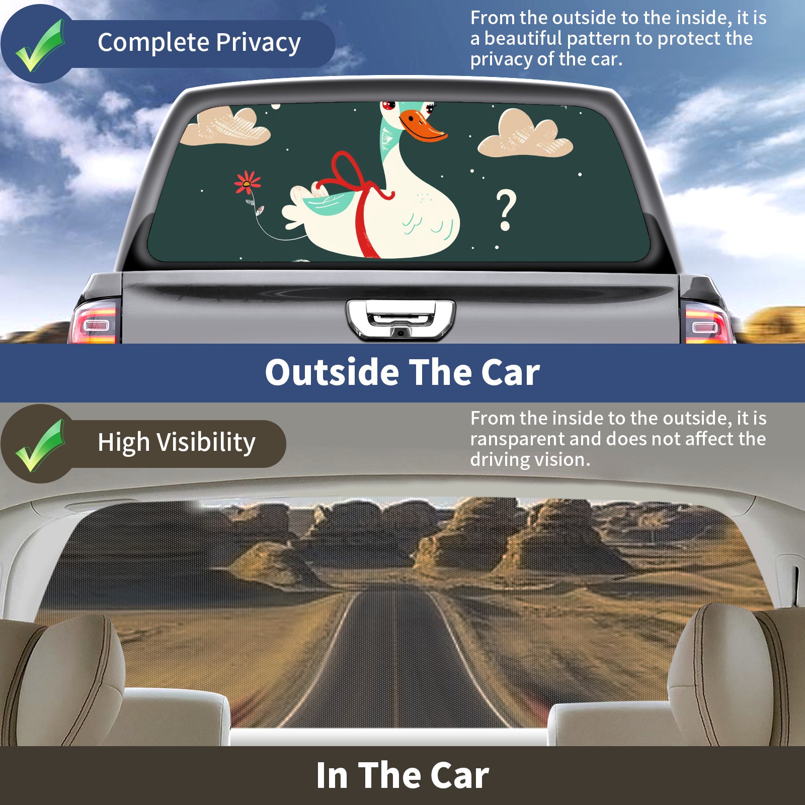 Truck Rear Window Graphics Decals Pickup Trucks Back Window Sticker Full Window Film Decal One Way Visual Waterproof Car Rear Tint Duck