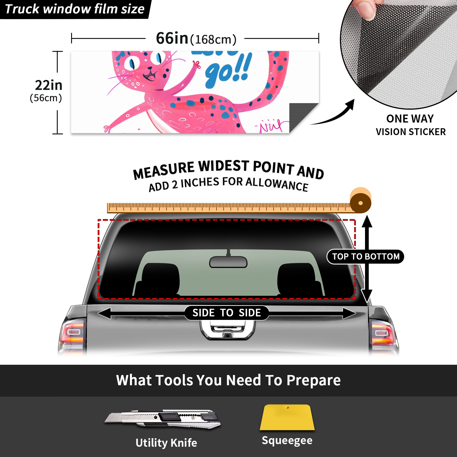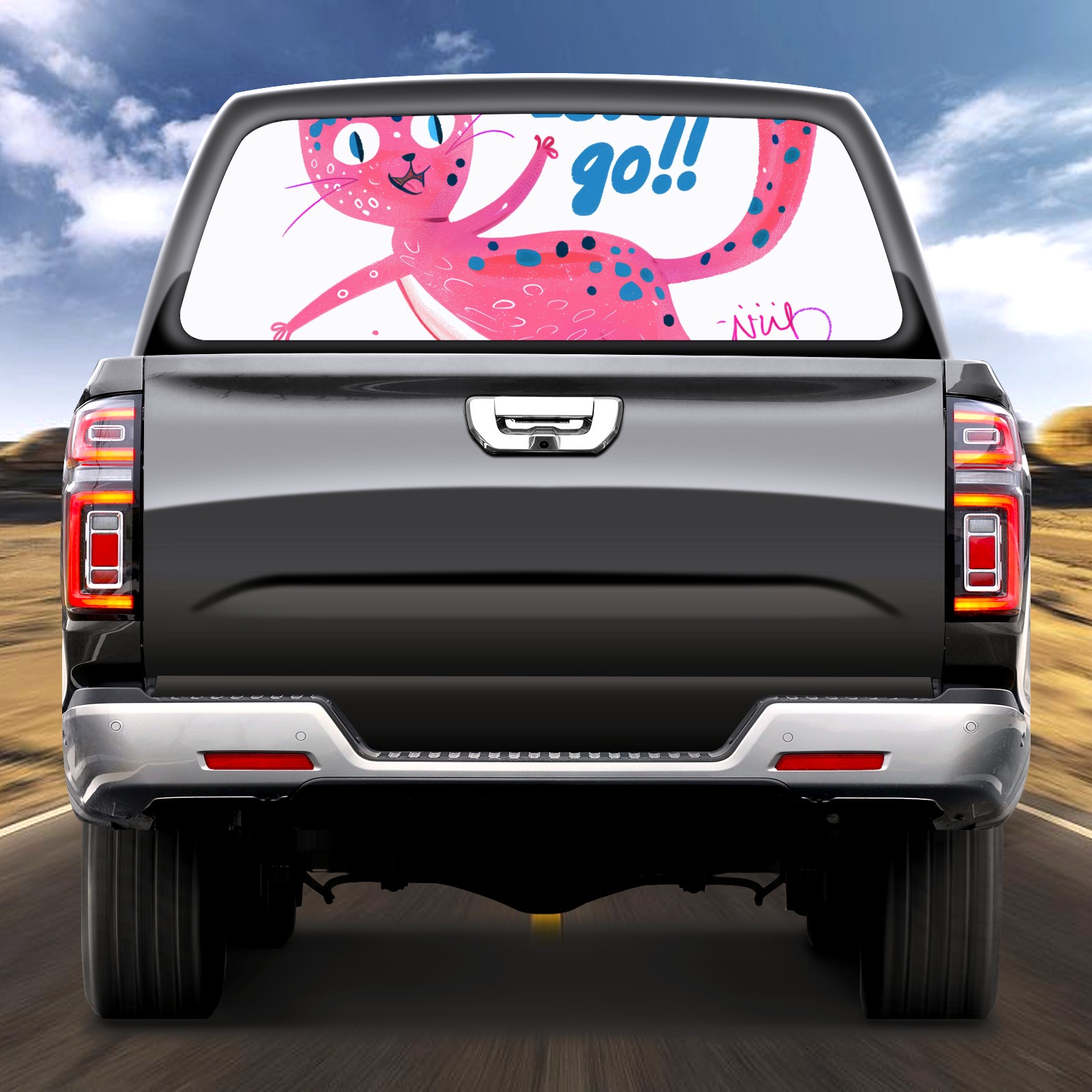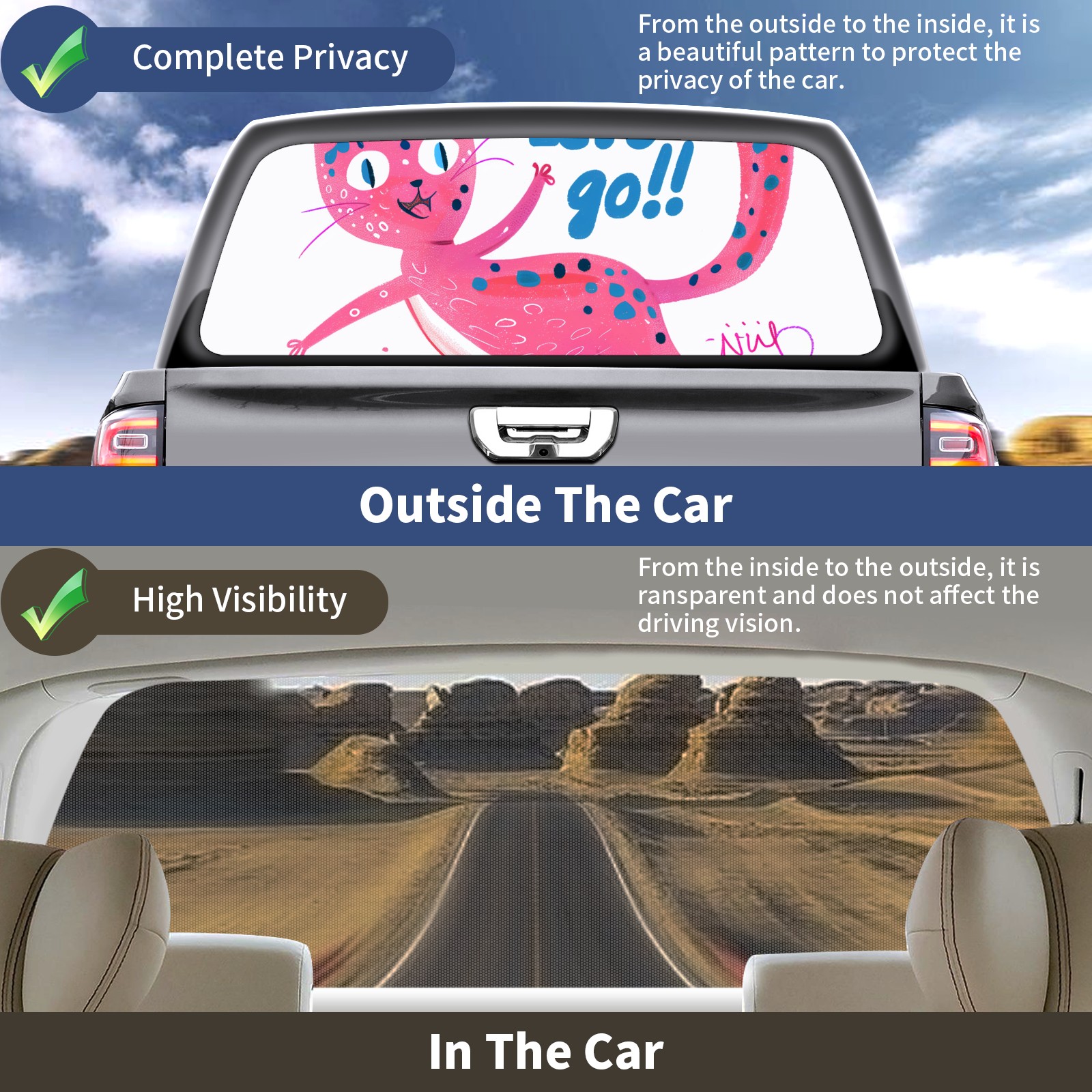 Truck Rear Window Graphics Decals Pickup Trucks Back Window Sticker Full Window Film Decal One Way Visual Waterproof Car Rear Tint Pink Cat