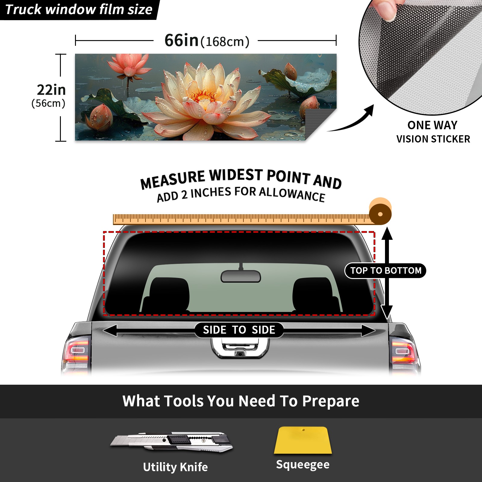 Truck Rear Window Graphics Decals Pickup Trucks Back Window Sticker Full Window Film Decal One Way Visual Waterproof Car Rear Tint Lotus
