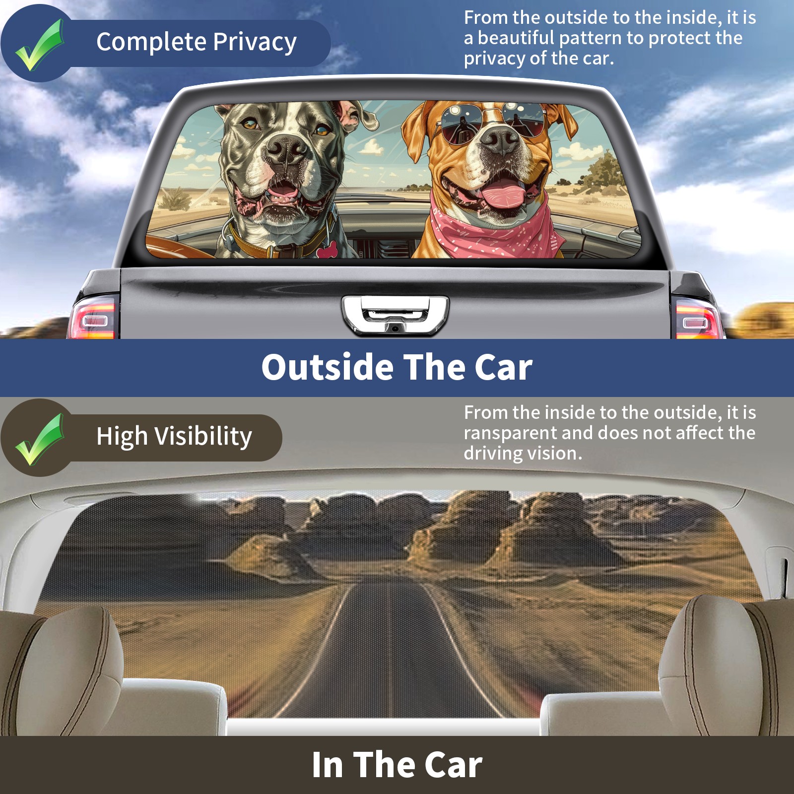 Truck Rear Window Graphics Decals Pickup Trucks Back Window Sticker Full Window Film Decal One Way Visual Waterproof Car Rear Tint Retriever