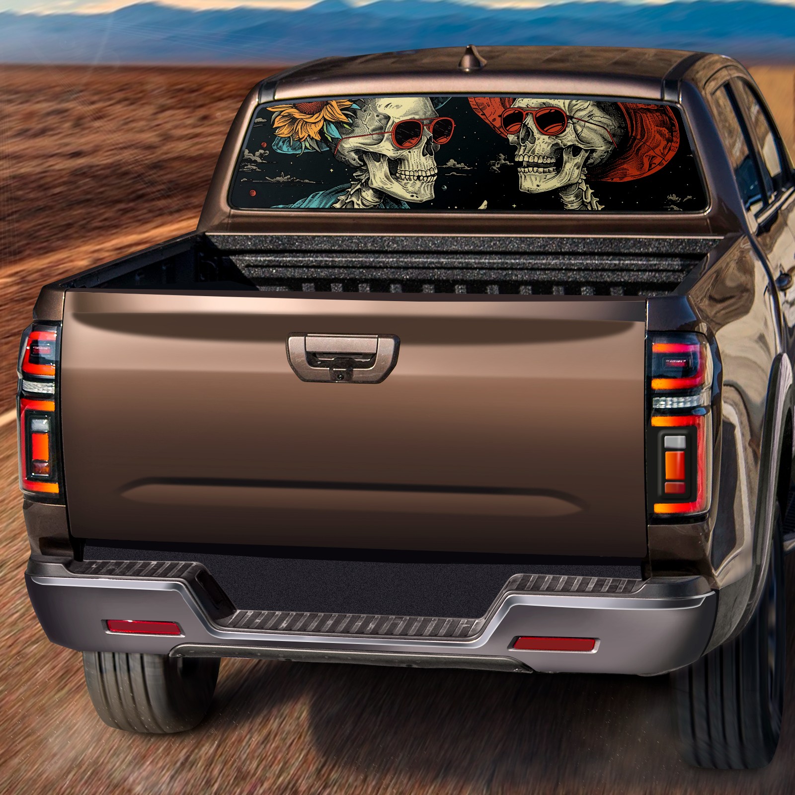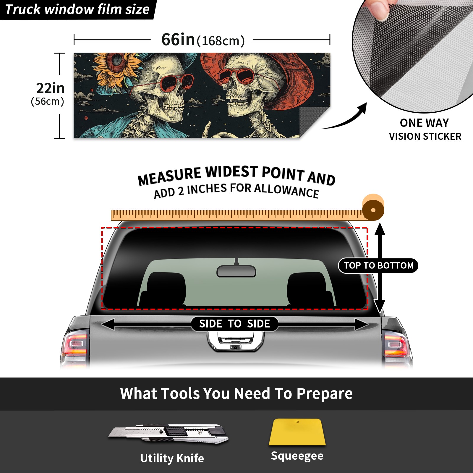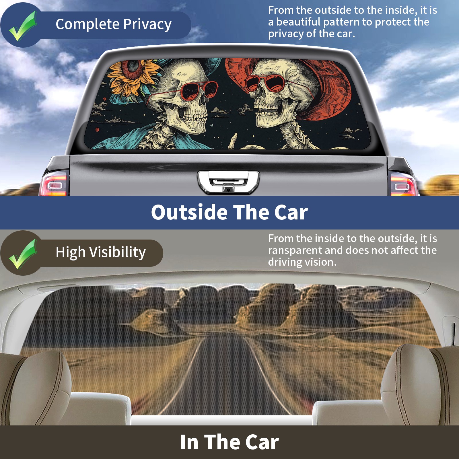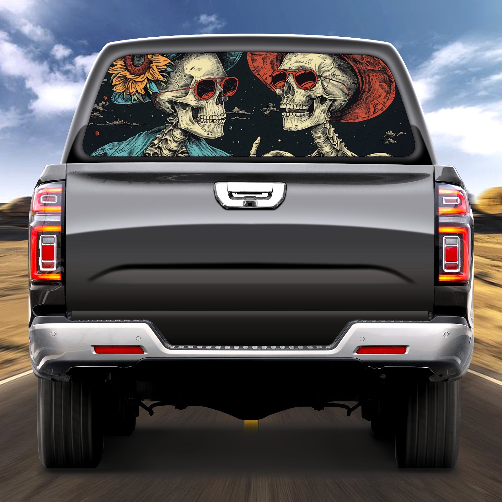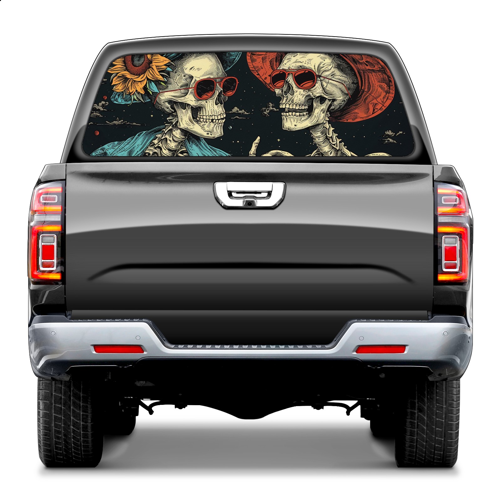 Truck Rear Window Graphics Decals Pickup Trucks Back Window Sticker Full Window Film Decal One Way Visual Waterproof Car Rear Tint Skull Party