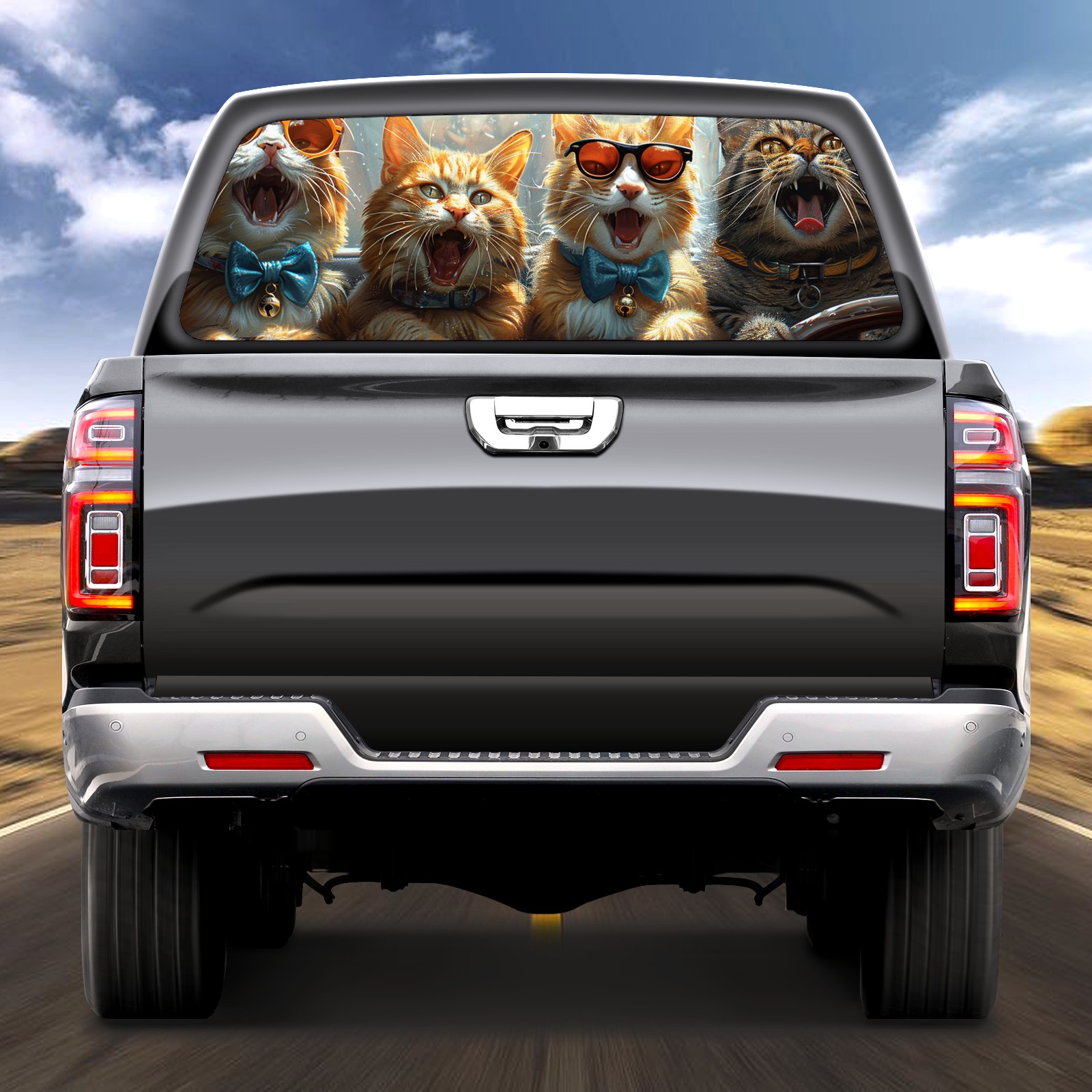 Truck Rear Window Graphics Decals Pickup Trucks Back Window Sticker Full Window Film Decal One Way Visual Waterproof Car Rear Tint Cat's Car Concert