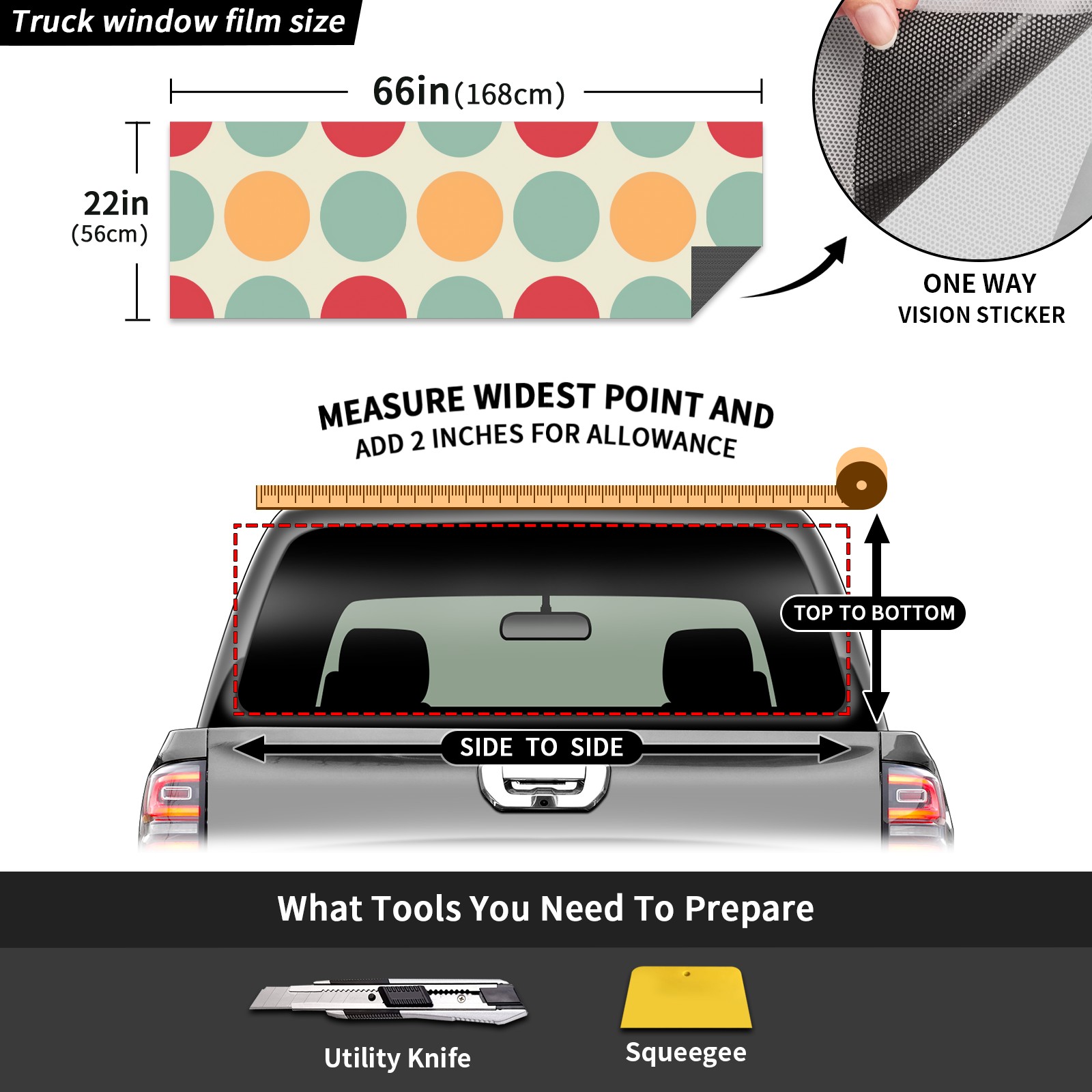 Truck Rear Window Graphics Decals Pickup Trucks Back Window Sticker Full Window Film Decal One Way Visual Waterproof Car Rear Tint Multicolored Dots