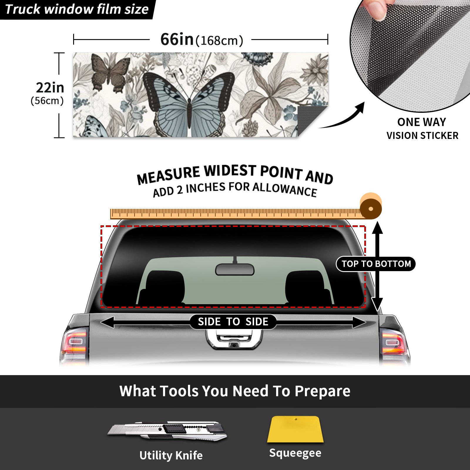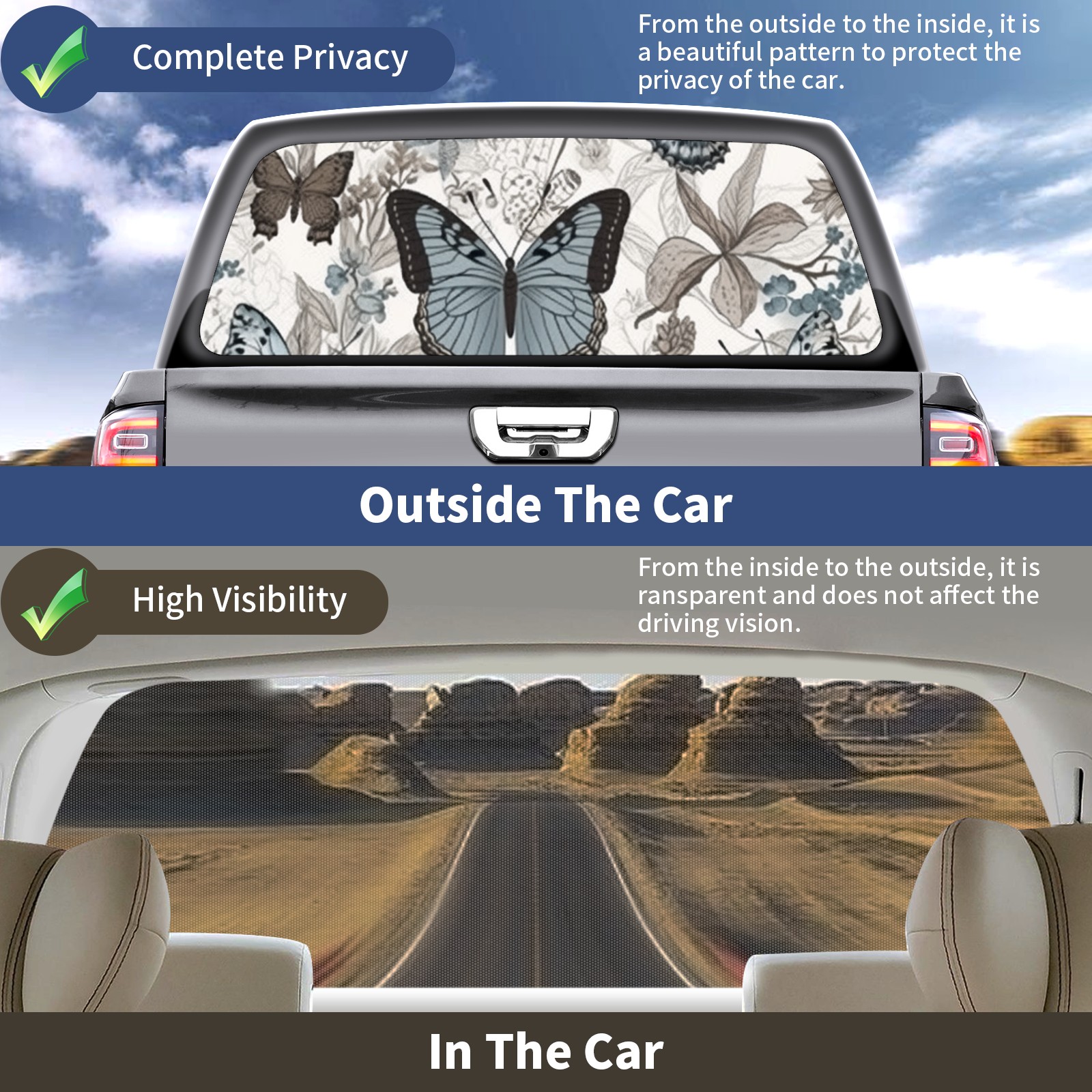 Truck Rear Window Graphics Decals Pickup Trucks Back Window Sticker Full Window Film Decal One Way Visual Waterproof Car Rear Tint Vintage Butterfly (4)