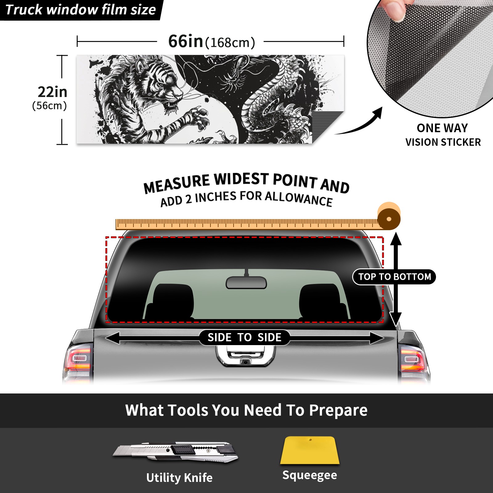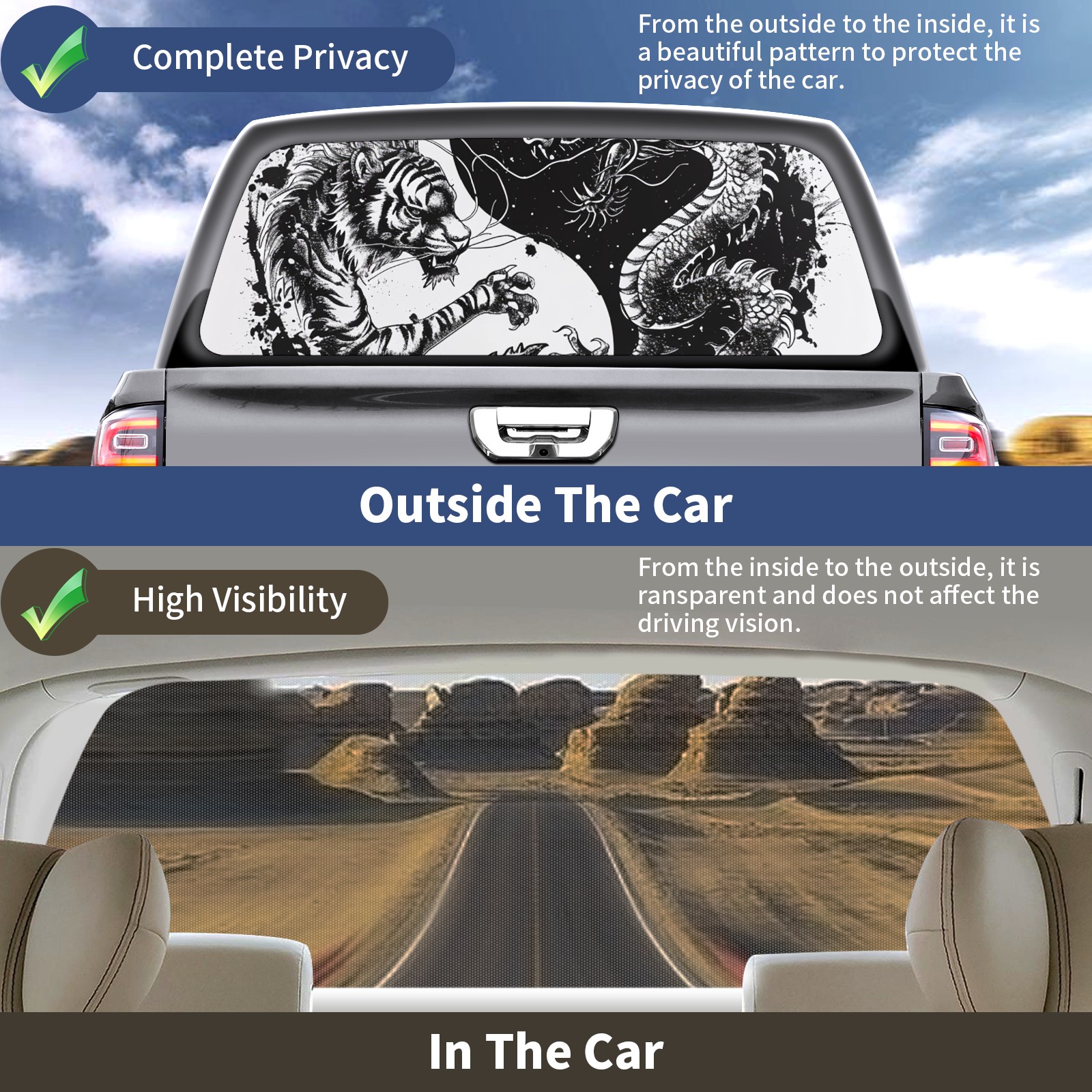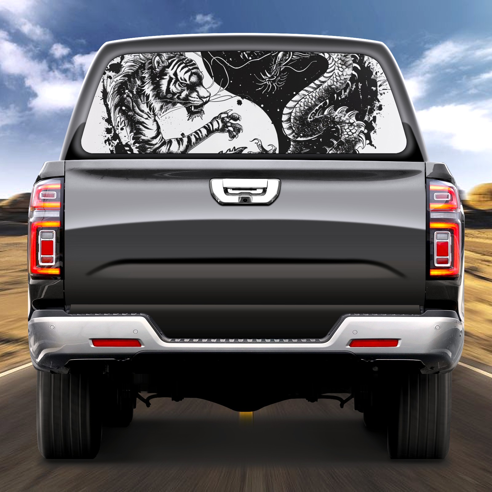 Truck Rear Window Graphics Decals Pickup Trucks Back Window Sticker Full Window Film Decal One Way Visual Waterproof Car Rear Tint Chinese Dragon (6)