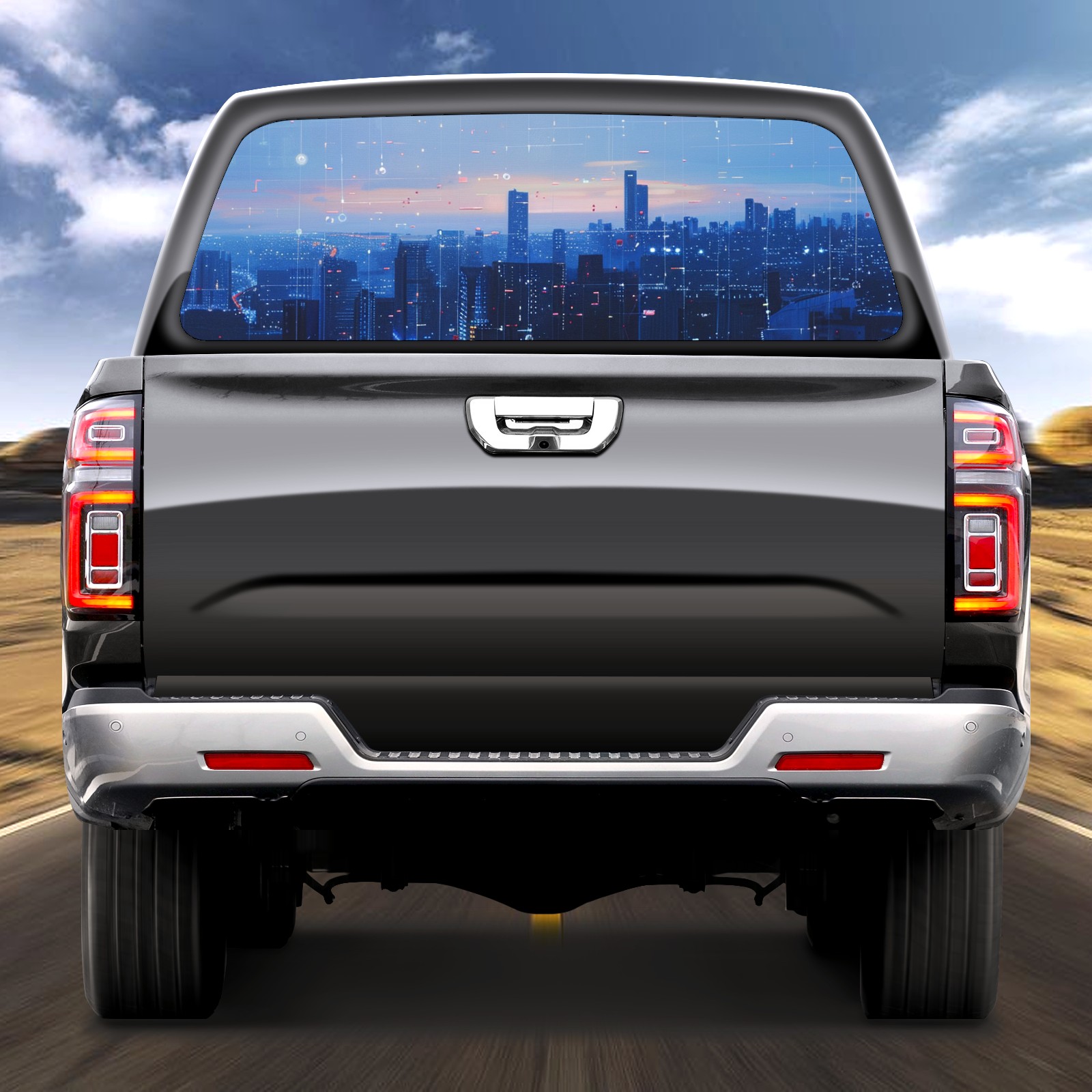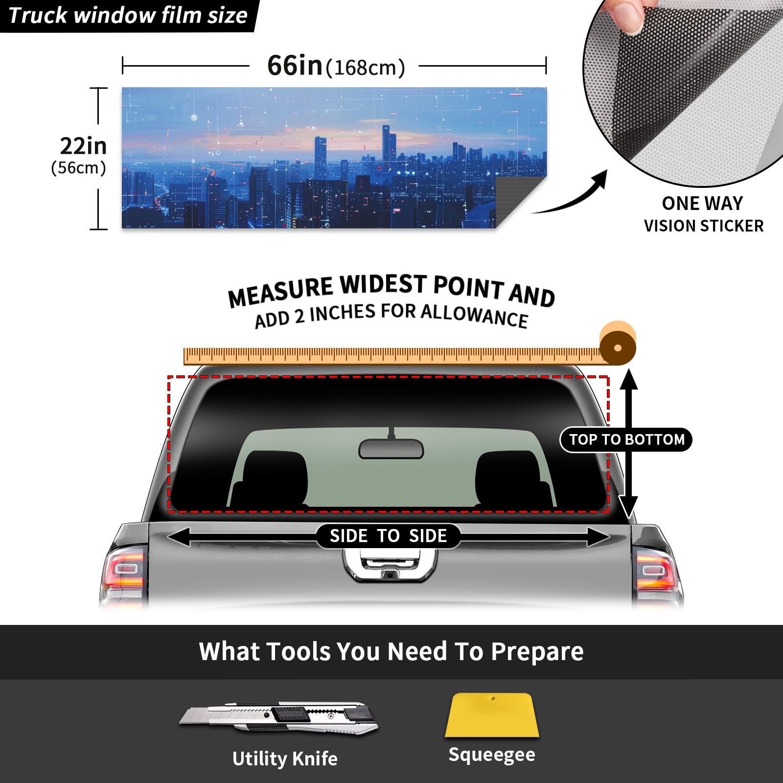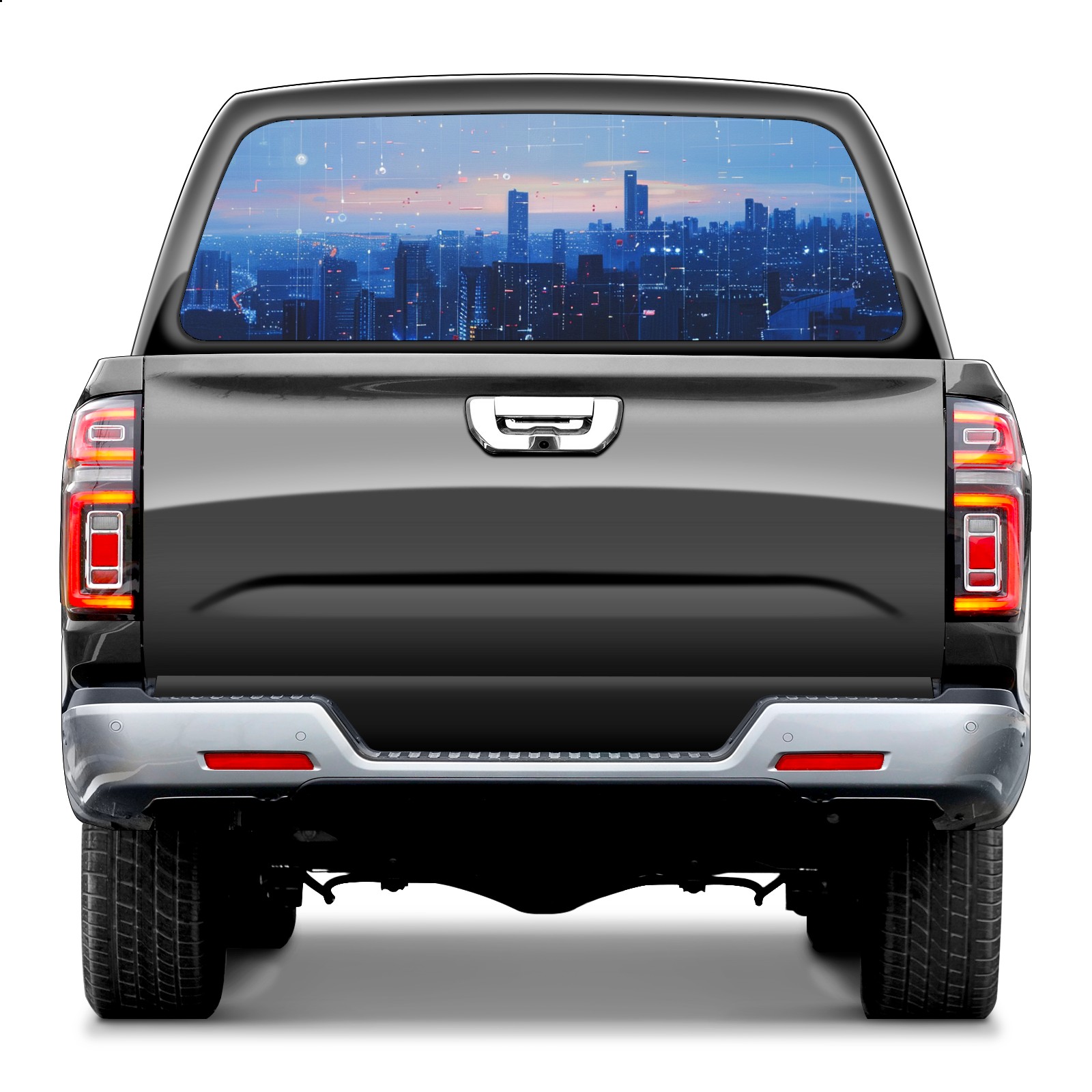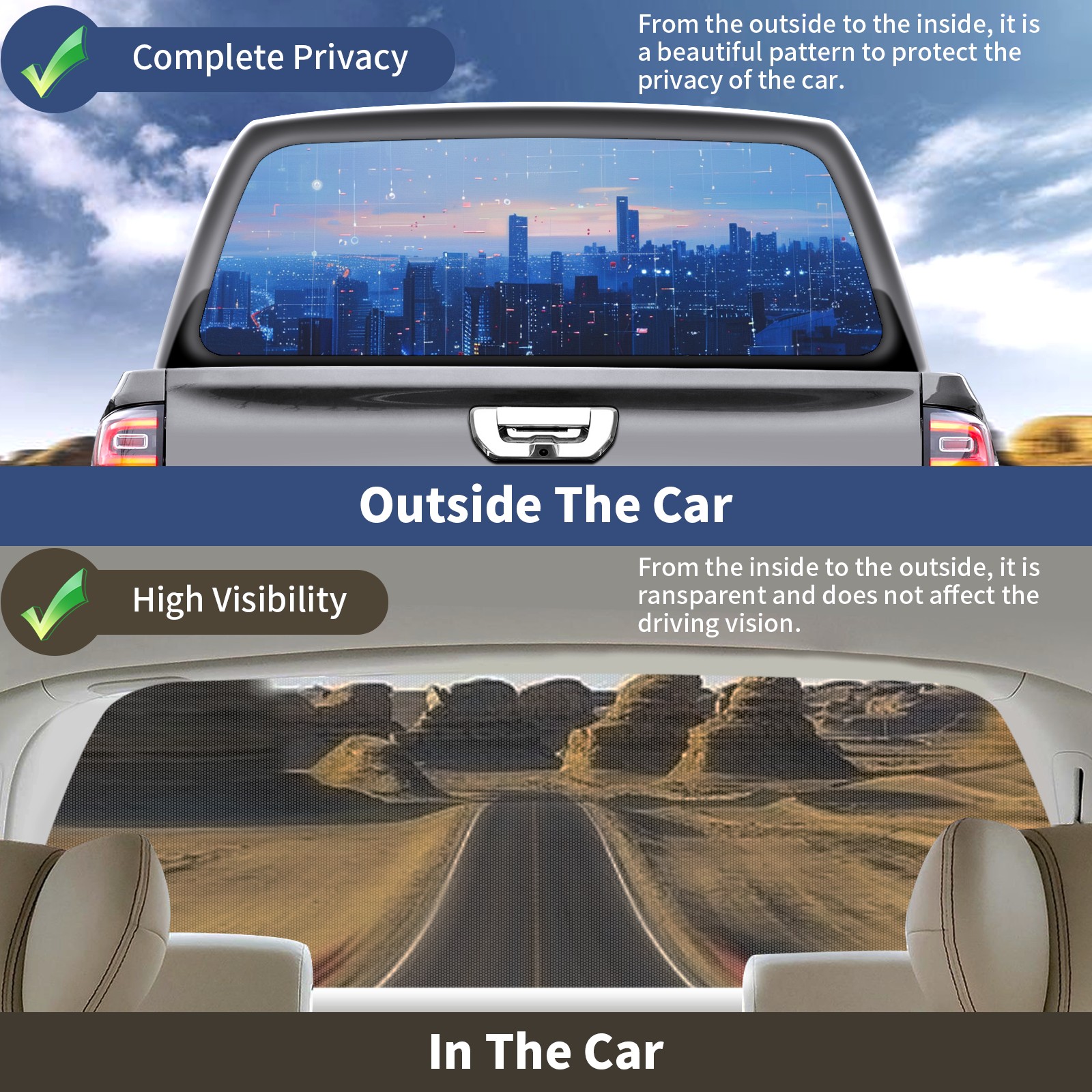 Truck Rear Window Graphics Decals Pickup Trucks Back Window Sticker Full Window Film Decal One Way Visual Waterproof Car Rear Tint Digital Cityscape (1)