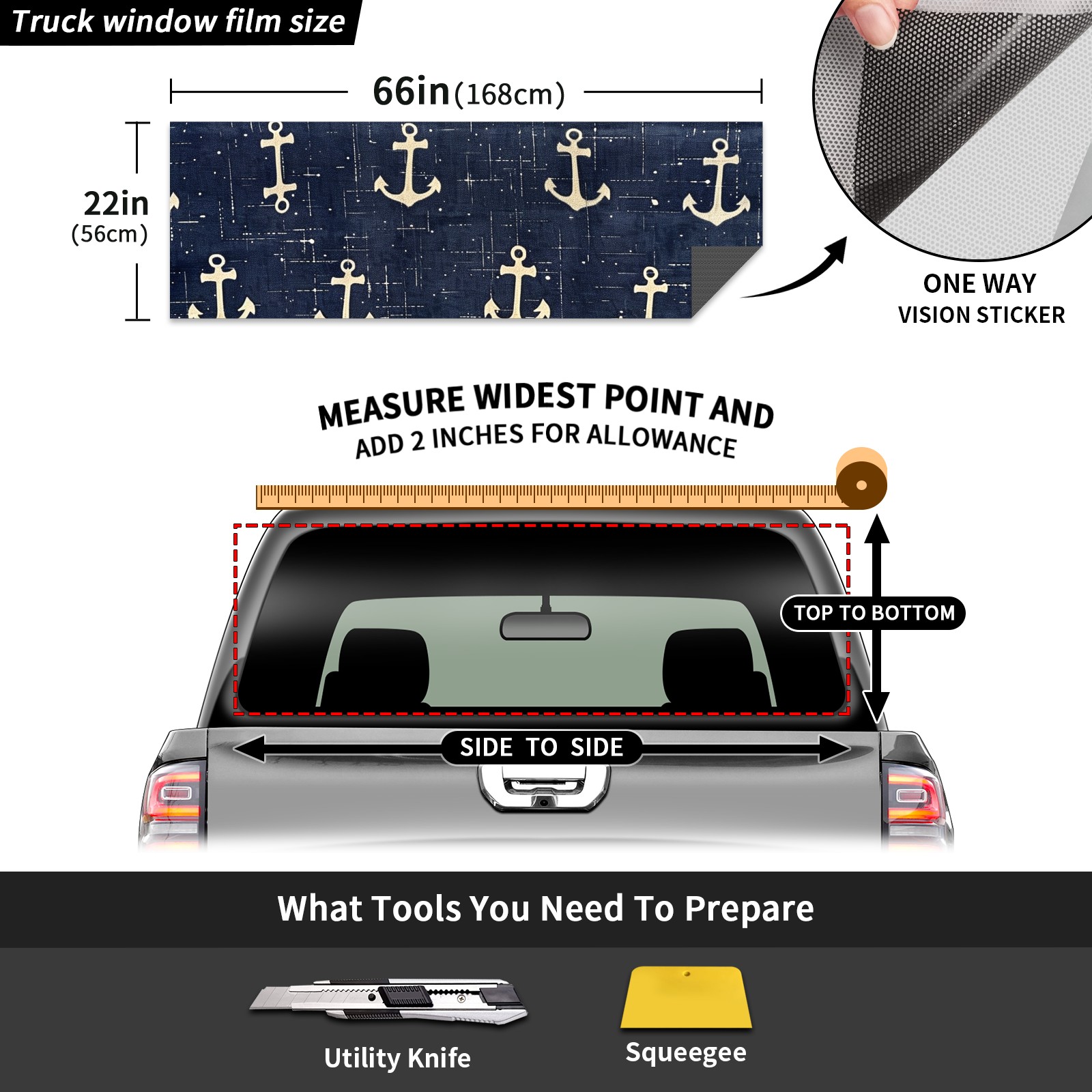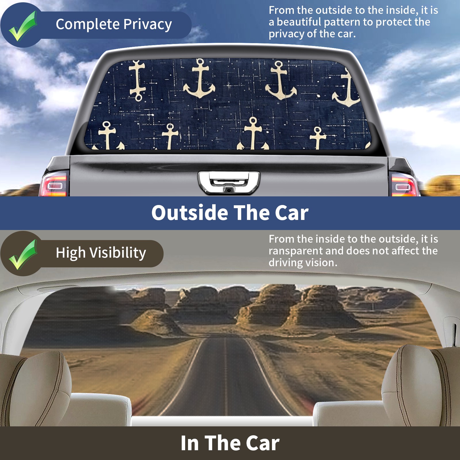 Truck Rear Window Graphics Decals Pickup Trucks Back Window Sticker Full Window Film Decal One Way Visual Waterproof Car Rear Tint Anchors
