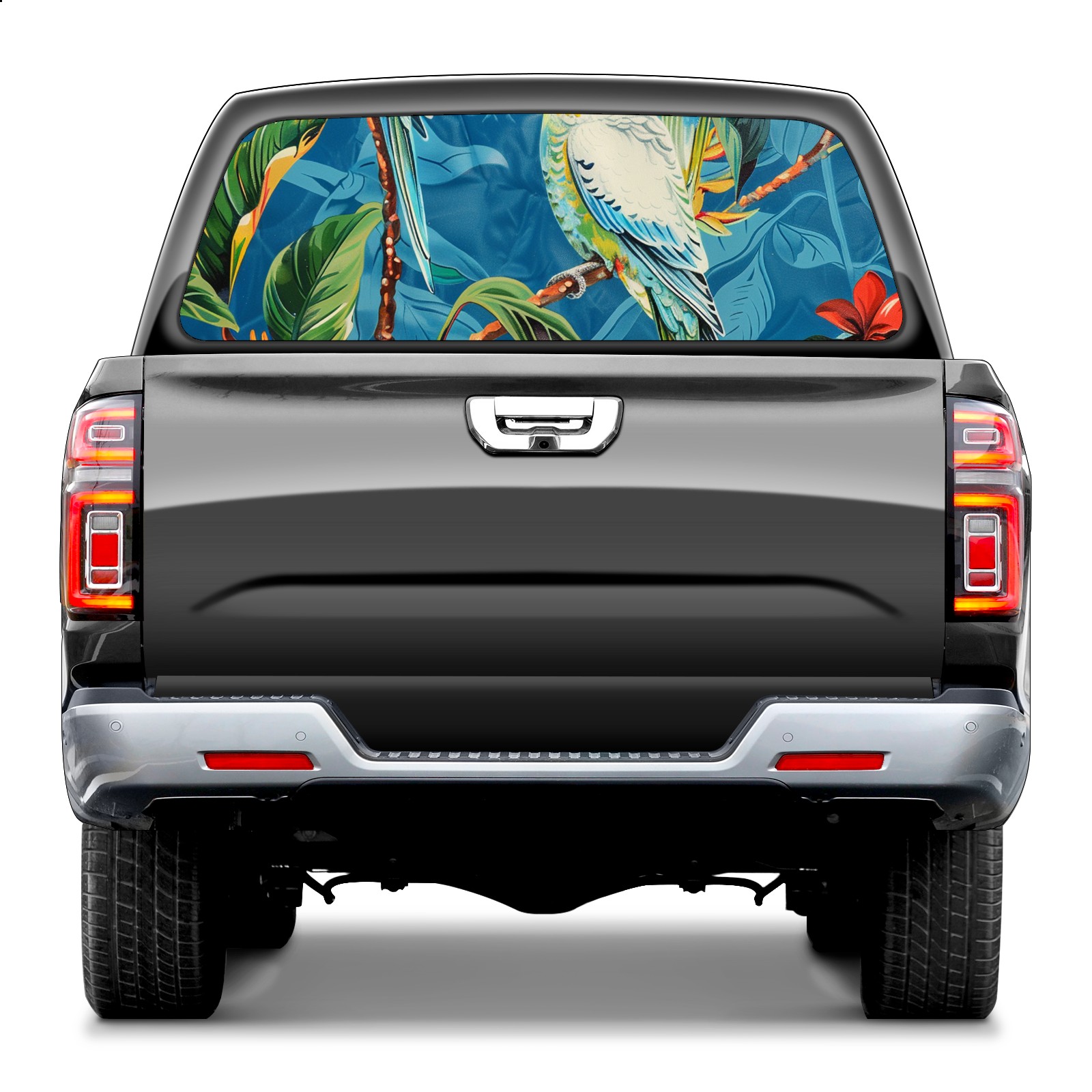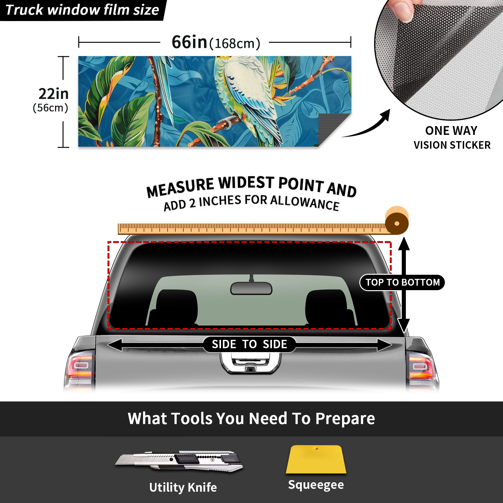 Truck Rear Window Graphics Decals Pickup Trucks Back Window Sticker Full Window Film Decal One Way Visual Waterproof Car Rear Tint Vibrant Flowers And Birds (9)