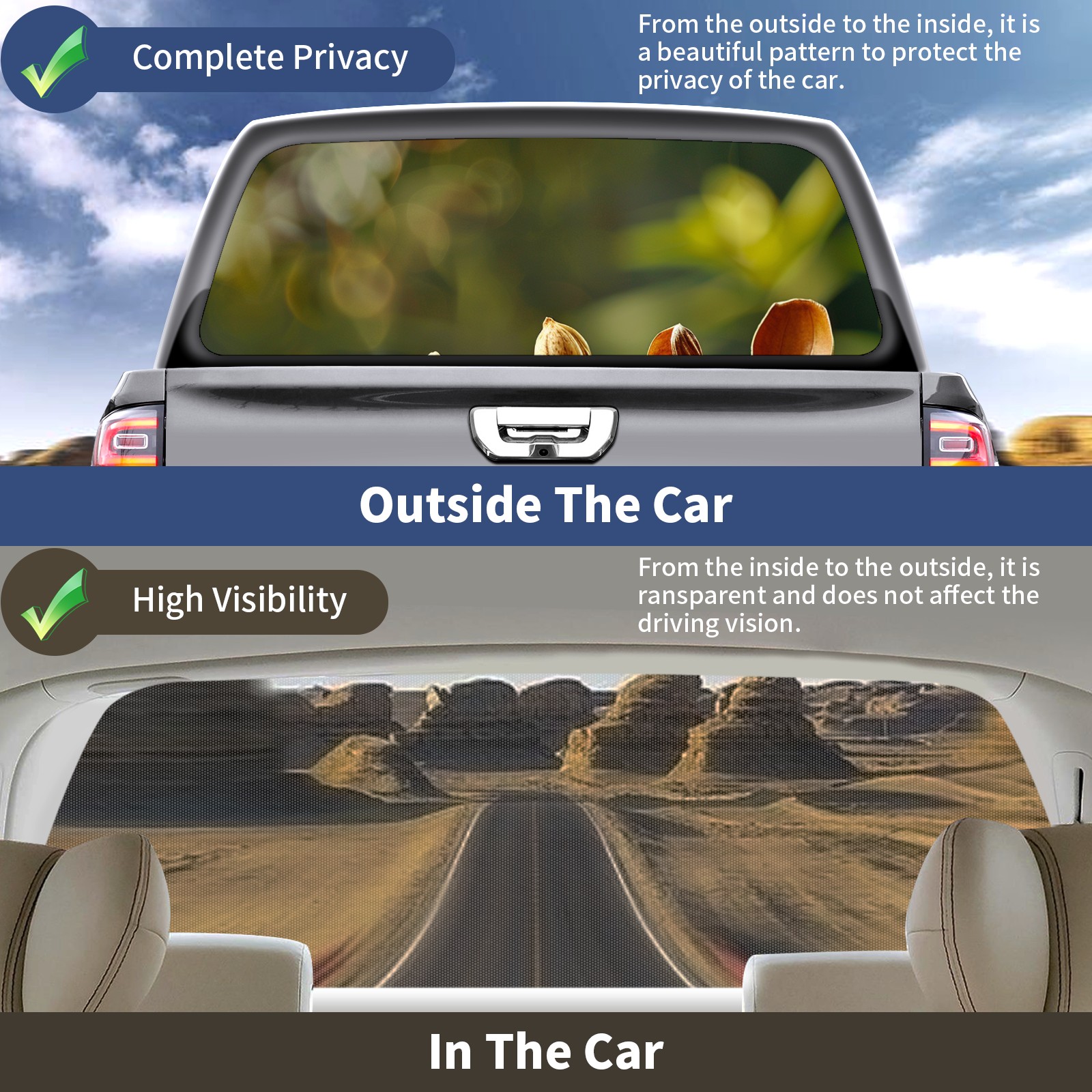 Truck Rear Window Graphics Decals Pickup Trucks Back Window Sticker Full Window Film Decal One Way Visual Waterproof Car Rear Tint Seeding Growth (4)