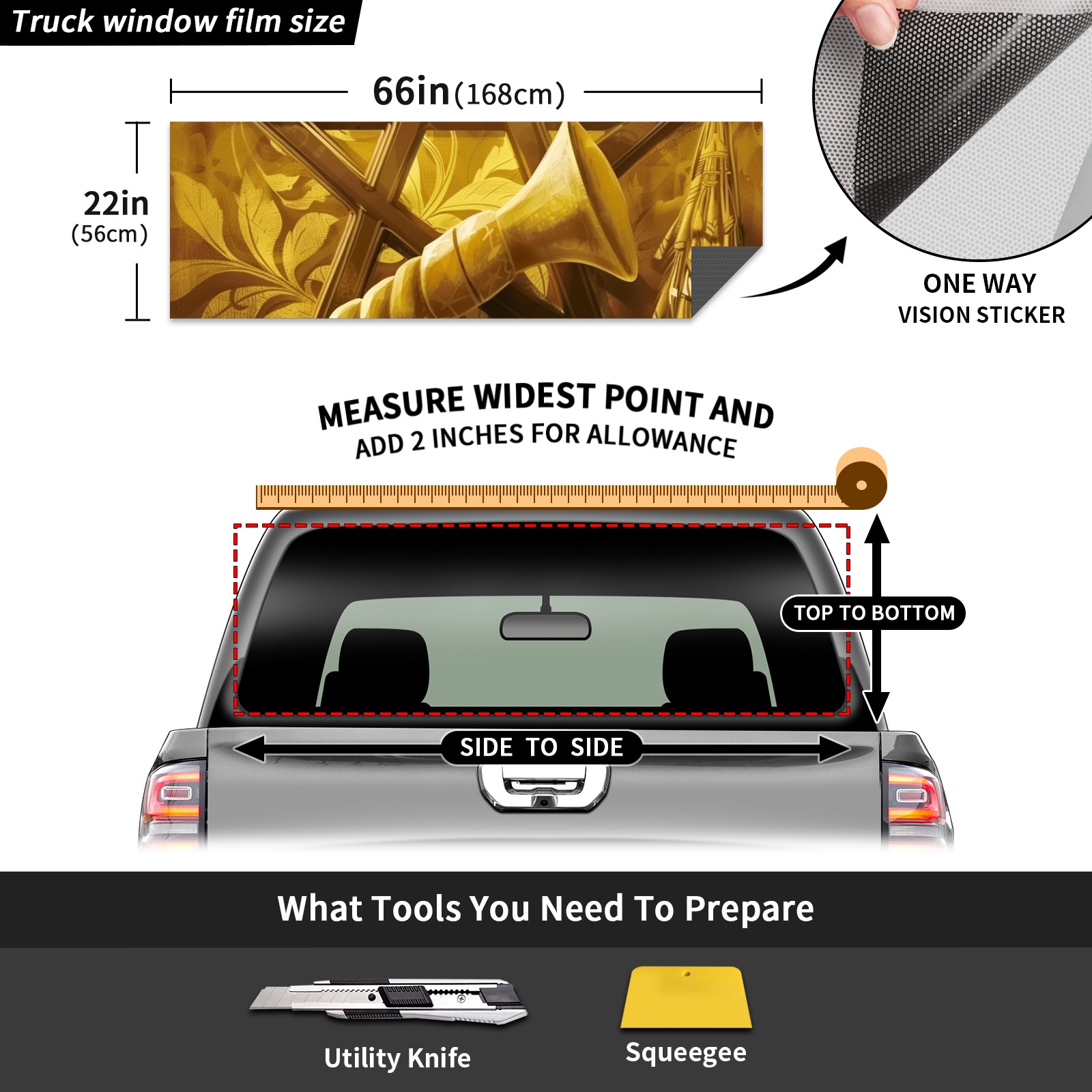 Truck Rear Window Graphics Decals Pickup Trucks Back Window Sticker Full Window Film Decal One Way Visual Waterproof Car Rear Tint Jewish Holiday (3)