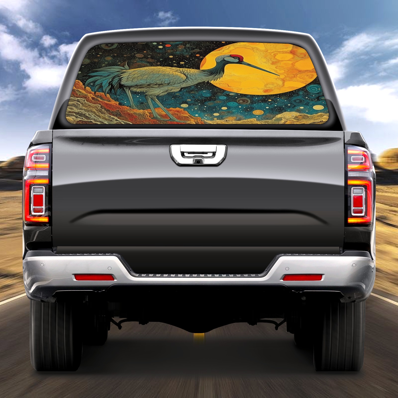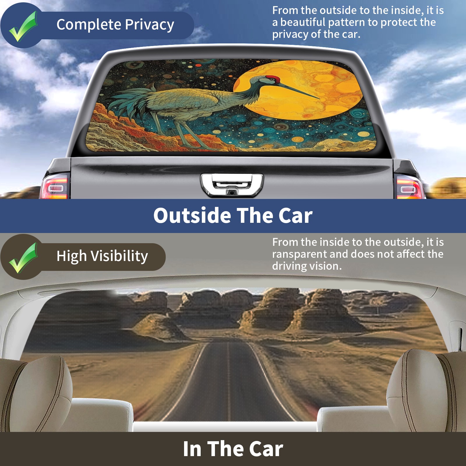Truck Rear Window Graphics Decals Pickup Trucks Back Window Sticker Full Window Film Decal One Way Visual Waterproof Car Rear Tint Psychedelic Moebius Bird