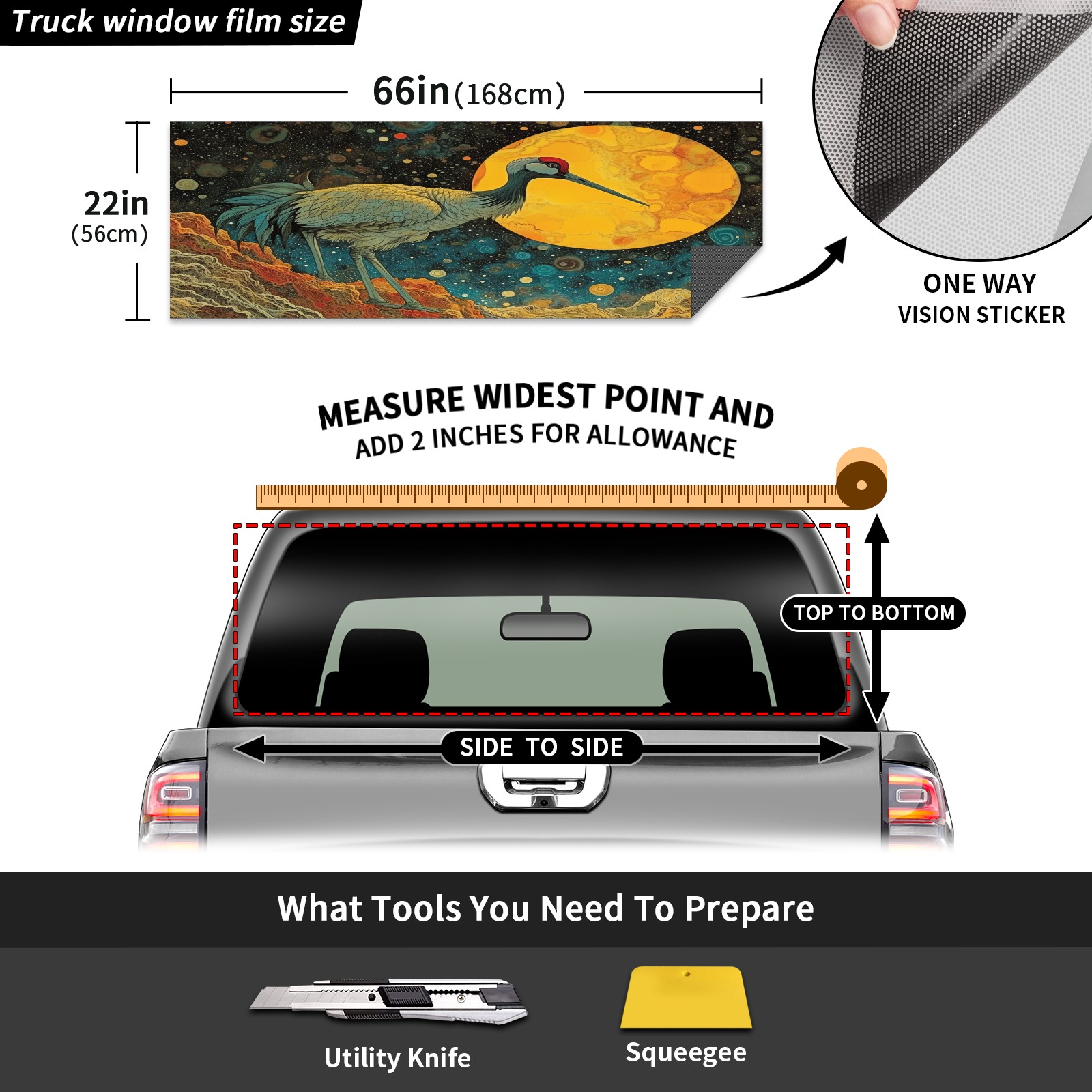 </b>Window film one-way light transmission Protect your privacy while allowing you to enjoy the scenery outside your window!</b> <br> </b>●Decals Instructions Usage--Teach You To Use Quickly</b> <br> 1.Clean the window galss thoroughly <br> 2.Use a Squeegee or other card to scrape off the remaining water and bumps(don't use too much force) <br> 3.Remove the film's back cover .Use a knife to cut out a suitable contour and wipe off the remaining water(you can also use a hair dryer to blow dry) <br> 4.Find a suitable location and stick a sticker <br> </b>●Unique Design</b> <br> ZXIVGOQFR Back window stickers ‘s smart looking and unique cute design makes your vehicle special under sunshine. Makes your car easy to identify, perfect for finding your car in crowded parking lots and garages.funny visor reflects personality and attitude. <br> </b>●Perfect Gift for all Drivers<br></b> We create all the gifts and accessories you only need to choose what you like. Get full tailgate wraps, rear window decals, and everything you need to make your pickup truck look awesome. <br> </b> Decorate Your Pickup Truck With Rear Window Decal Today!</b>